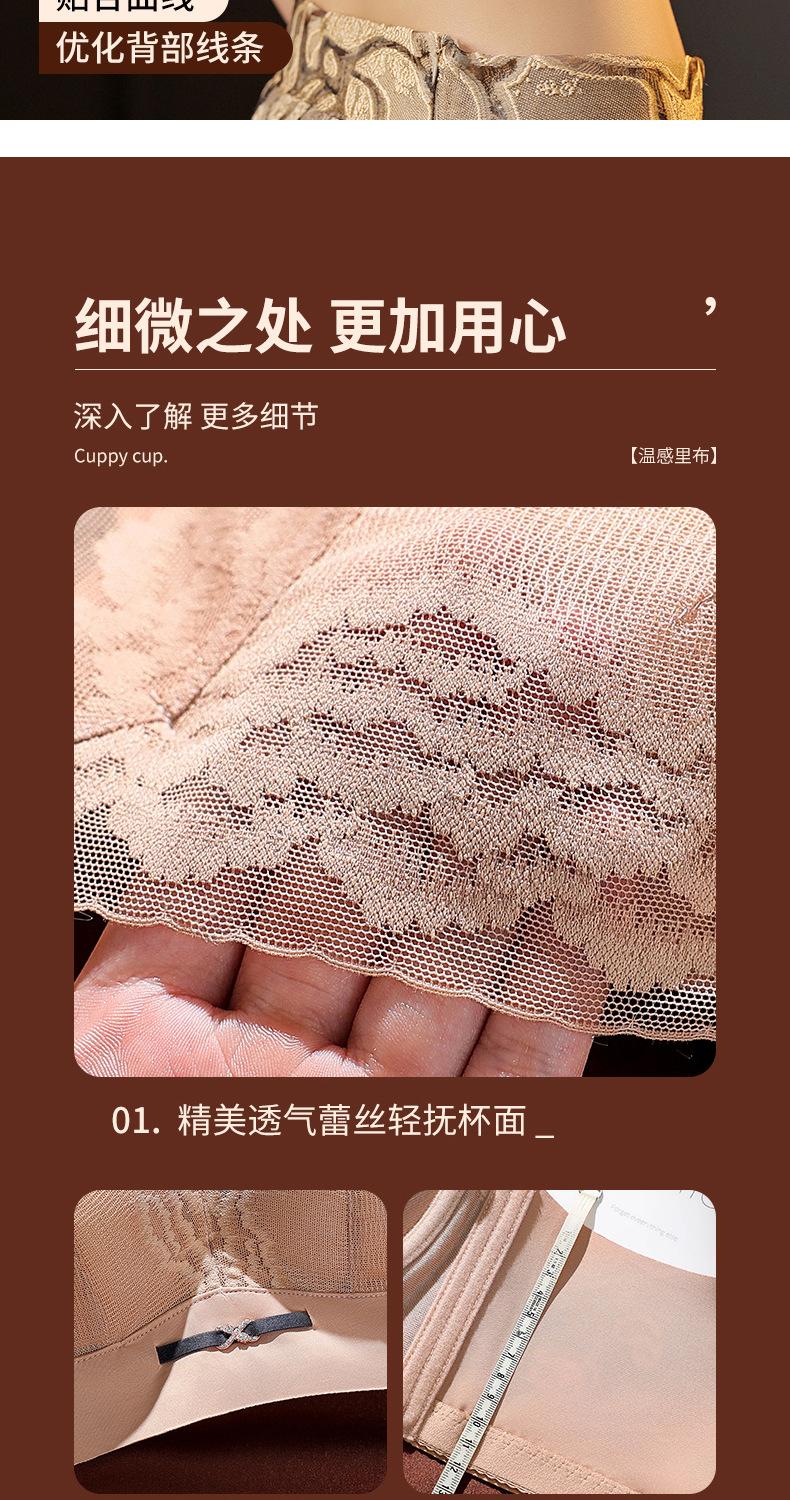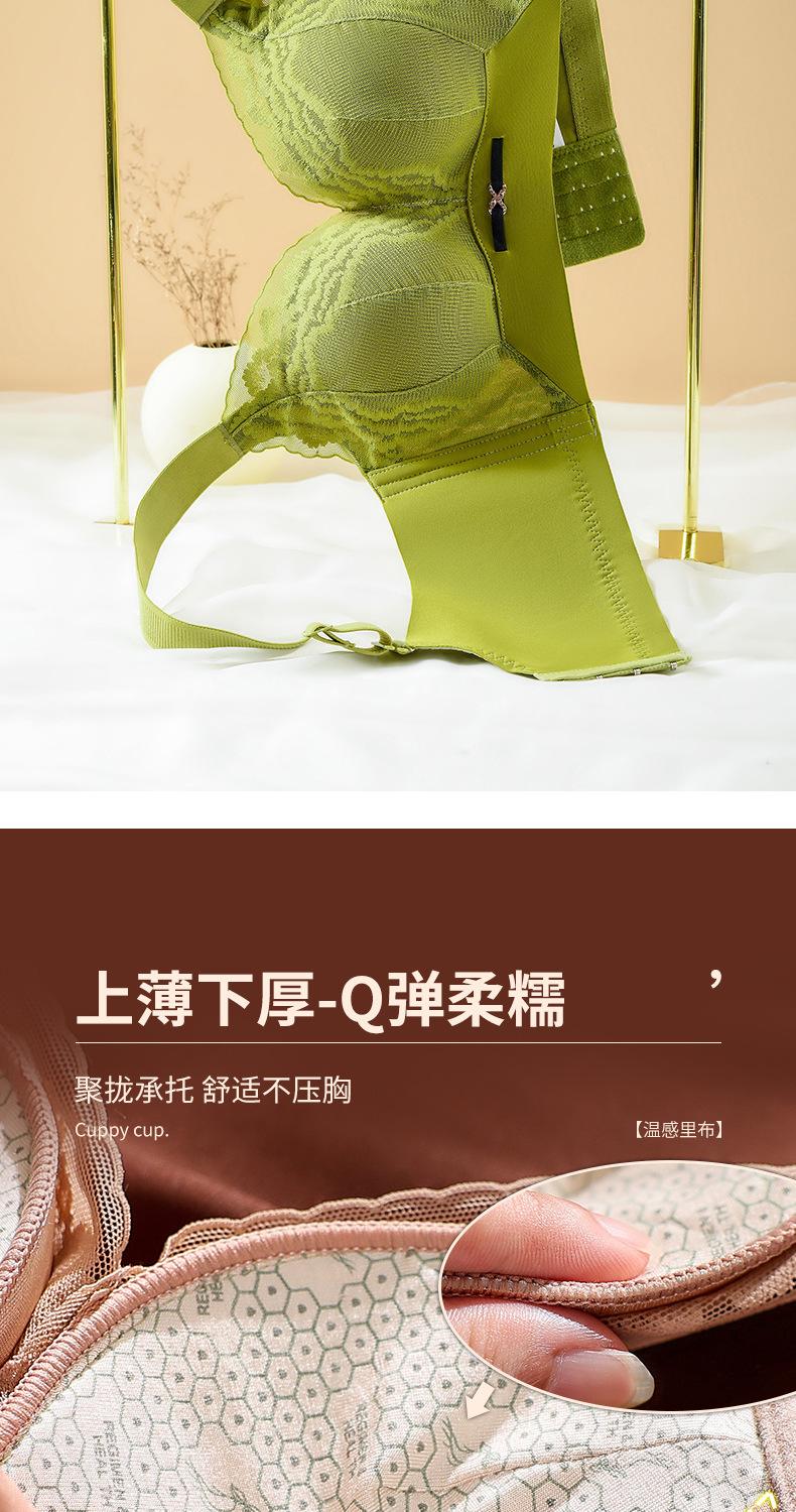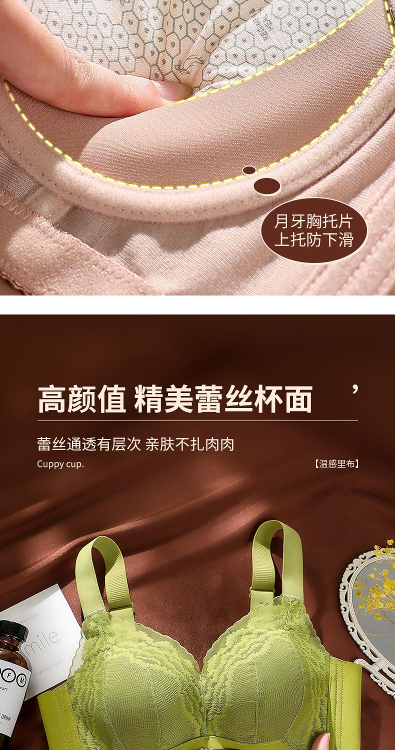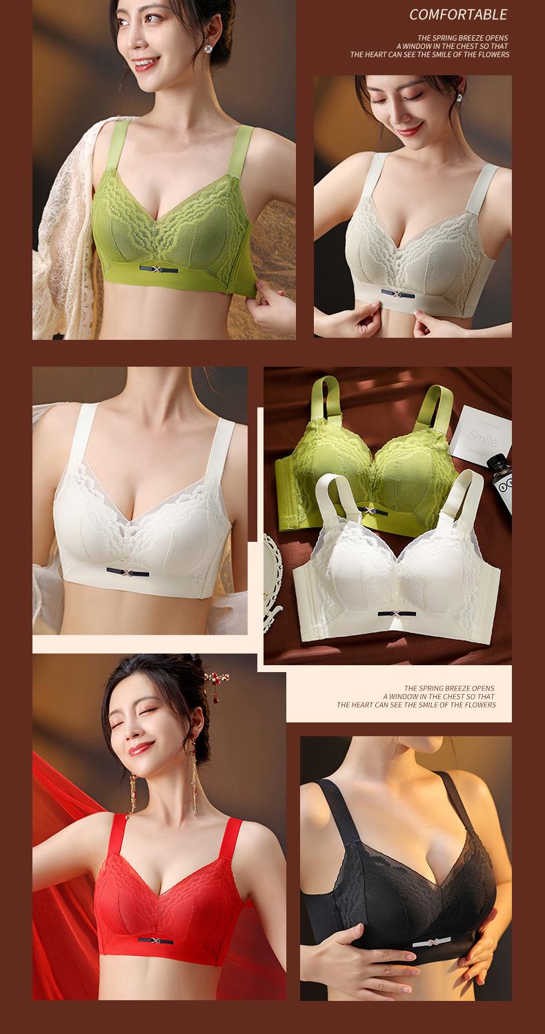 Este es un producto tejido con diseño de encaje. Está disponible en copas medianas-gruesas 32-38 AB y copas delgadas 34-40 BC en seis colores: negro/rojo/gris claro/marrón rosado/verde/blanco. Tirantes fijos y ajustables antideslizantes de 2.5 cm de ancho, tejidos de las alas que se pueden cortar a voluntad, cuatro filas de botones en la espalda, solo una pieza, sin ropa interior a juego.