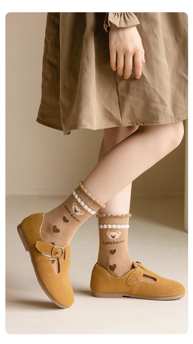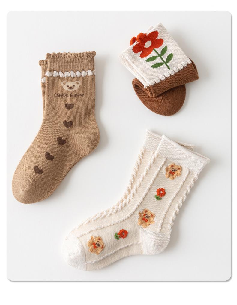Calcetines Nuevos de Primavera y Otoño para Niños Calcetines de Algodón para Niños y Niñas de Media Caña Suaves y Delicados con la Piel Calcetines para Niños de Oso de Dibujos Animados al Por Mayor