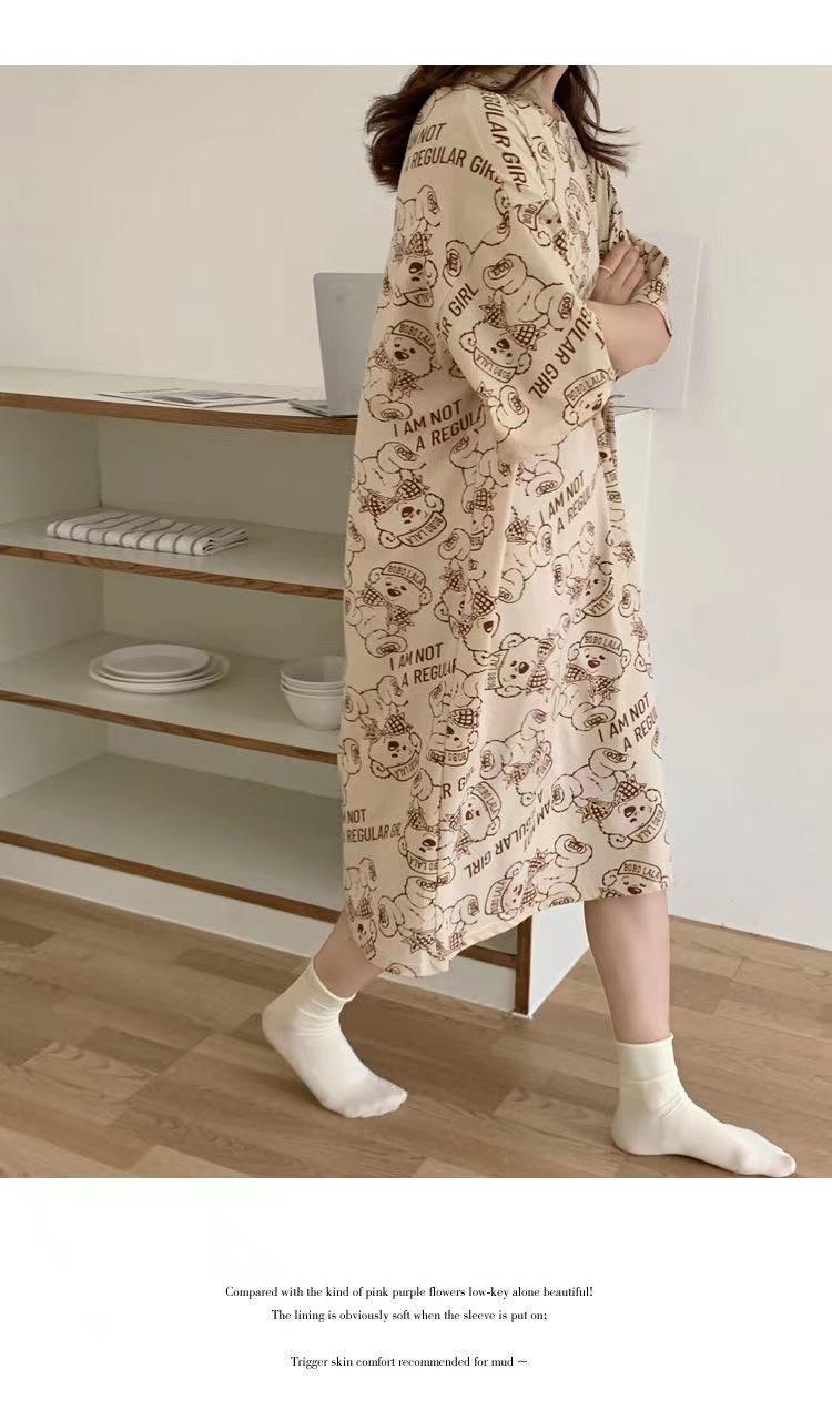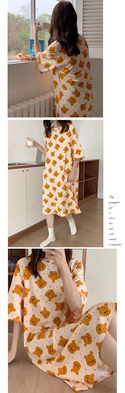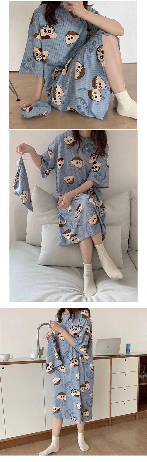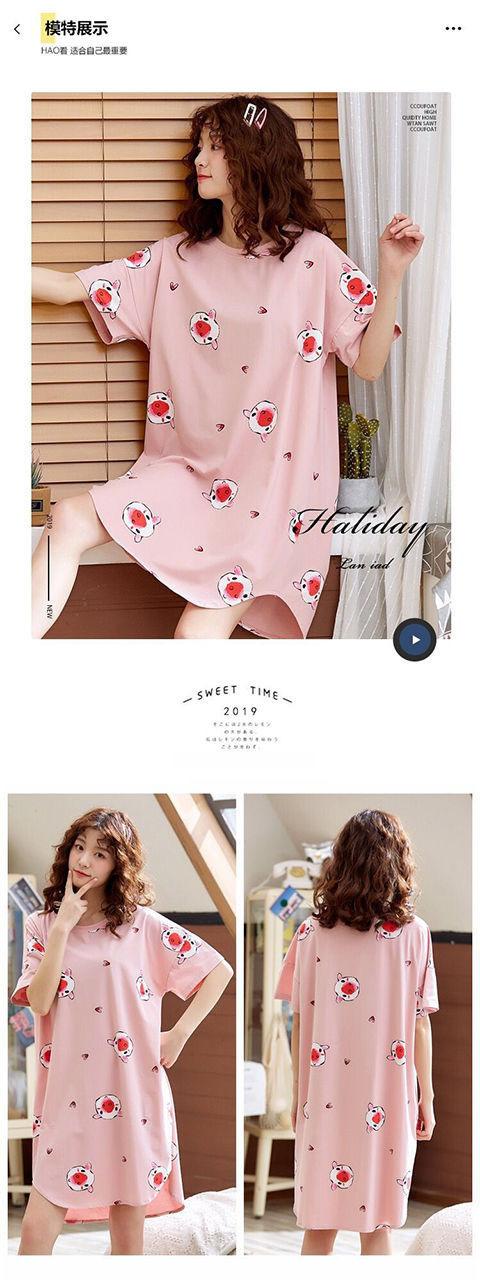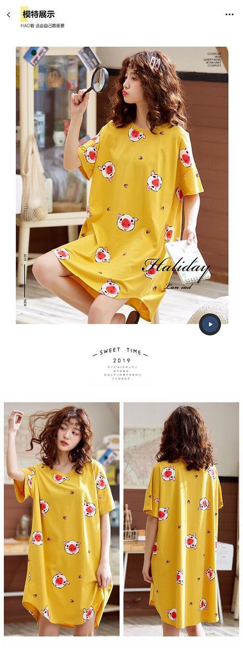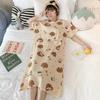 Camisón largo de manga corta con dibujos animados de verano para mujer, bonito estilo coreano, ropa de casa de talla grande para primavera y otoño, pijama holgado para estudiantes