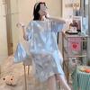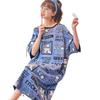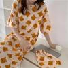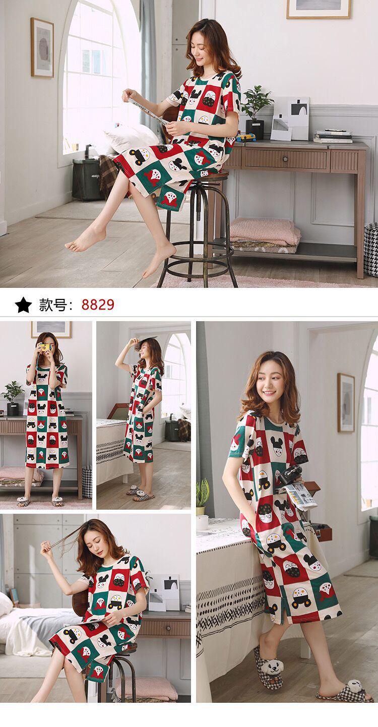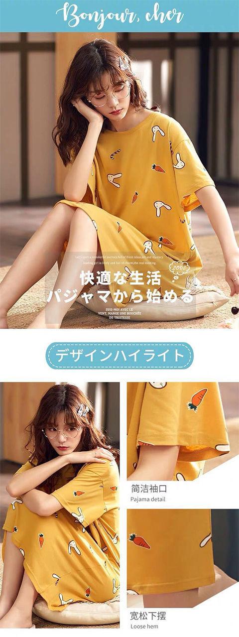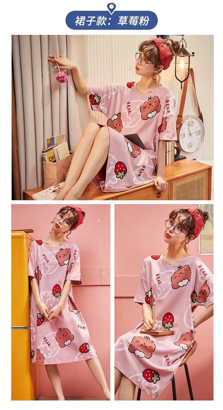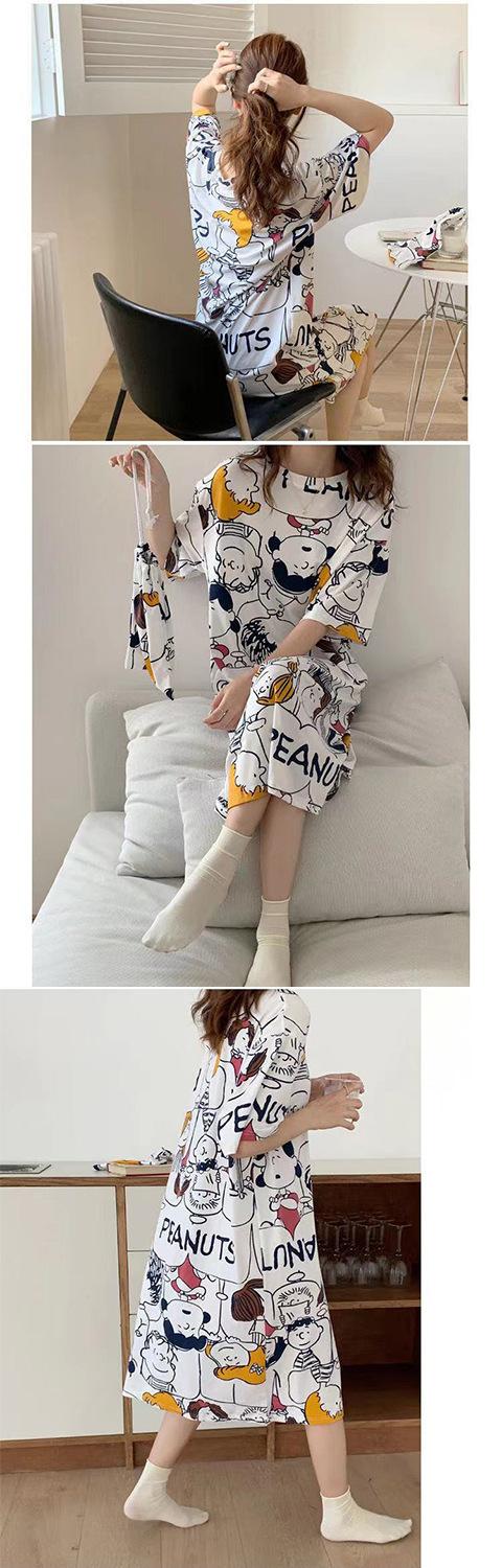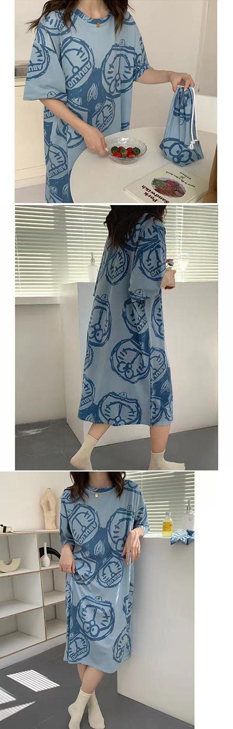 Camisón largo de manga corta con dibujos animados de verano para mujer, bonito estilo coreano, ropa de casa de talla grande para primavera y otoño, pijama holgado para estudiantes