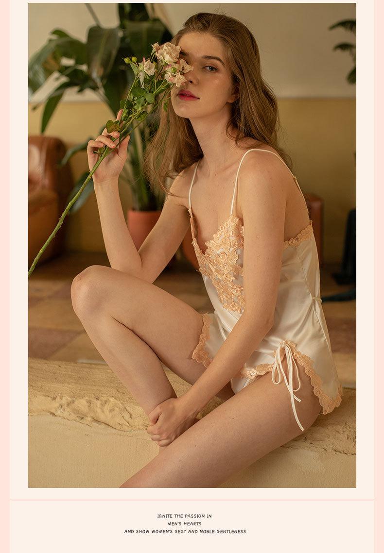 Camisón de seda con bordado y espalda descubierta para mujer, sexy, para el hogar, de imitación de hielo, fino, de verano, 971