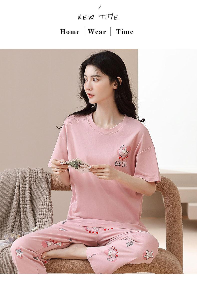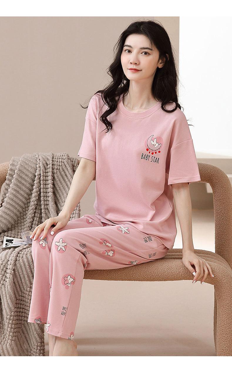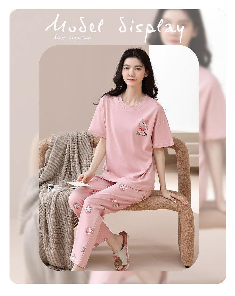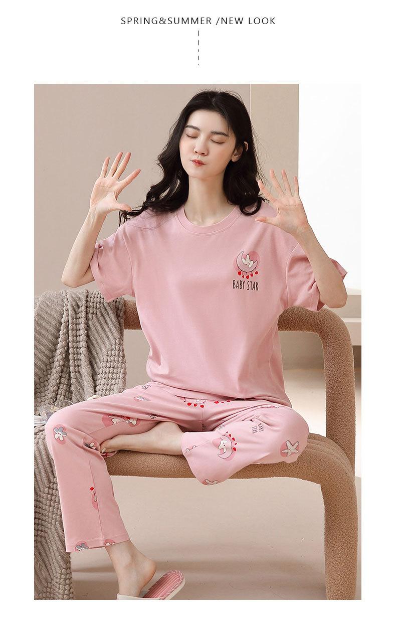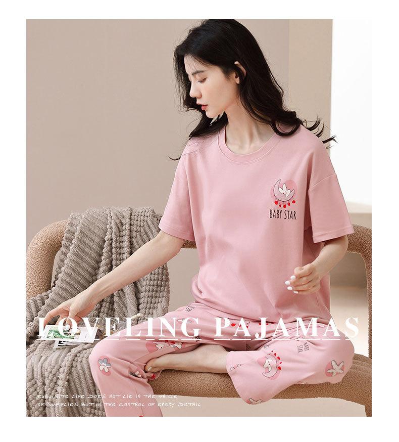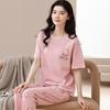Pijamas de algodón puro de primavera y verano para mujer, pantalones de manga corta, traje informal para el hogar, ropa para madres de mediana edad, ropa para exteriores, ropa para el hogar