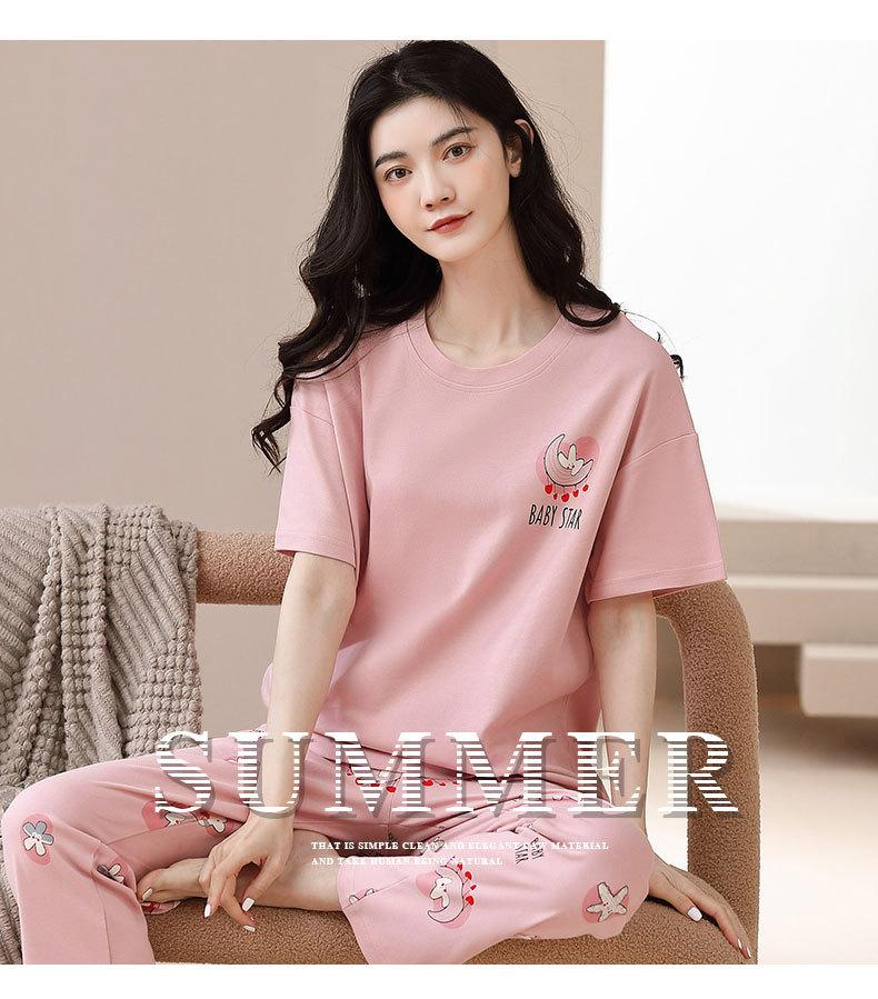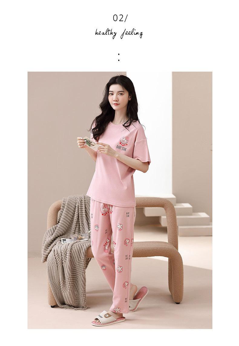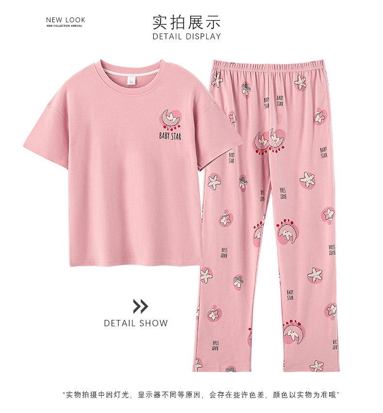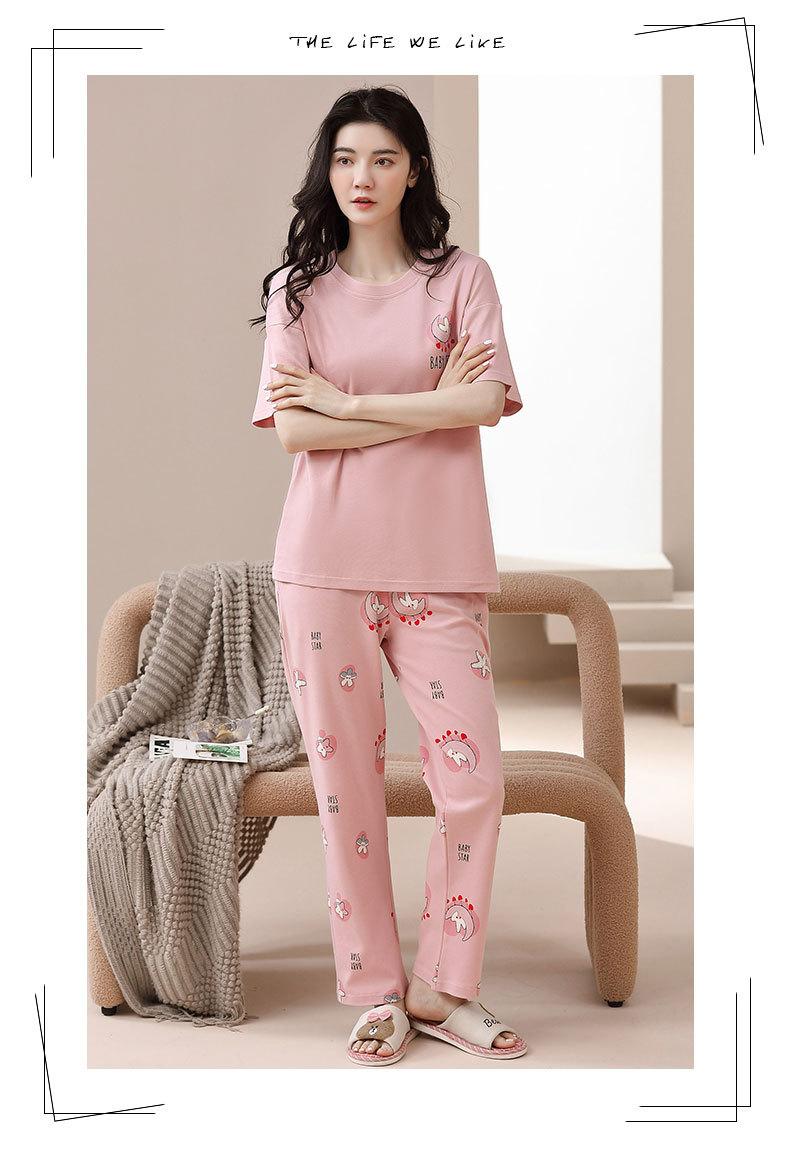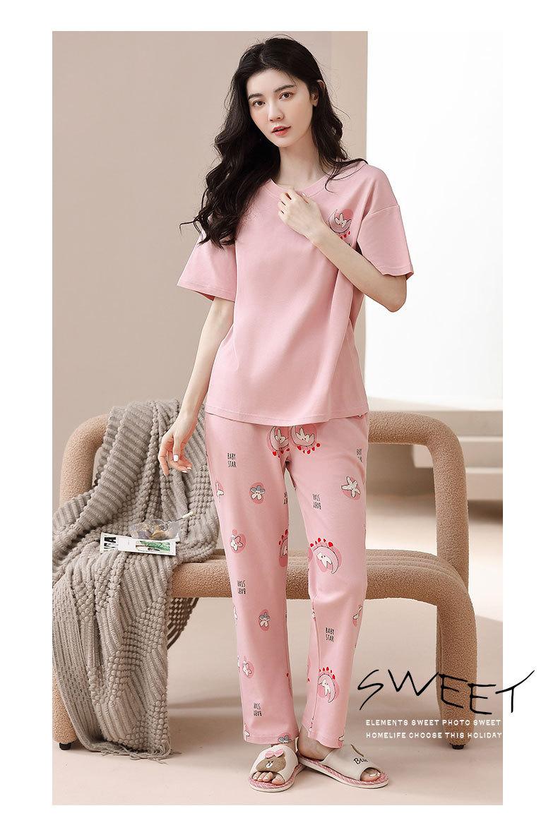 Pijamas de algodón puro de primavera y verano para mujer, pantalones de manga corta, traje informal para el hogar, ropa para madres de mediana edad, ropa para exteriores, ropa para el hogar
