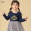 Vestido de niña con encaje, traje de primavera y otoño, nuevo estilo coreano, ropa para niños, vestido de princesa de manga larga para niños, conjunto de 2 piezas