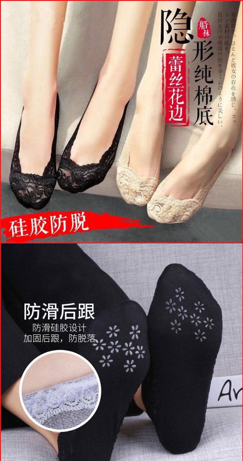 Calcetines náuticos nuevos para mujer, de boca baja, con encaje, antideslizantes, de caña baja, de verano