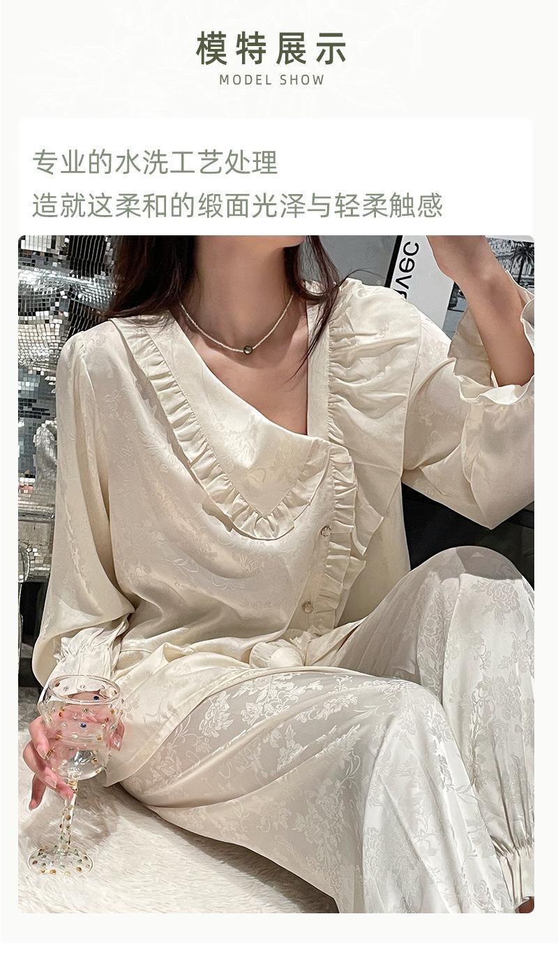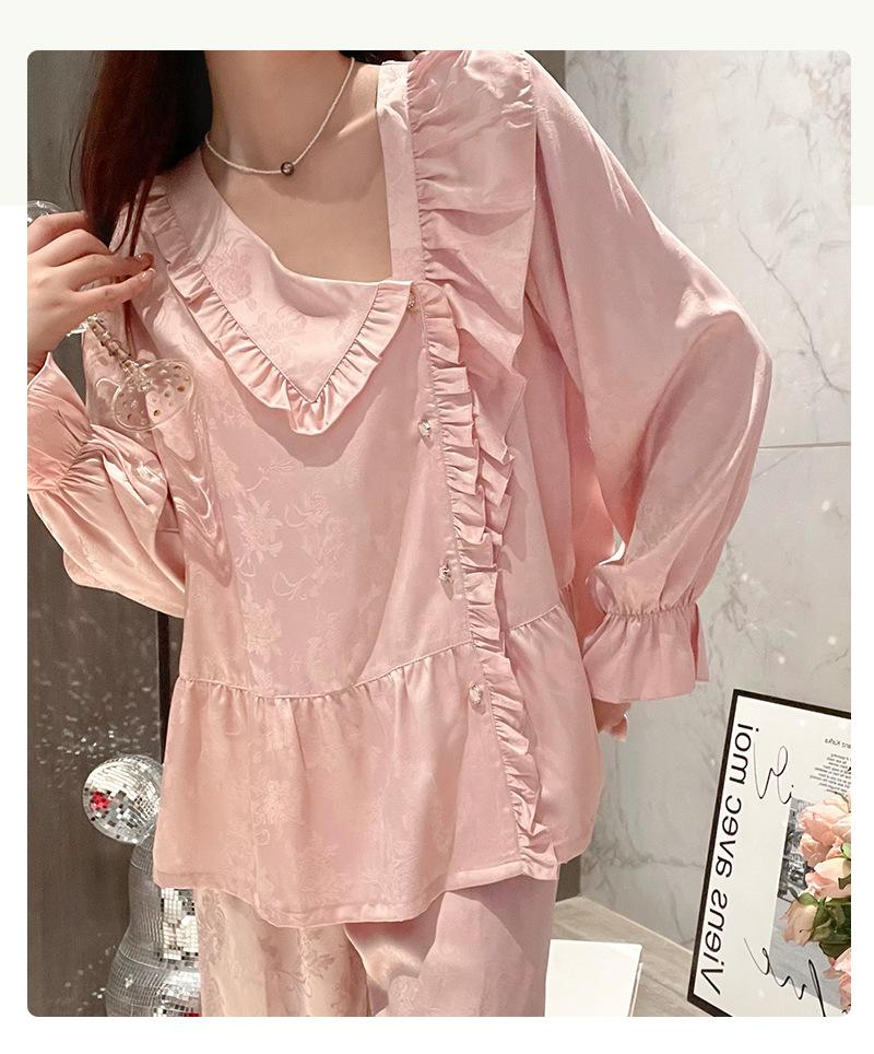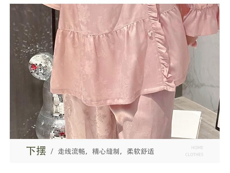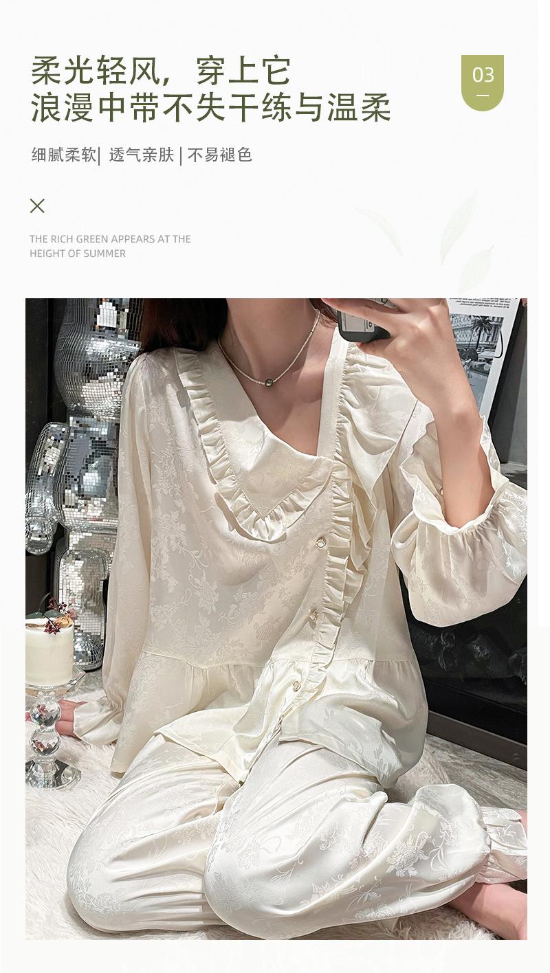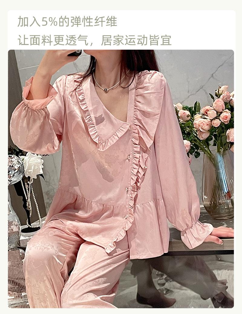 Pijama de jacquard fino de siete colores para mujer, ropa de hogar de otoño e invierno, pijama de seda de hielo fino de manga larga de alta calidad para mujer