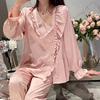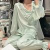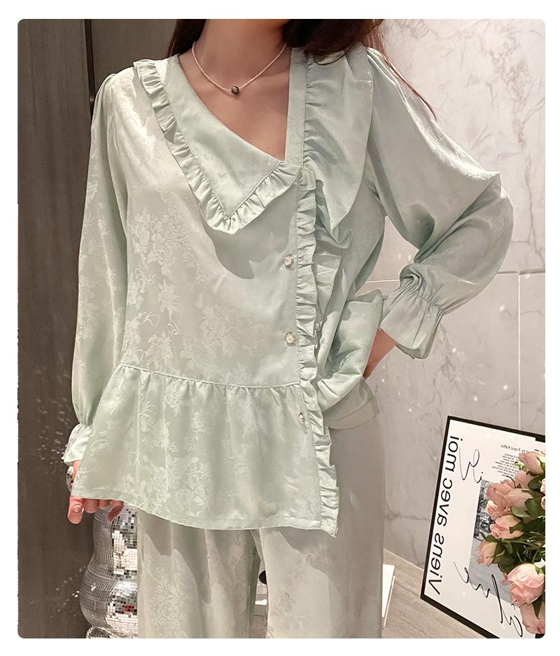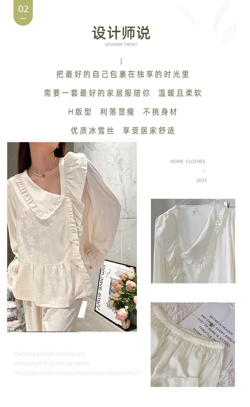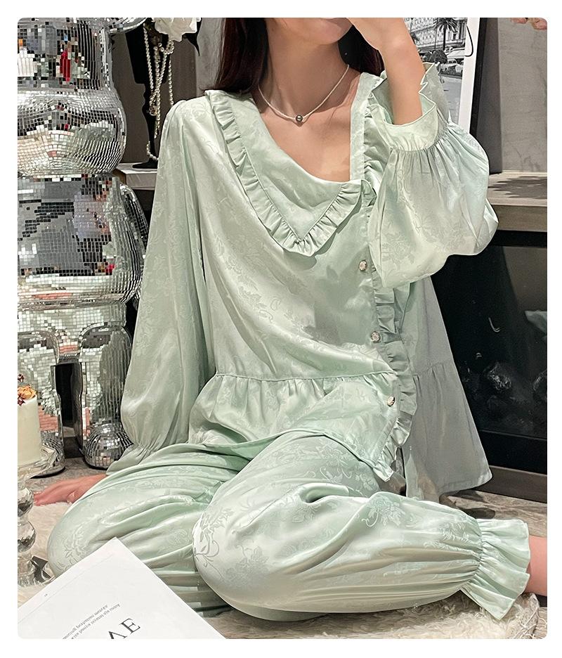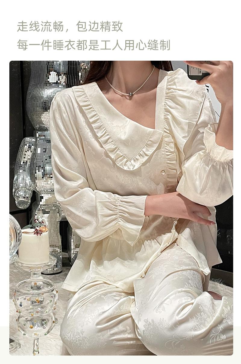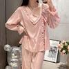Pijama de jacquard fino de siete colores para mujer, ropa de hogar de otoño e invierno, pijama de seda de hielo fino de manga larga de alta calidad para mujer