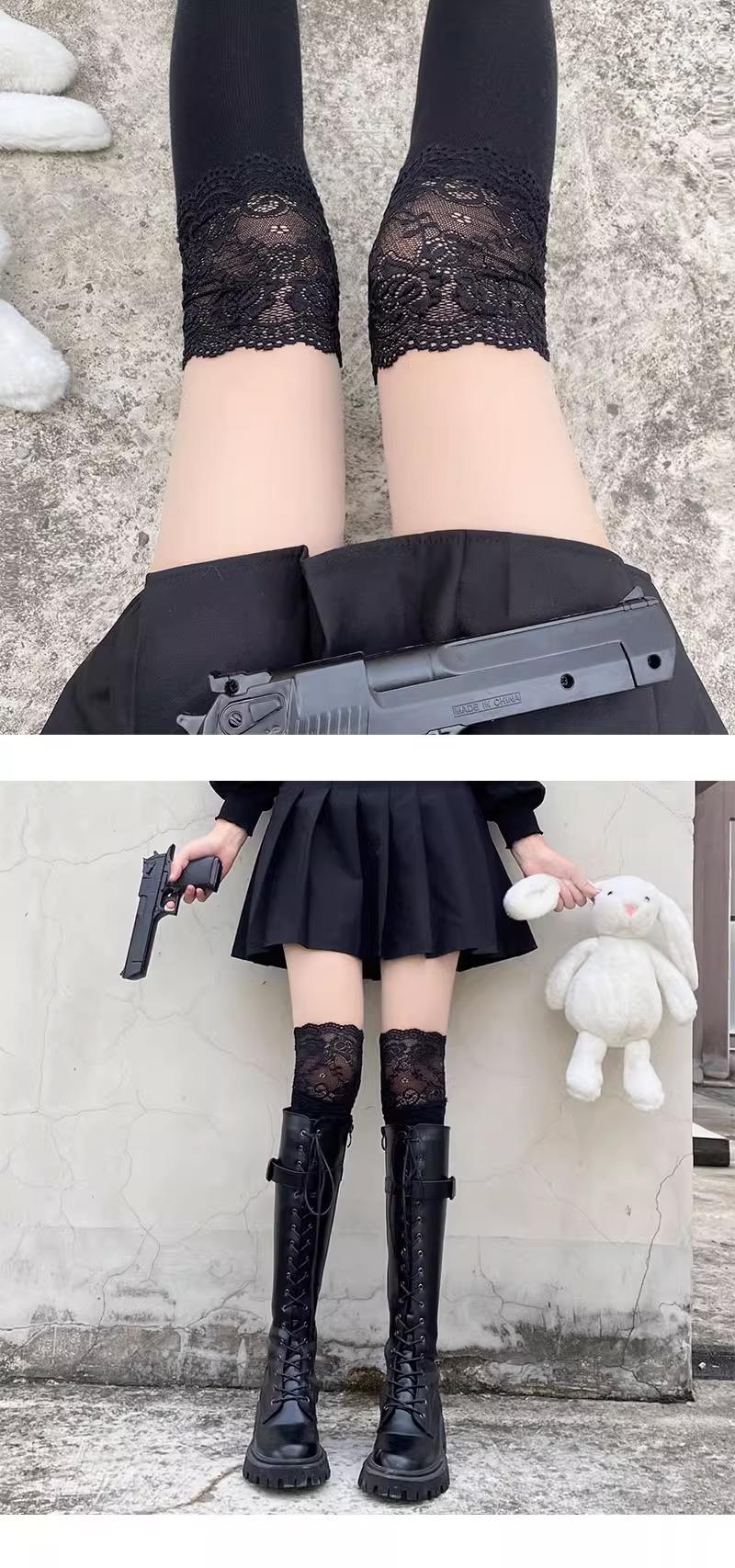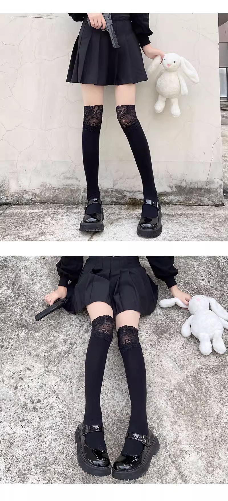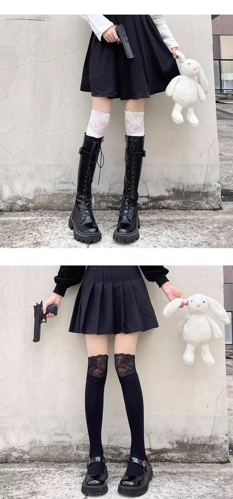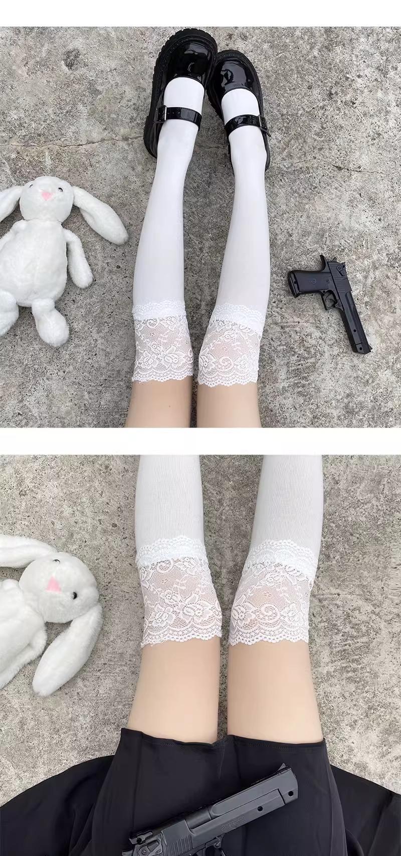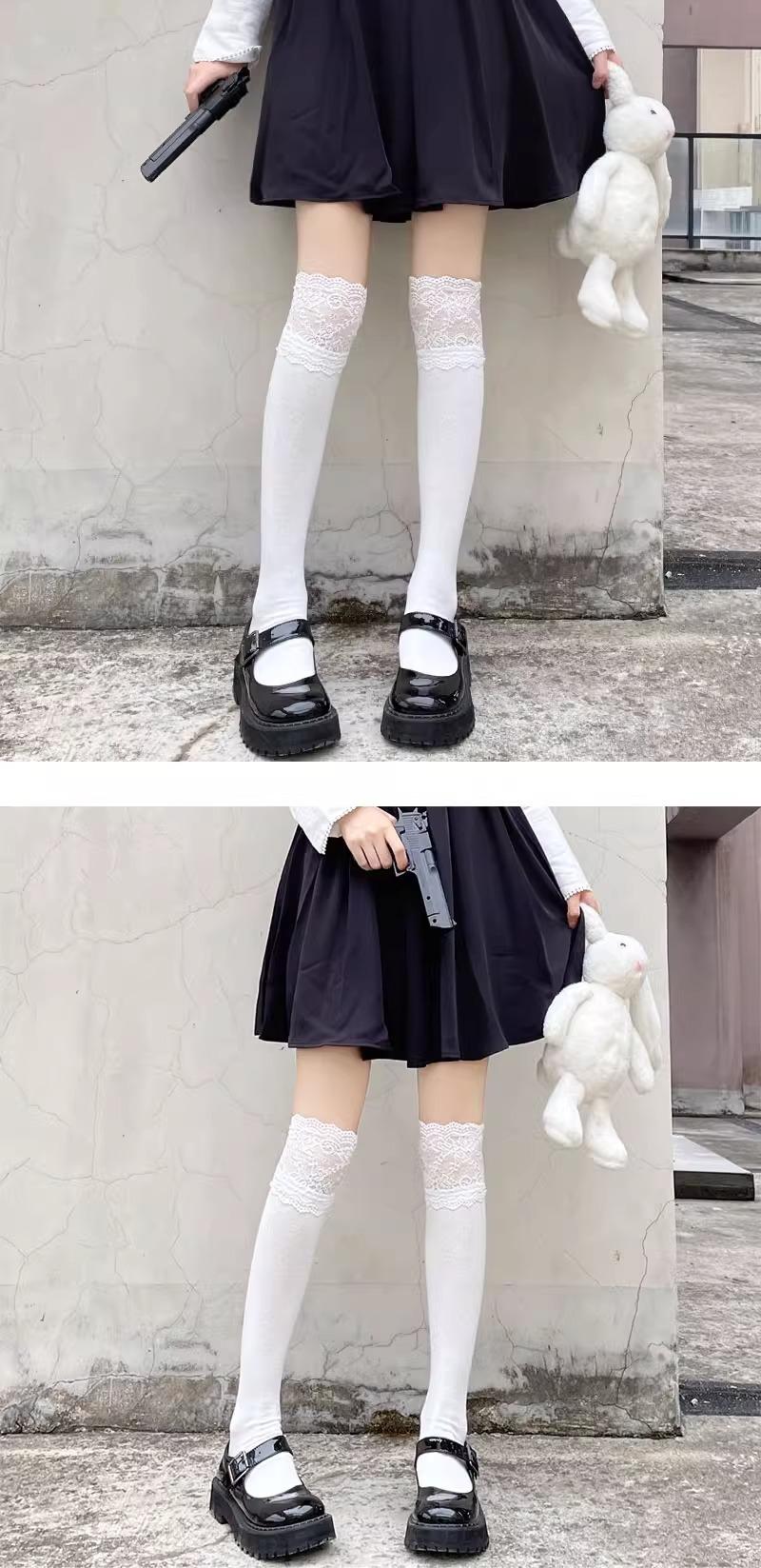 Medias Jk para Mujer Primavera y Otoño Calcetines con Puño Blanco Ins Trendy Popular en Internet Lolita Japonesa Lindos Encaje Calcetines por Encima de la Rodilla