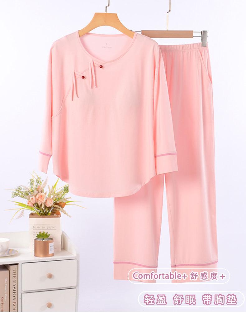 Nuevo pijama chino de primavera y verano para mujer con almohadilla para el pecho, sin sujetador, para exteriores, ropa de casa de alta calidad, traje para el hogar