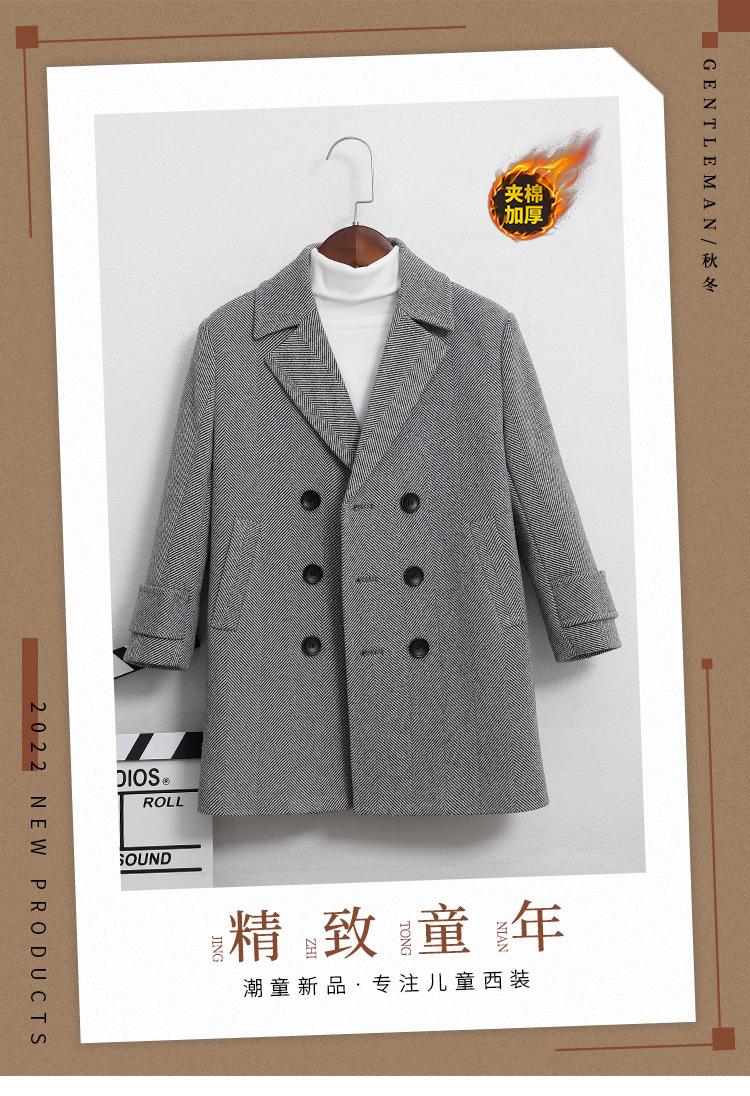 Abrigo de lana para niño, otoño e invierno 2023, nuevo estilo occidental, cortavientos para niños, abrigo de lana grueso de invierno para bebés.