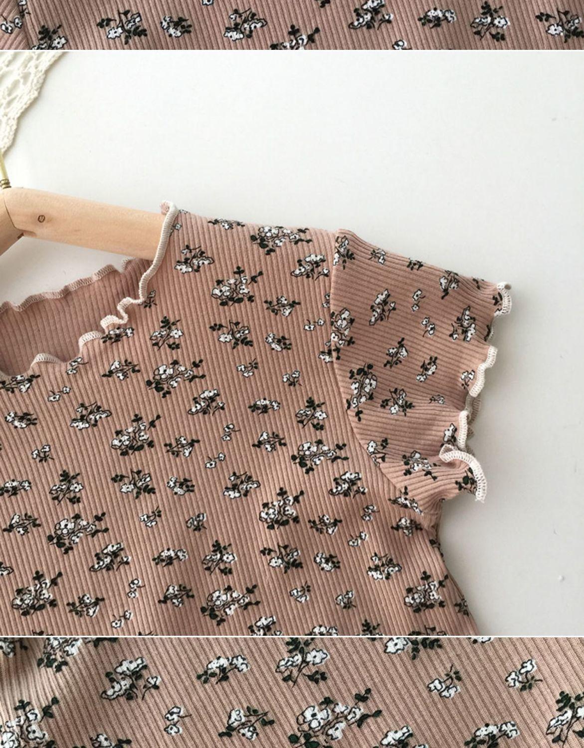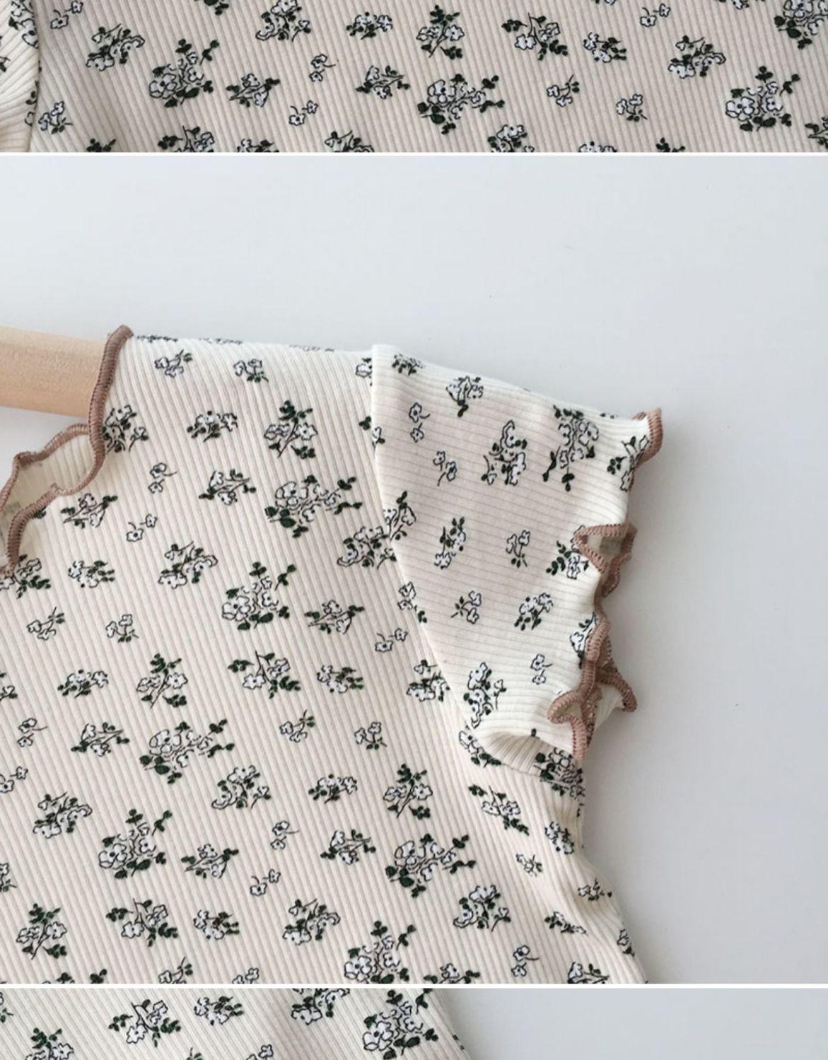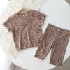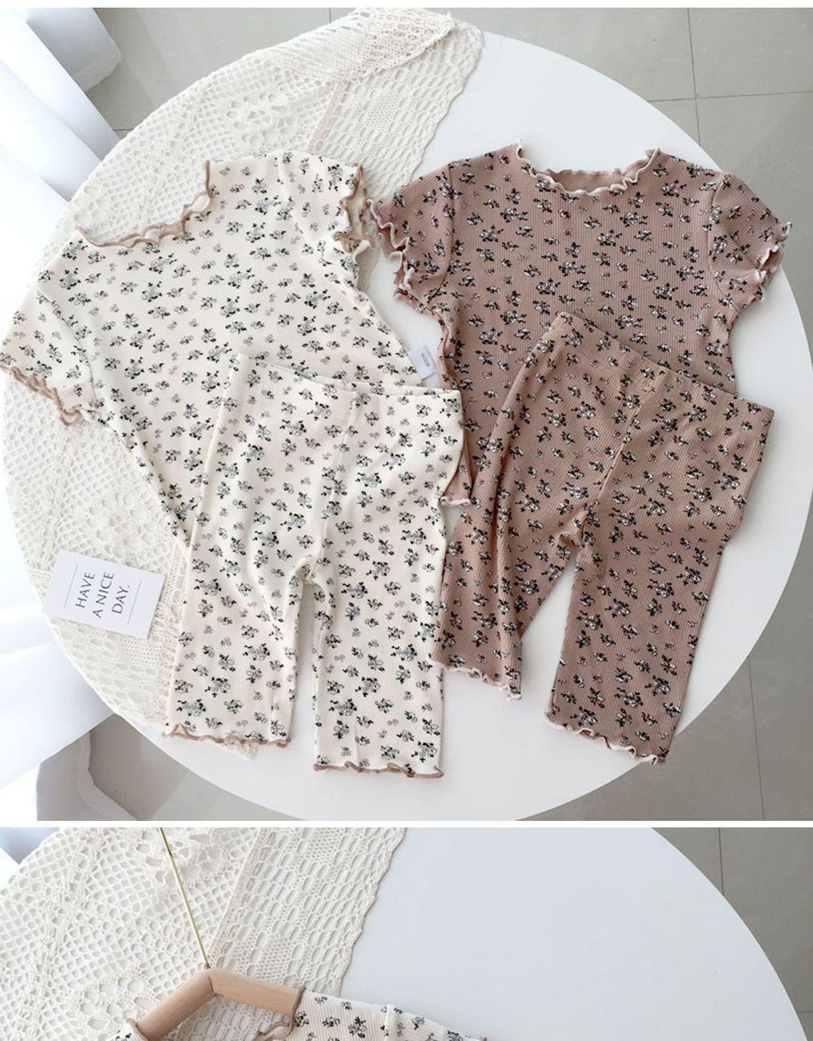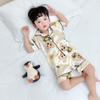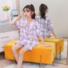Seda de Hielo Verano Nuevo Estilo Ropa Exterior para Niñas Manga Corta Floral Conjunto de Dos Piezas para el Hogar Pijamas para Niños