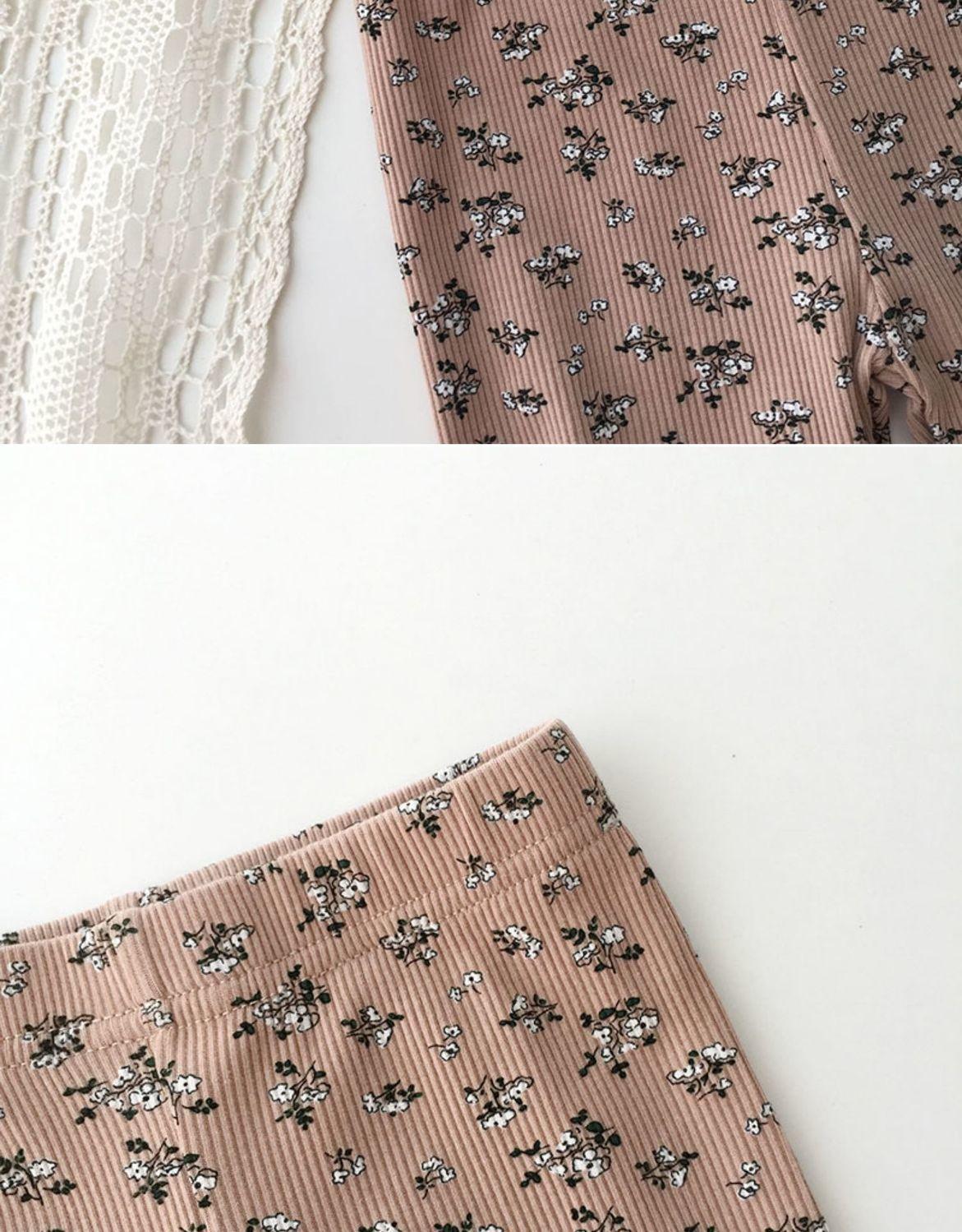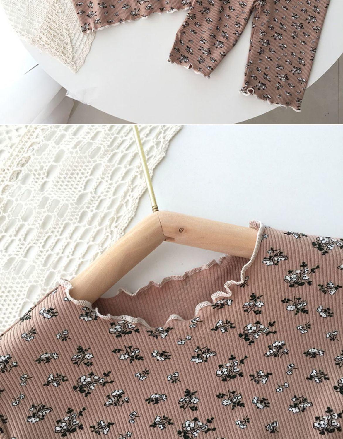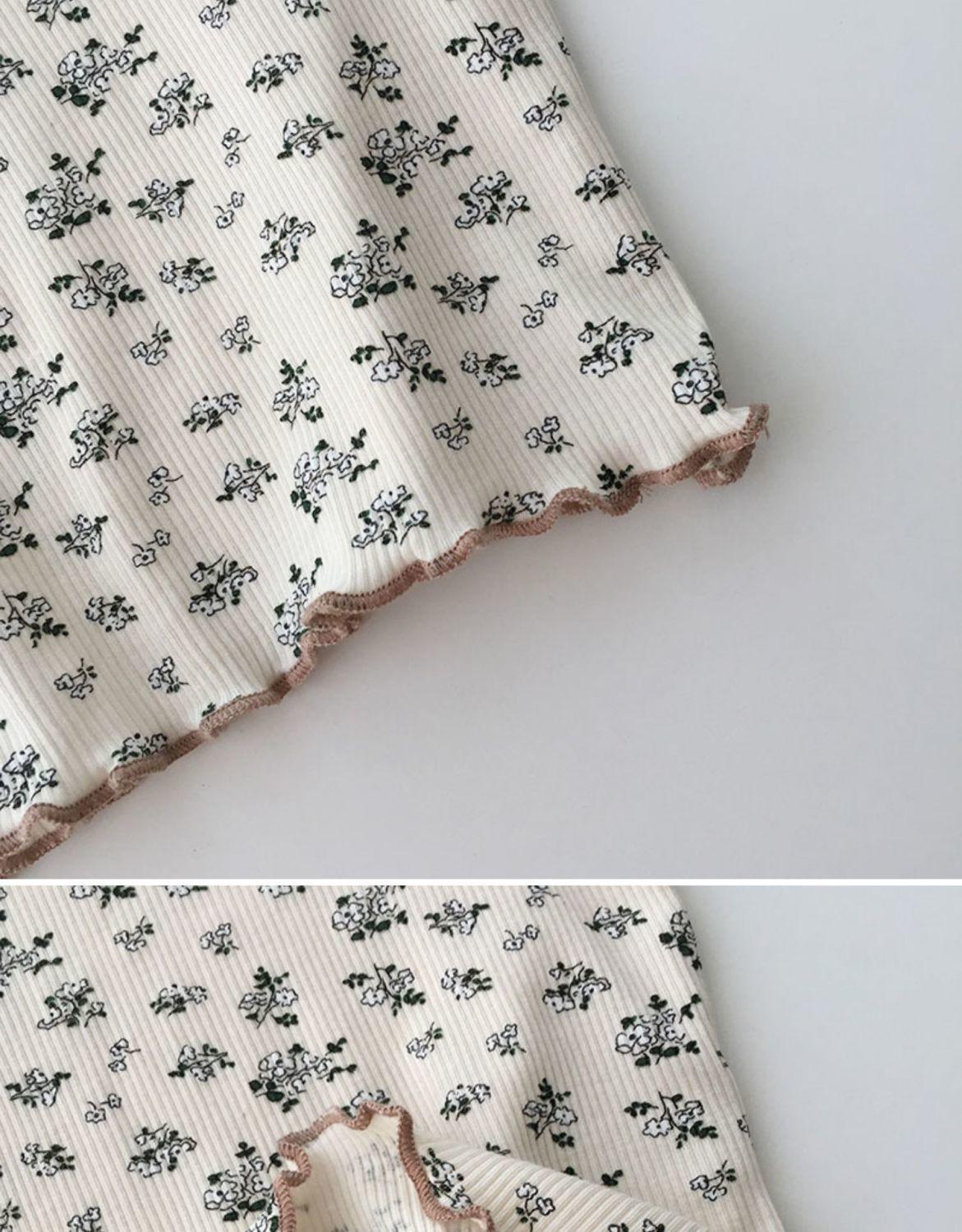 Seda de Hielo Verano Nuevo Estilo Ropa Exterior para Niñas Manga Corta Floral Conjunto de Dos Piezas para el Hogar Pijamas para Niños