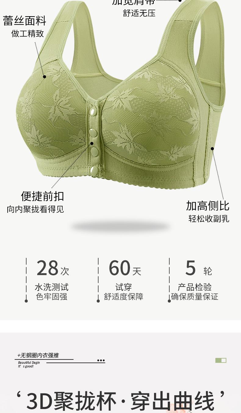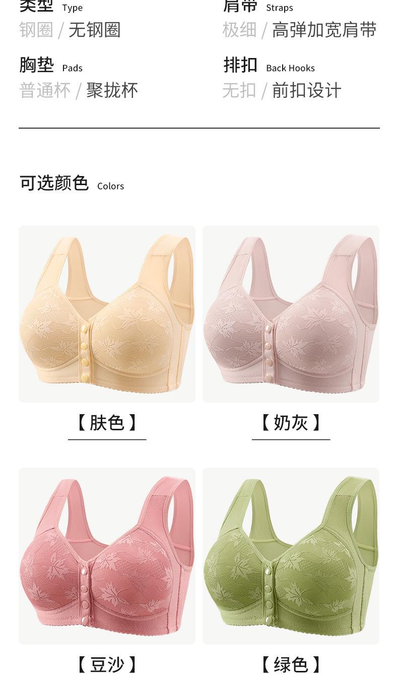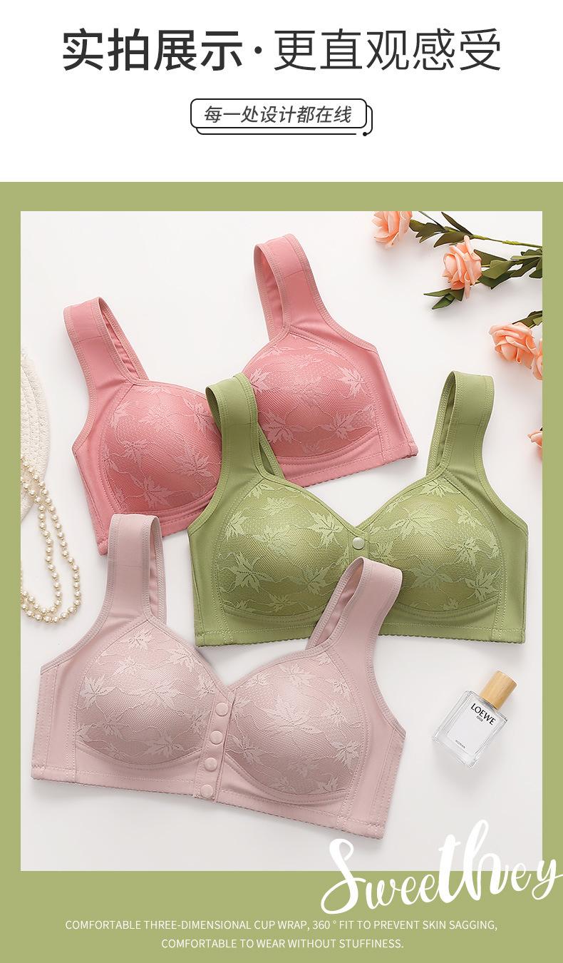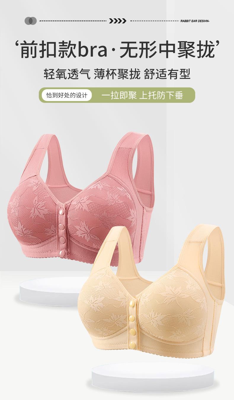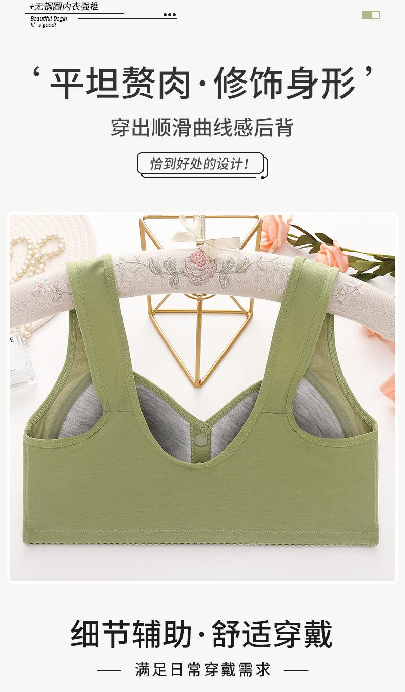 Ropa interior con hebilla frontal para mujeres de mediana edad y mayores de talla grande, nueva, de algodón suave, tipo chaleco de copa fina, sin aro de acero, estampada, transpirable y grande.