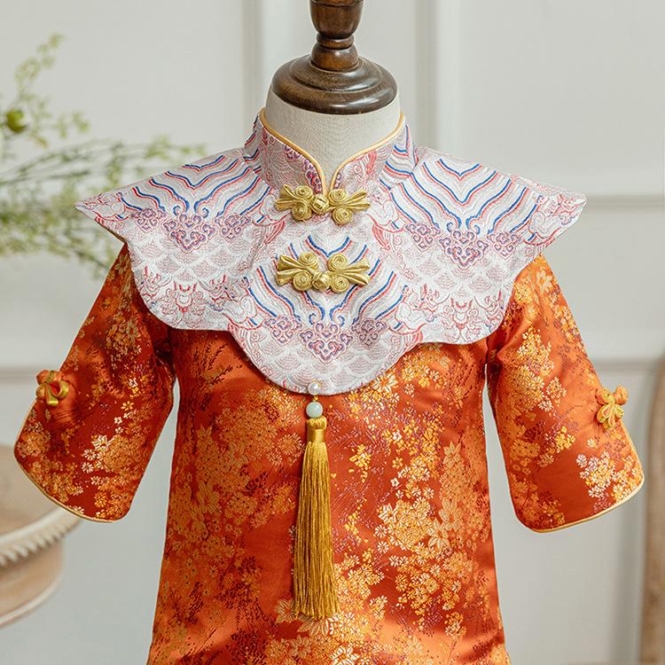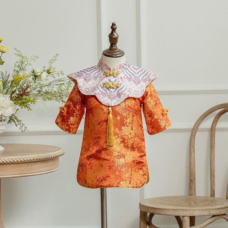 Cheongsam para niños, Vestido de verano para niña, Traje Tang de tendencia nacional étnica Vestido de princesa para niña