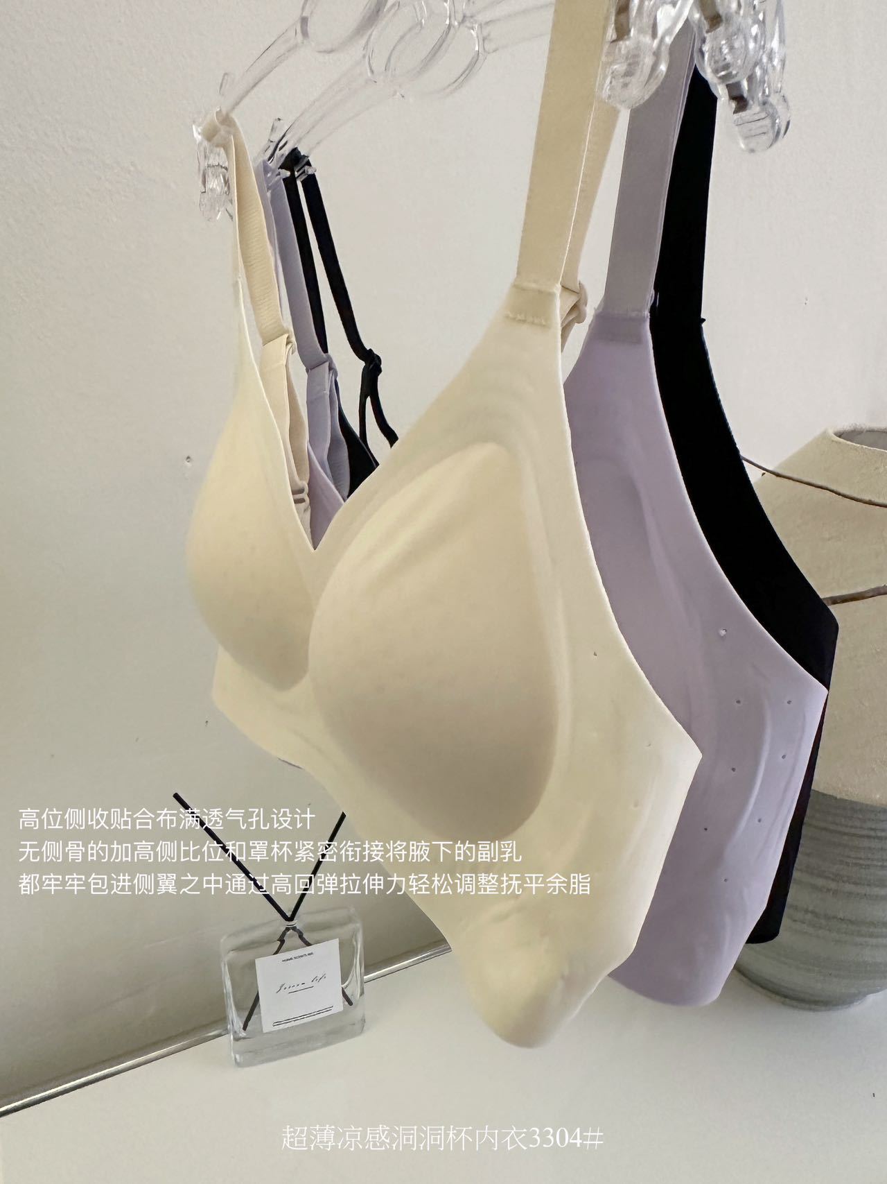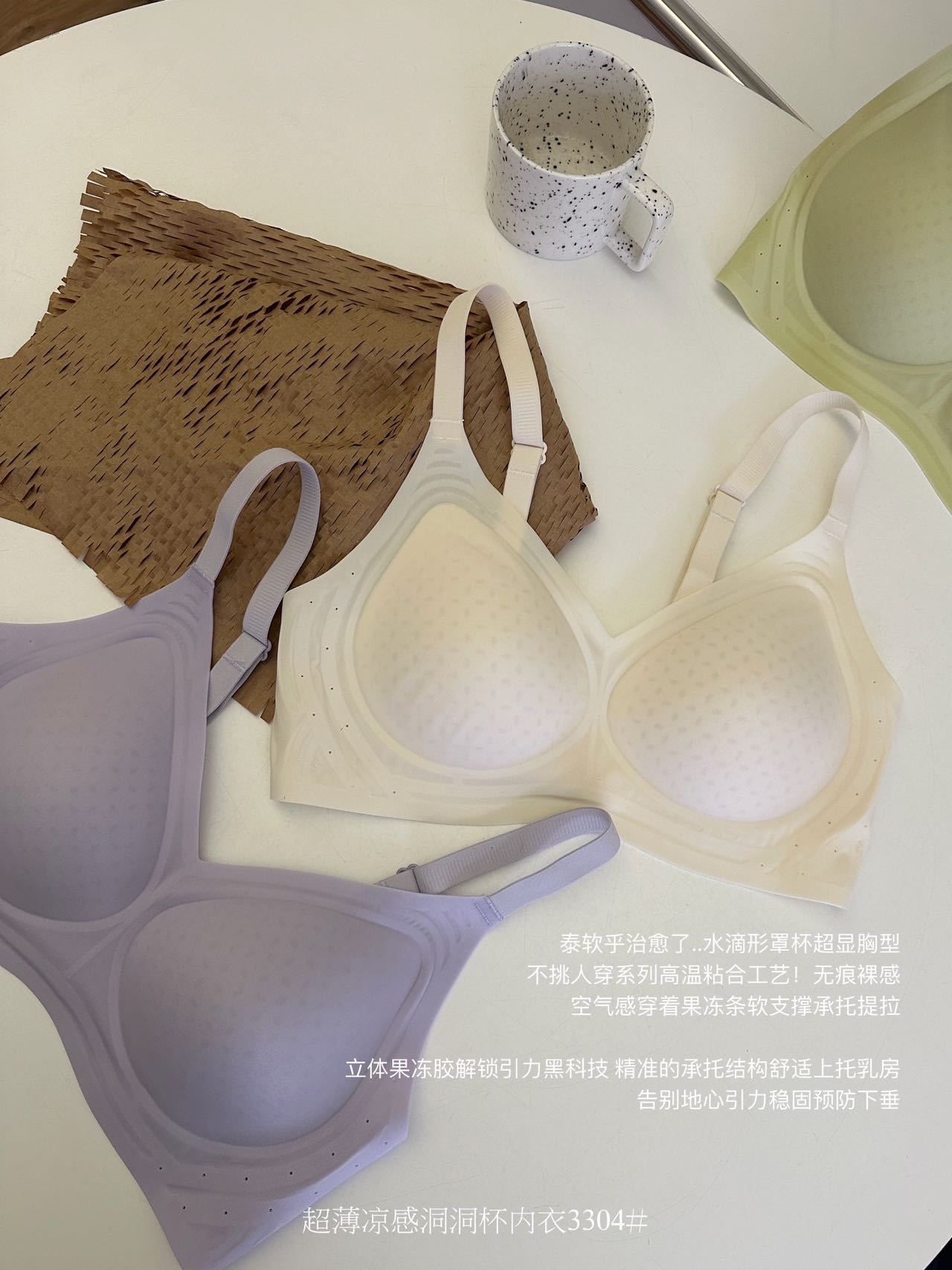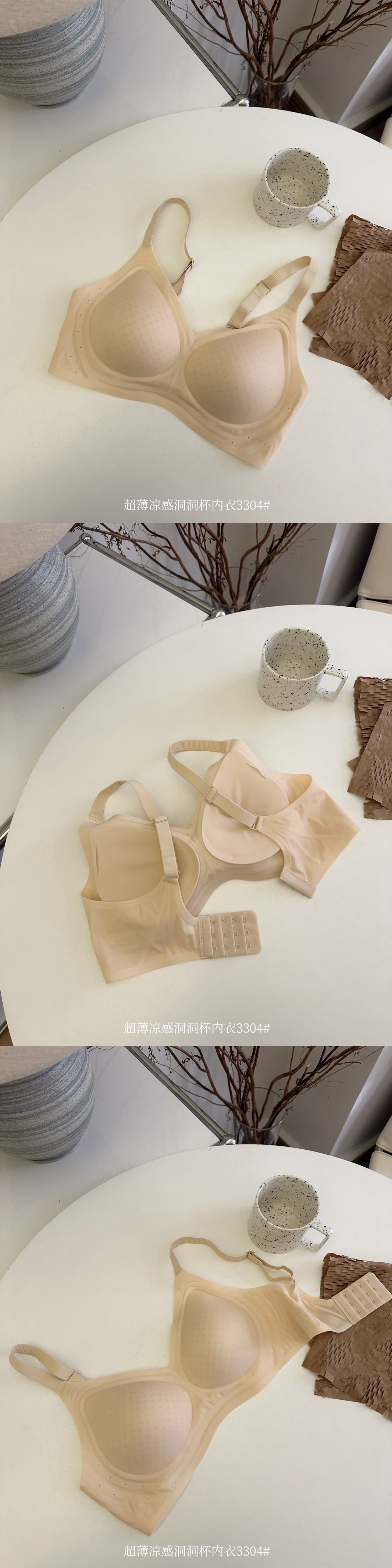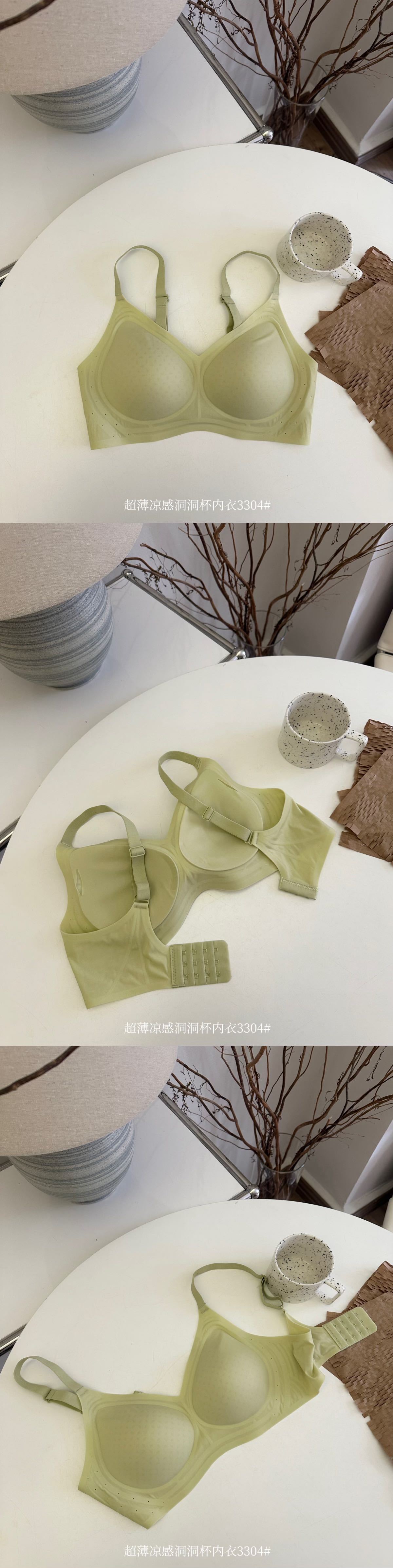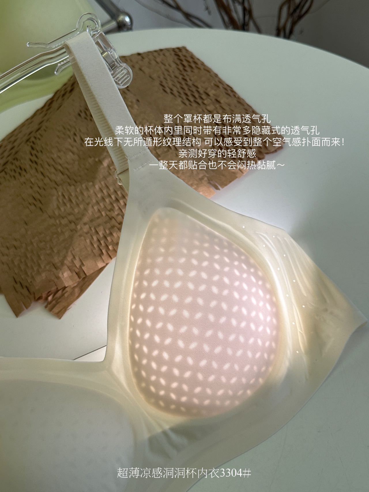 3304# ropa interior ultradelgada con copa de orificios de sensación fresca, sin costuras, suave, con realce, tira de goma de gelatina, soporte suave, sin aro de acero, ropa interior para mujer