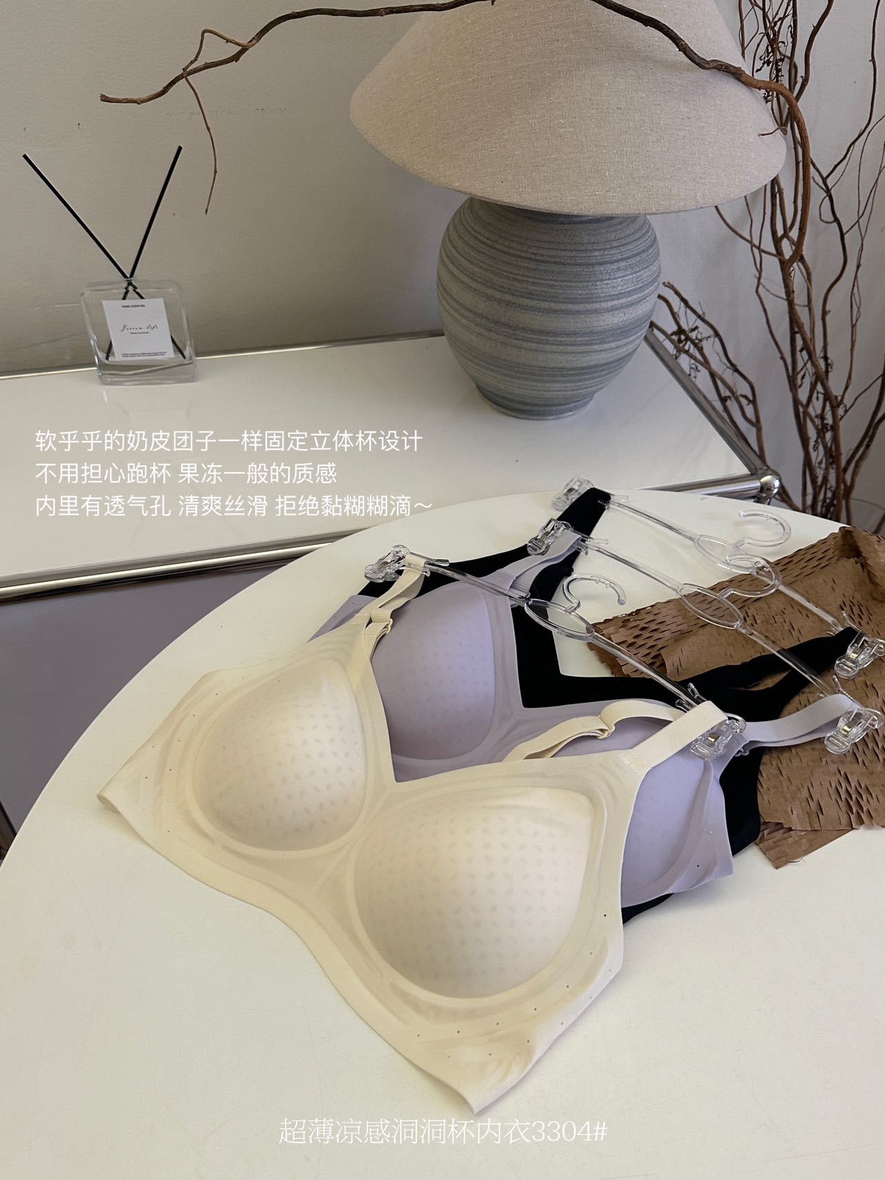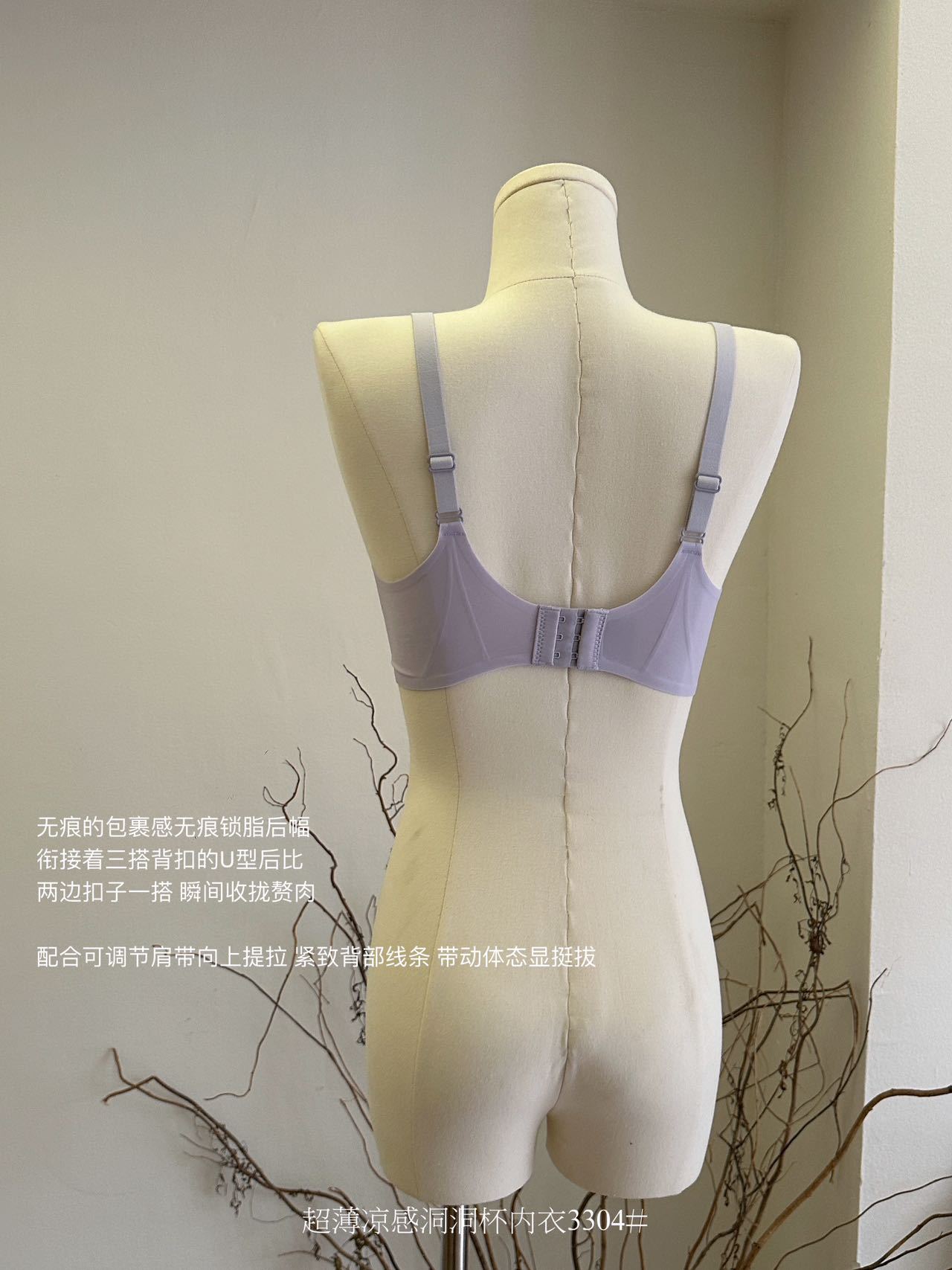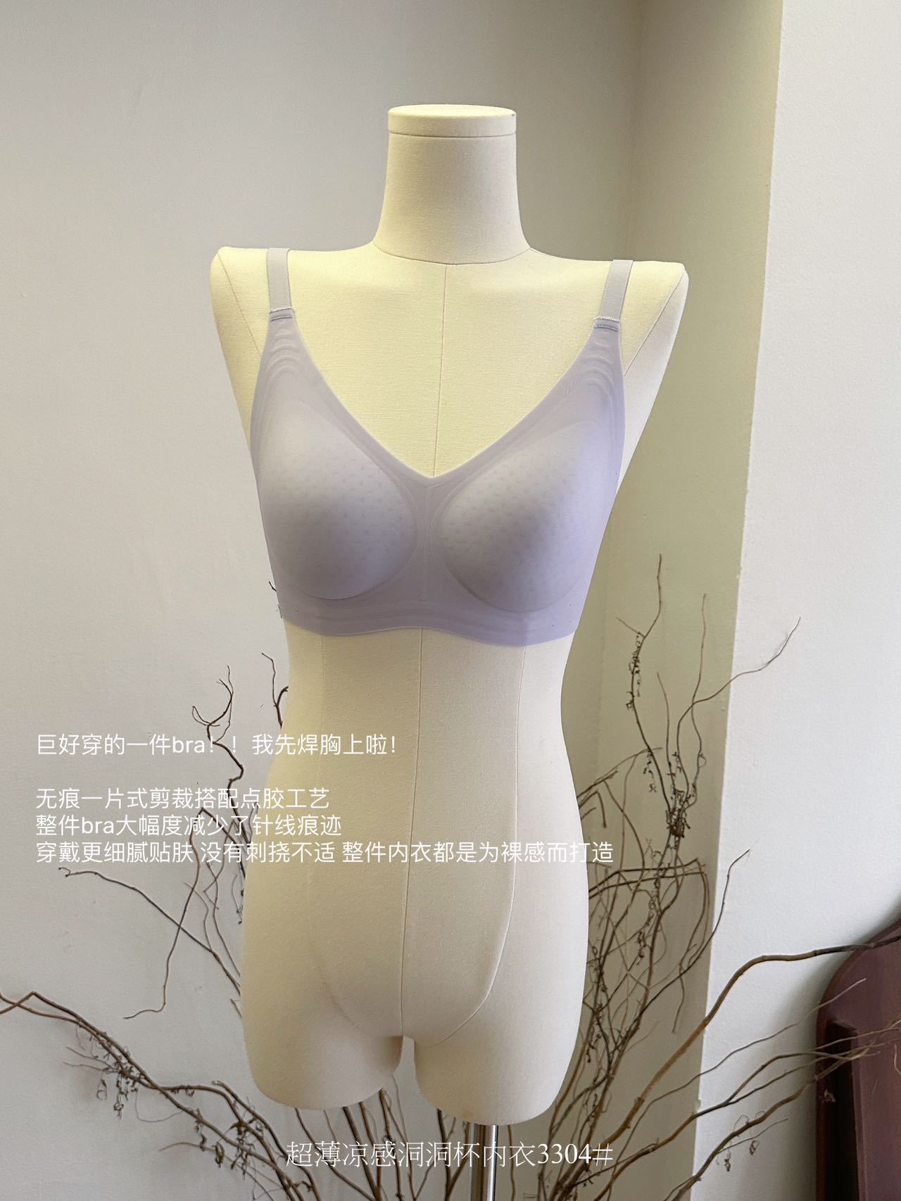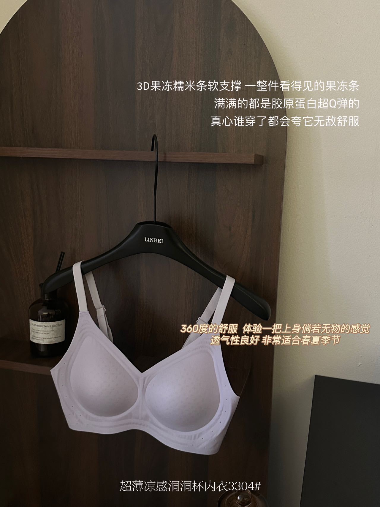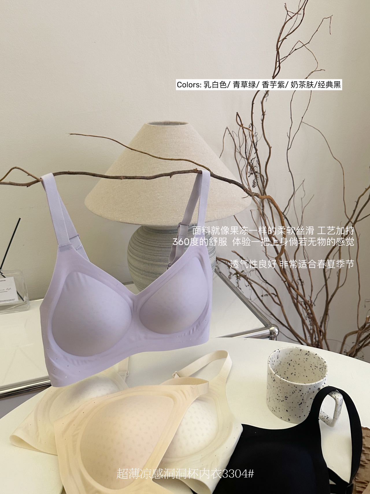 3304# ropa interior ultradelgada con copa de orificios de sensación fresca, sin costuras, suave, con realce, tira de goma de gelatina, soporte suave, sin aro de acero, ropa interior para mujer