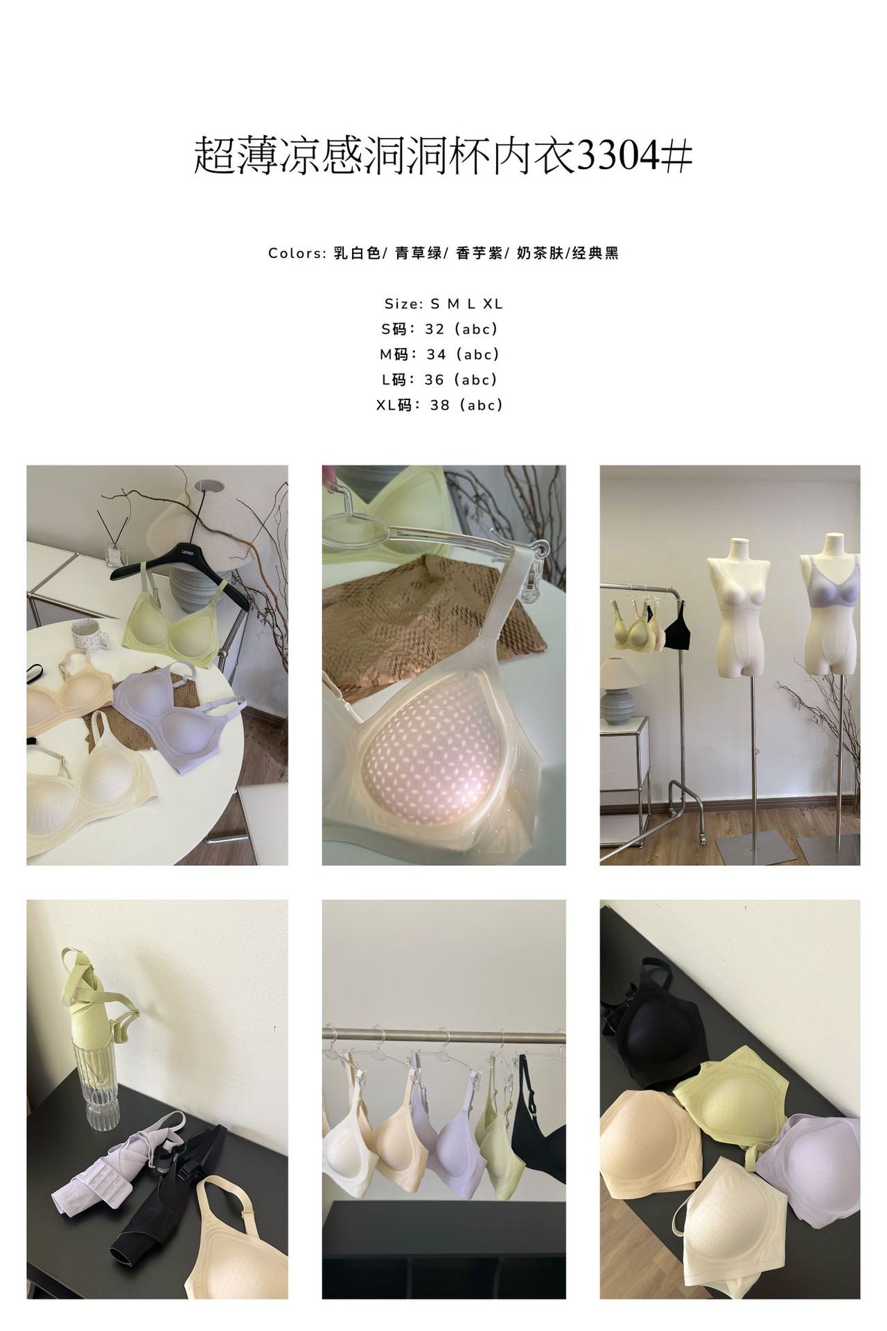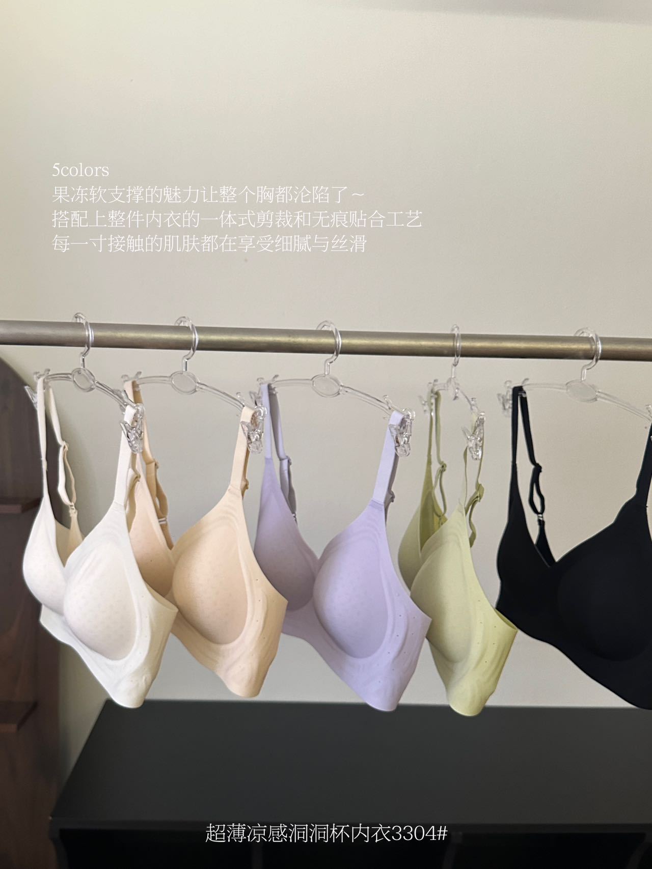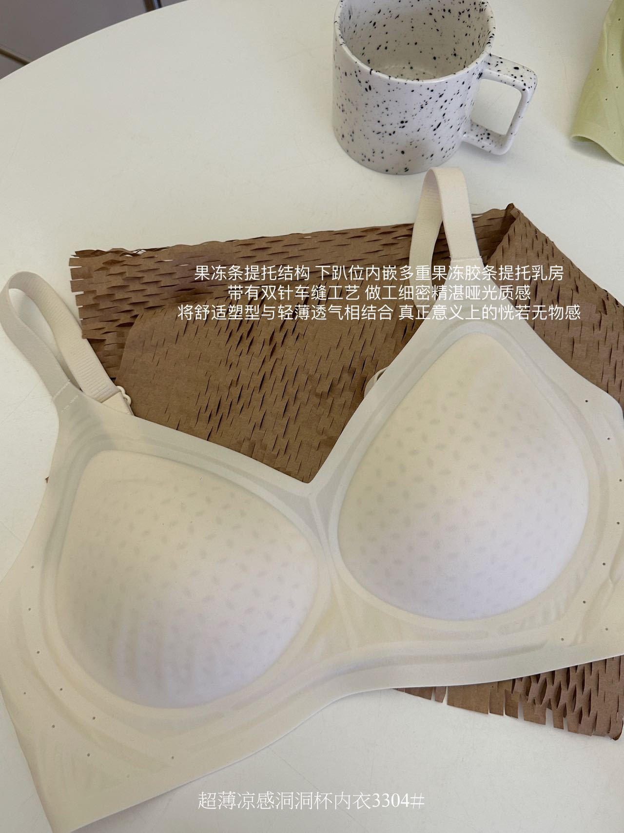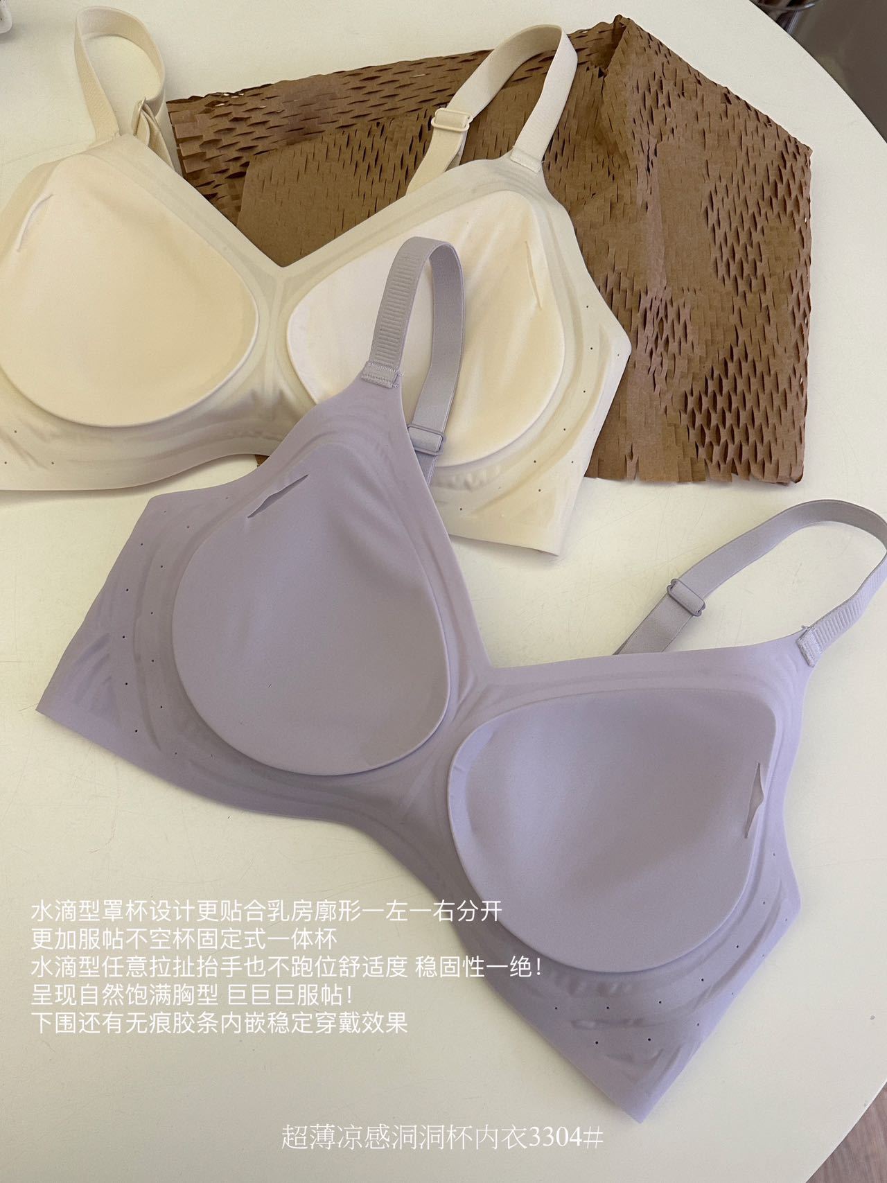 3304# ropa interior ultradelgada con copa de orificios de sensación fresca, sin costuras, suave, con realce, tira de goma de gelatina, soporte suave, sin aro de acero, ropa interior para mujer