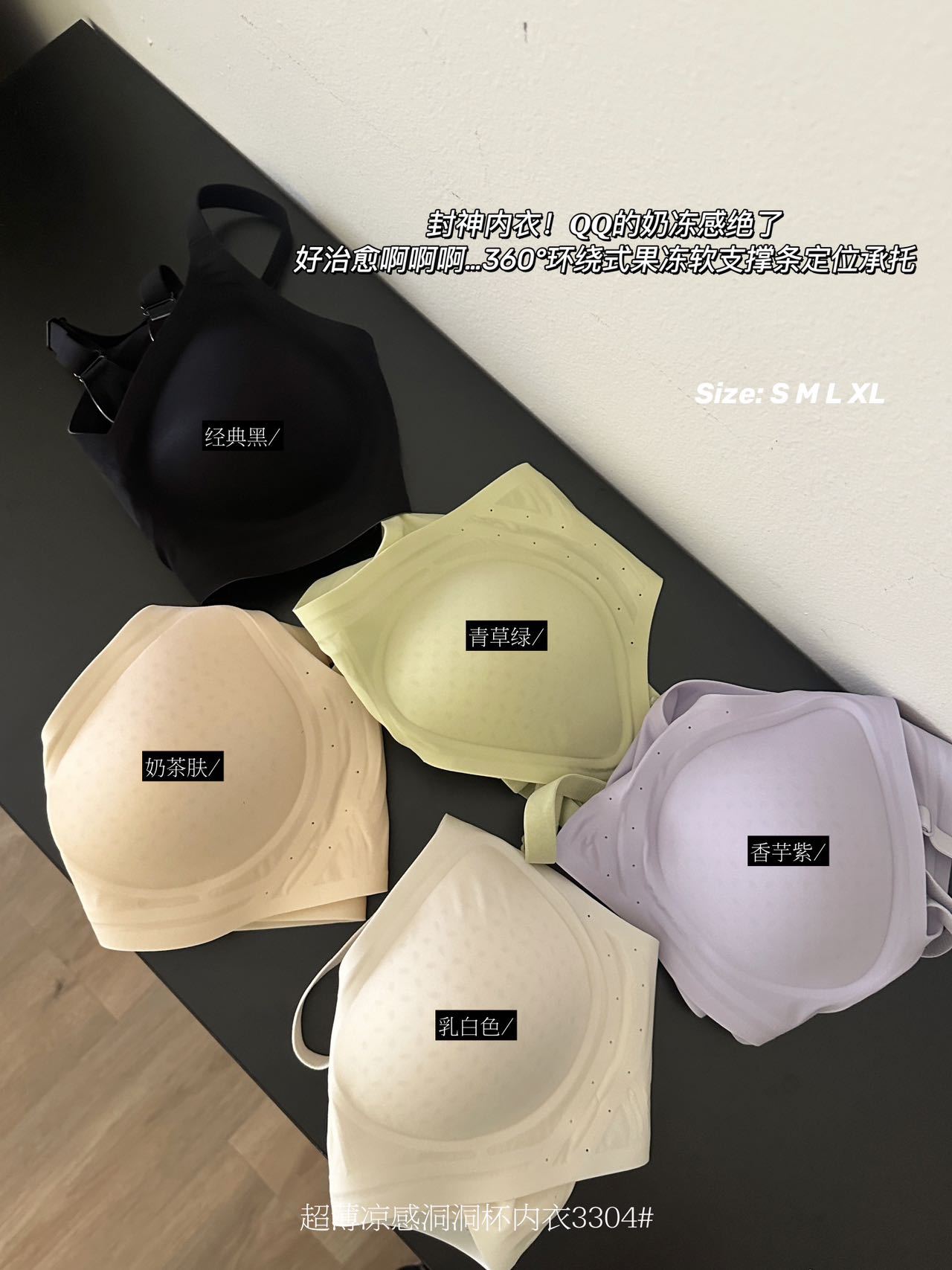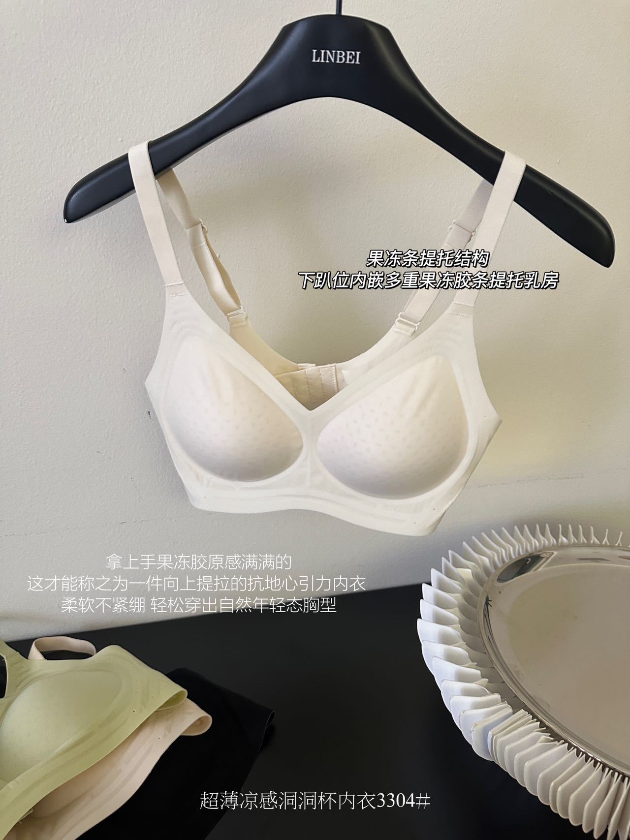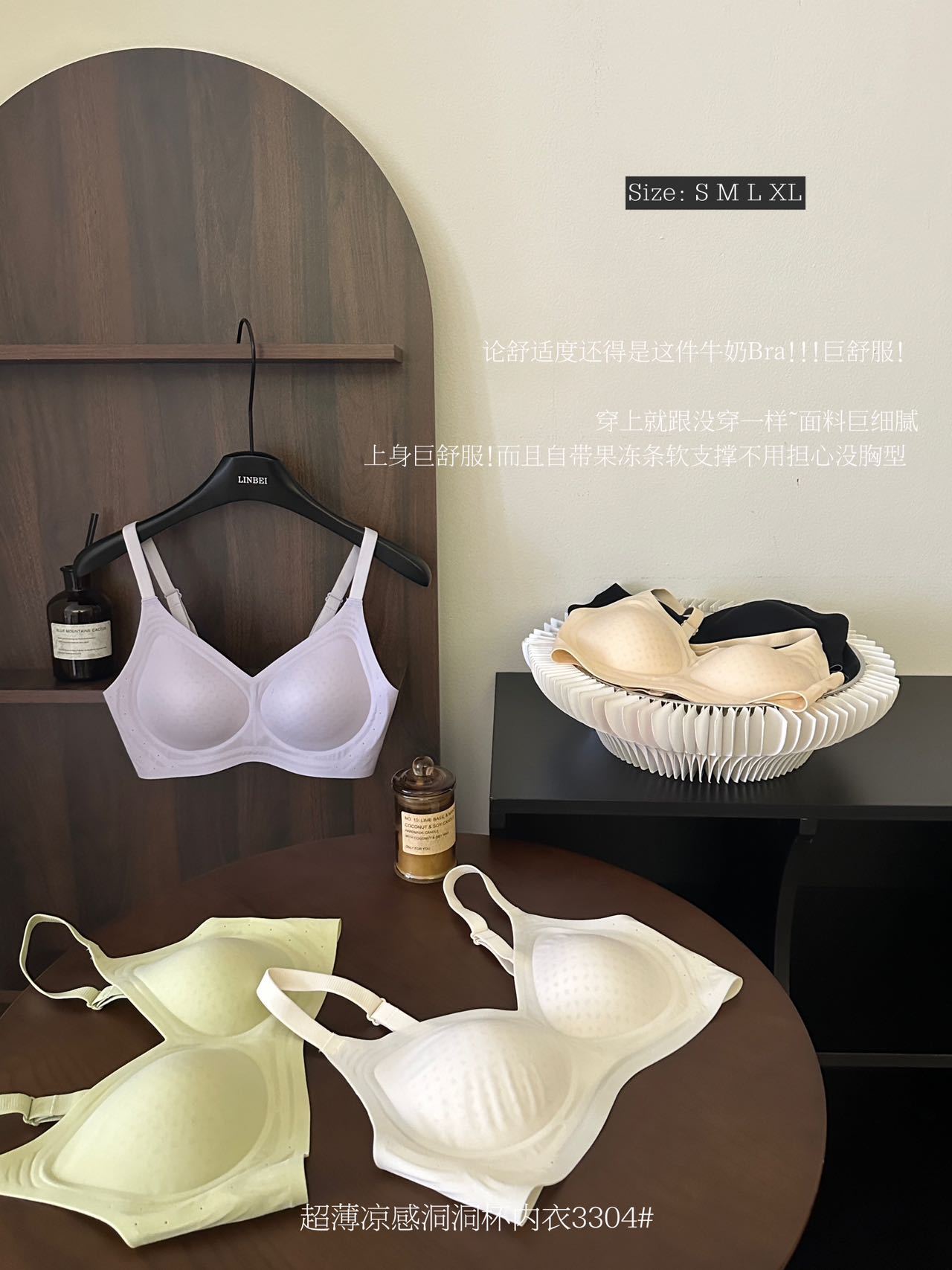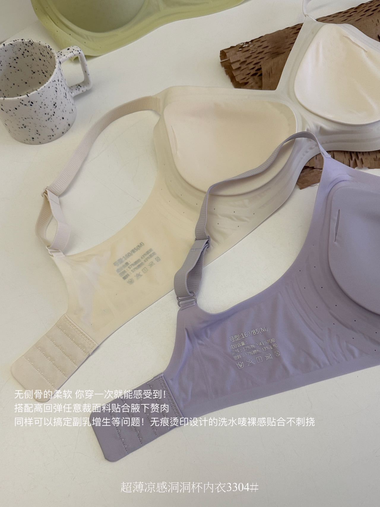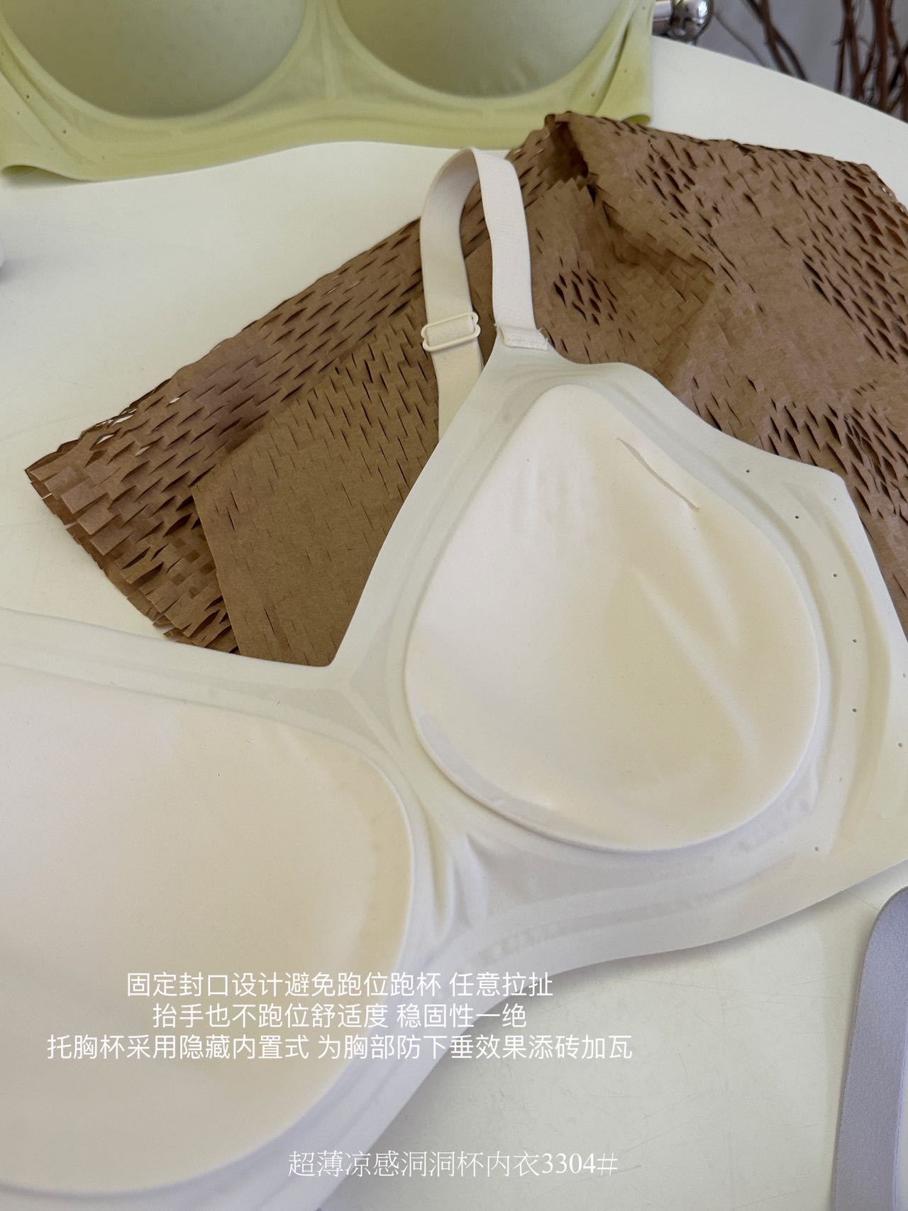 3304# ropa interior ultradelgada con copa de orificios de sensación fresca, sin costuras, suave, con realce, tira de goma de gelatina, soporte suave, sin aro de acero, ropa interior para mujer