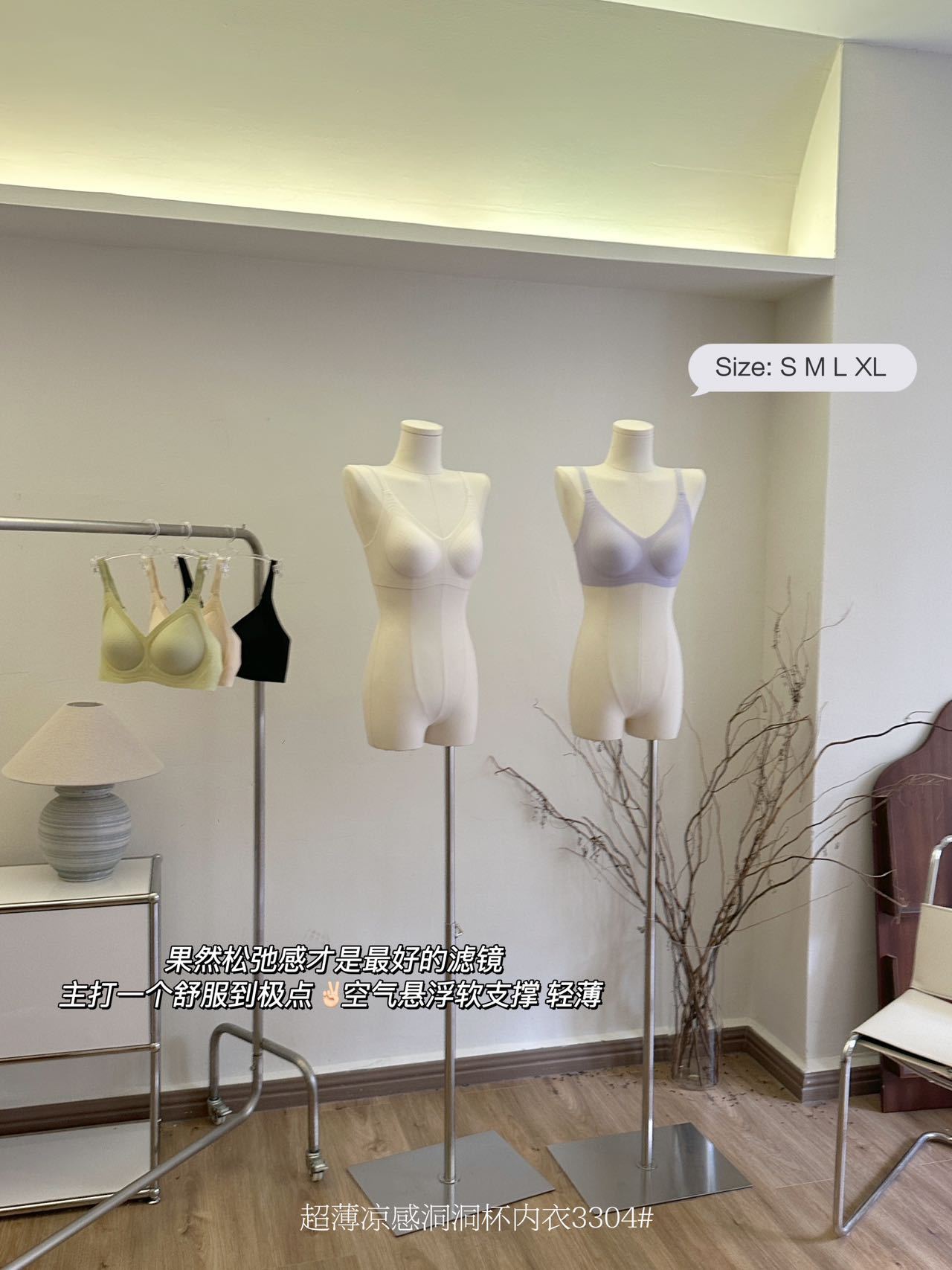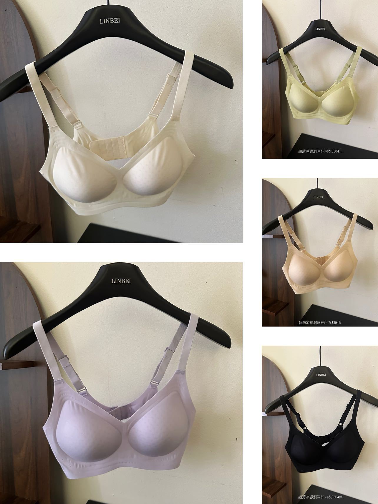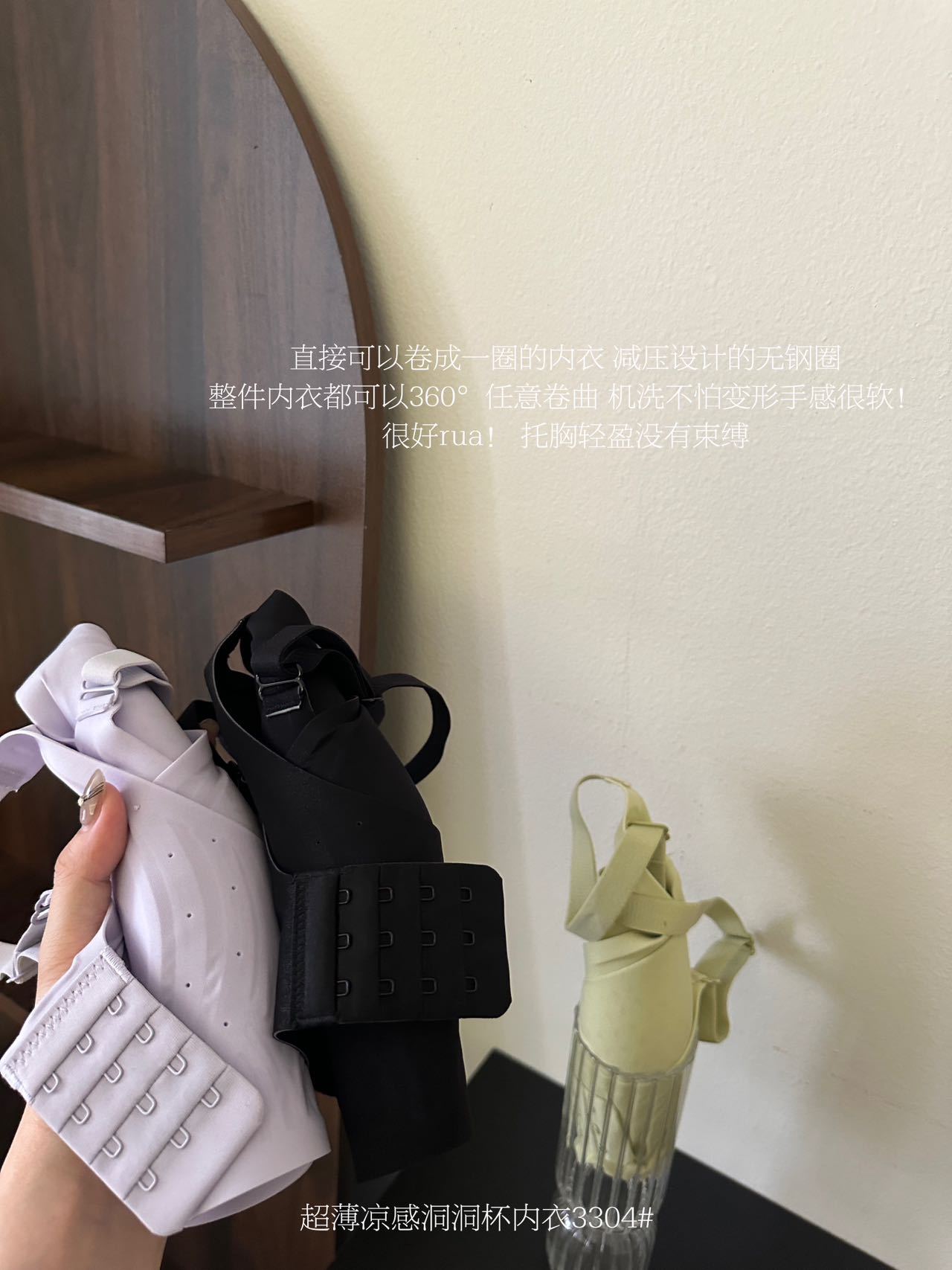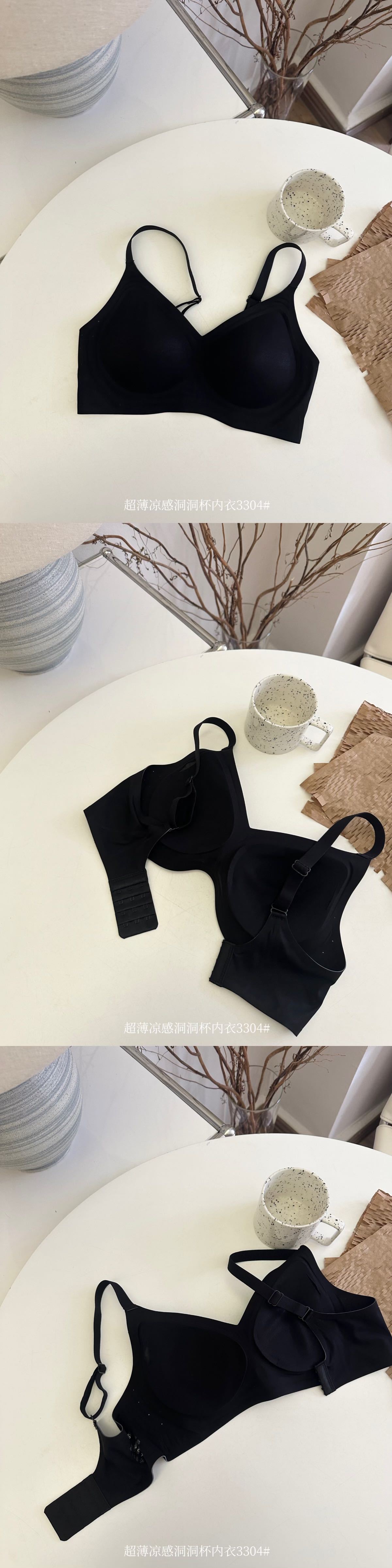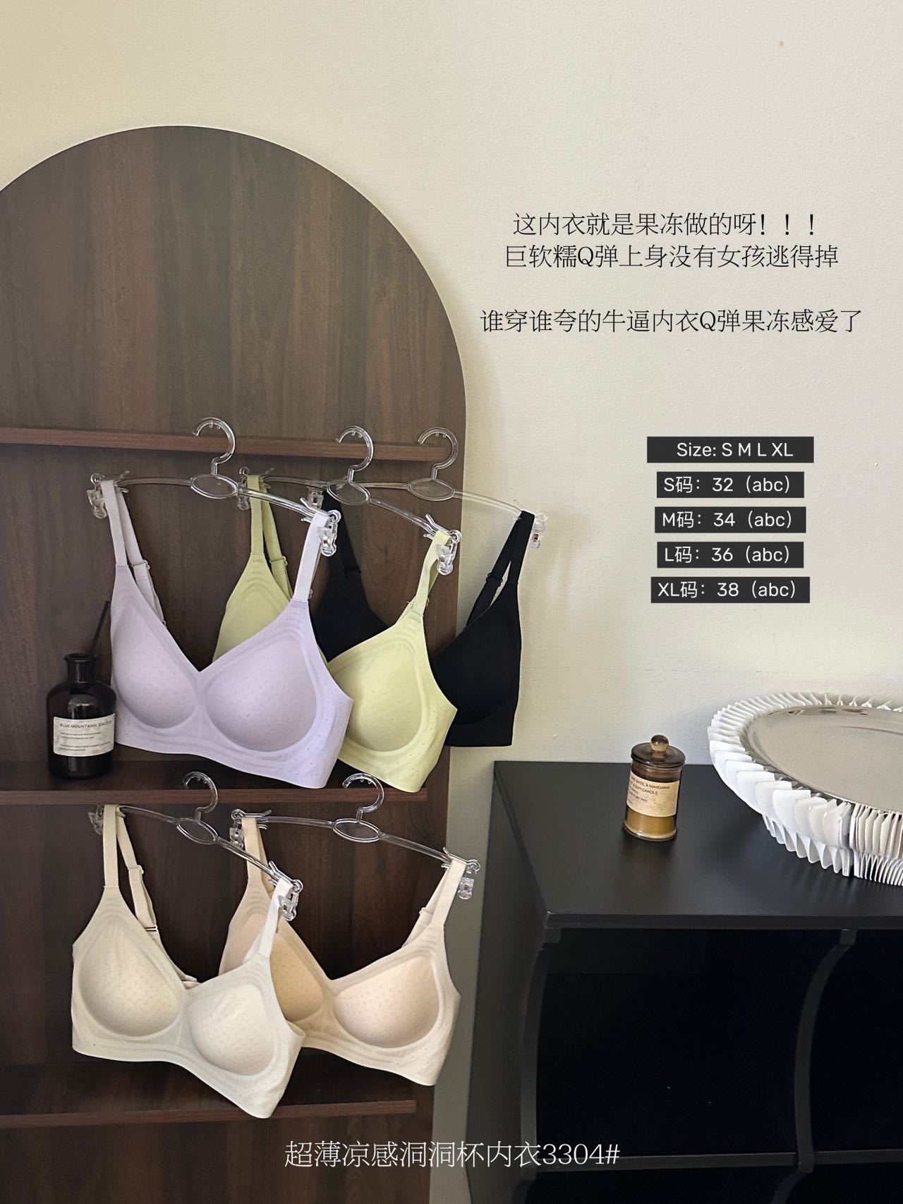 3304# ropa interior ultradelgada con copa de orificios de sensación fresca, sin costuras, suave, con realce, tira de goma de gelatina, soporte suave, sin aro de acero, ropa interior para mujer