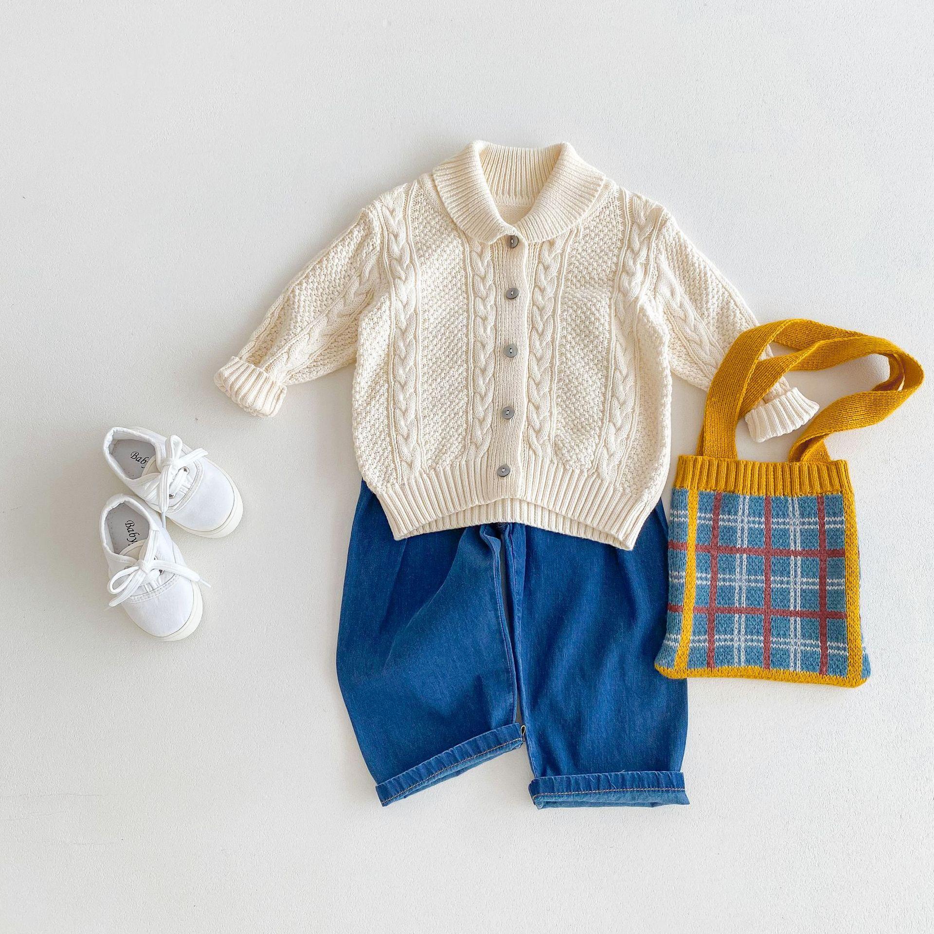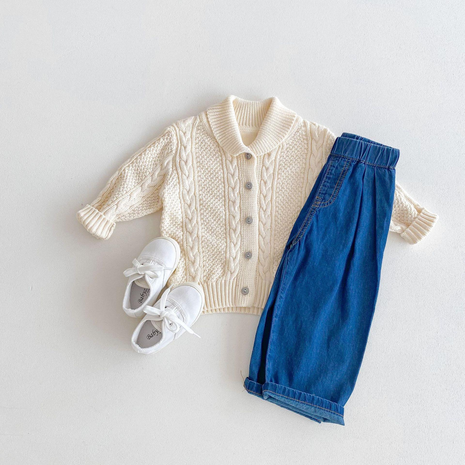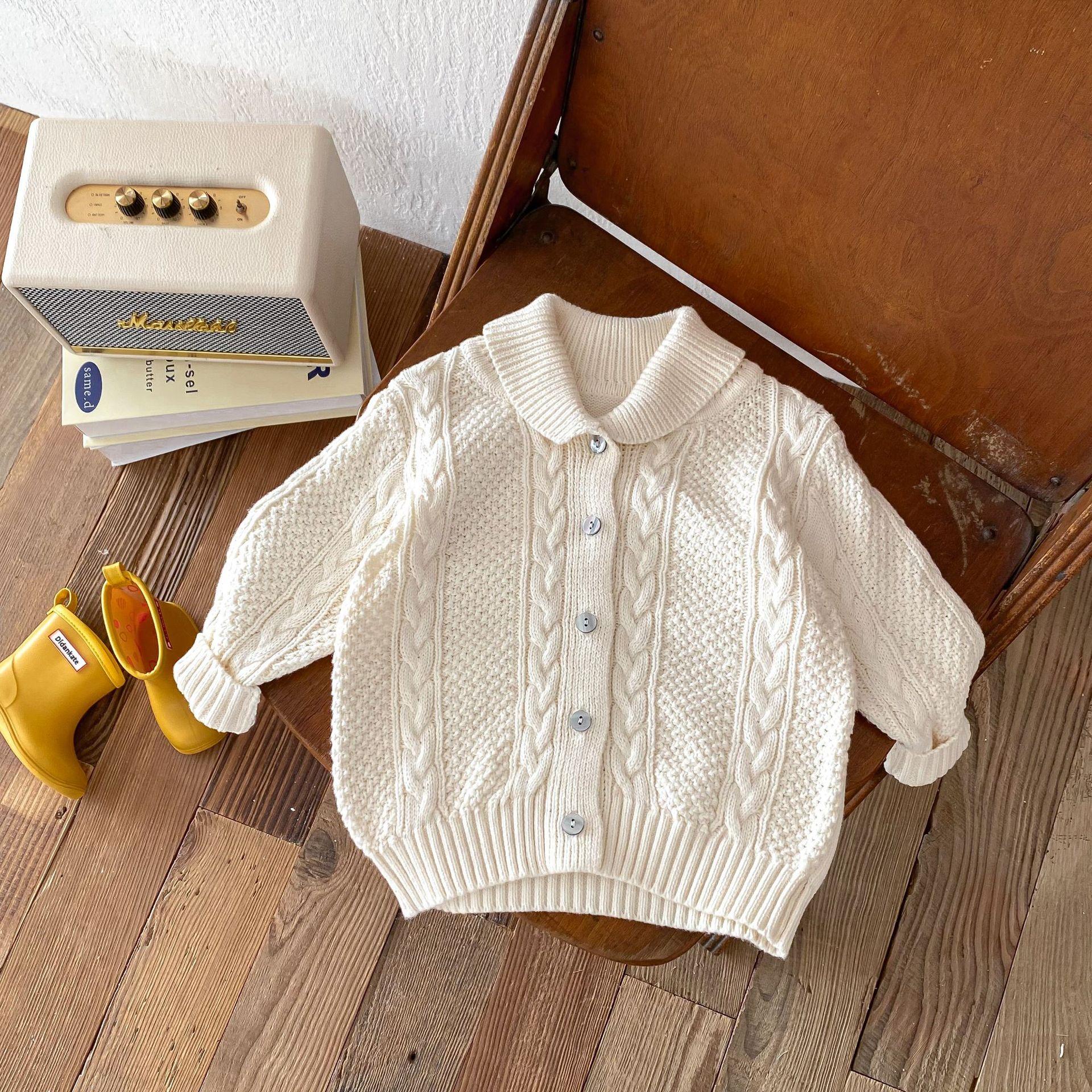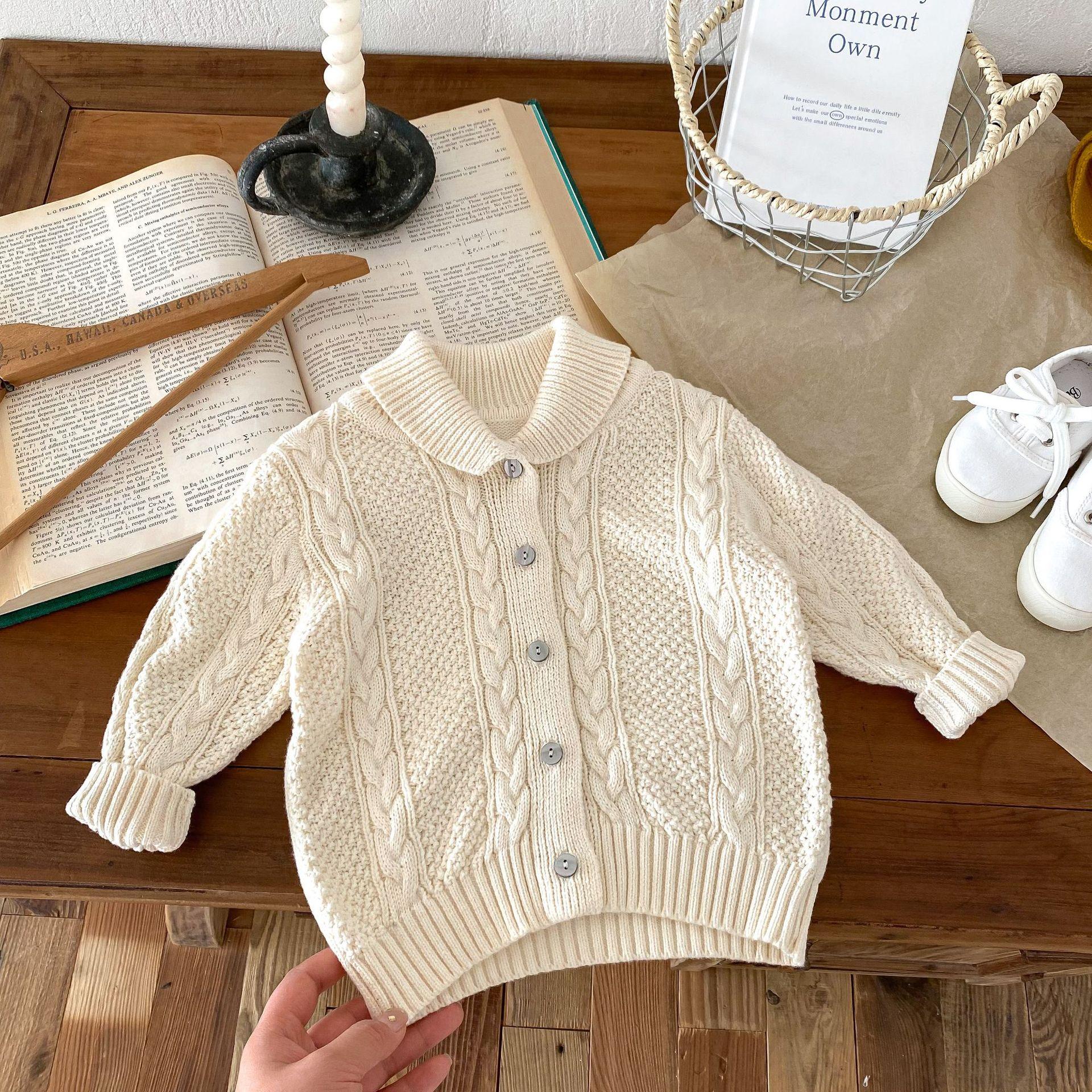 Otoño 2024 Nuevo Ropa Infantil Coreana para Niños Patrón de Cáñamo Lar Chaqueta Cárdigan Tejida Suéter para Hombre y Mujer