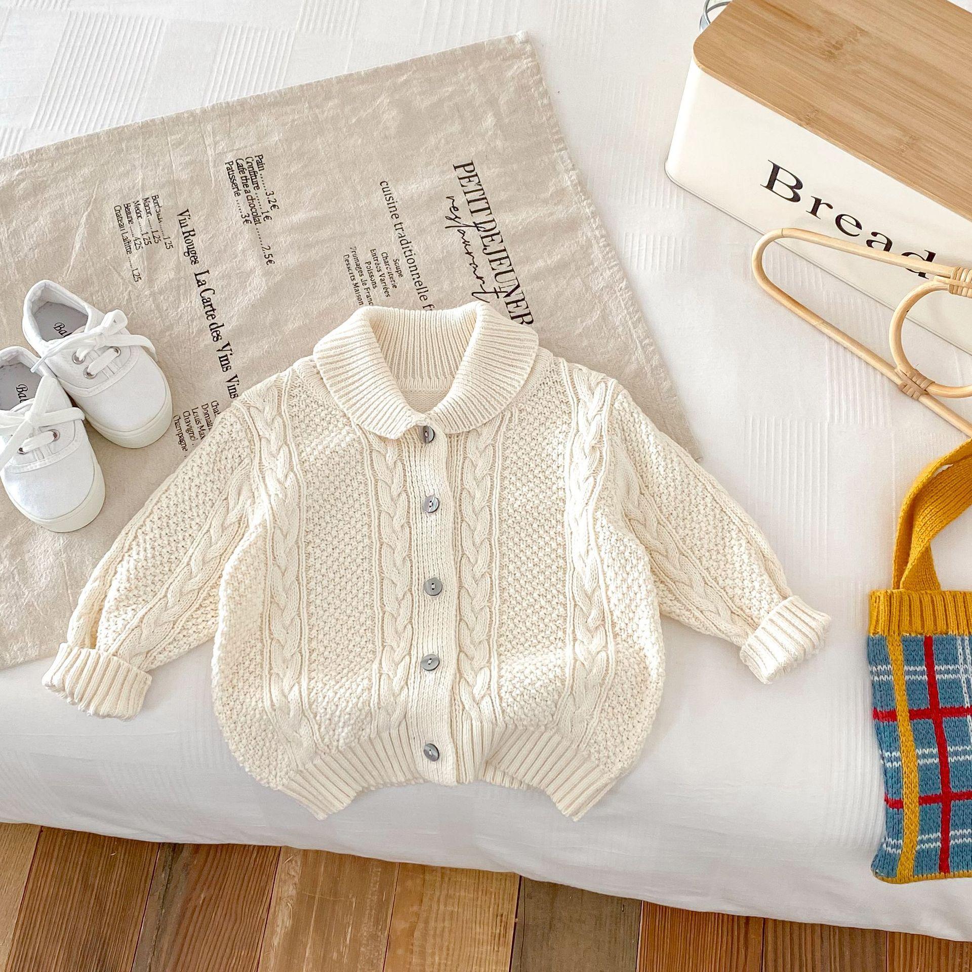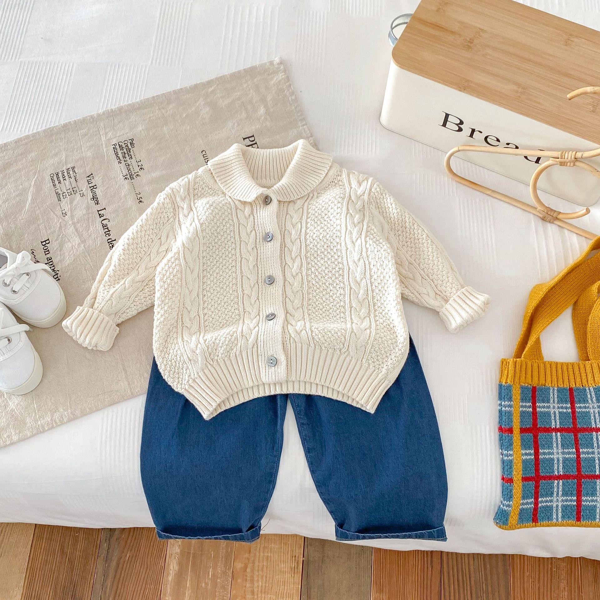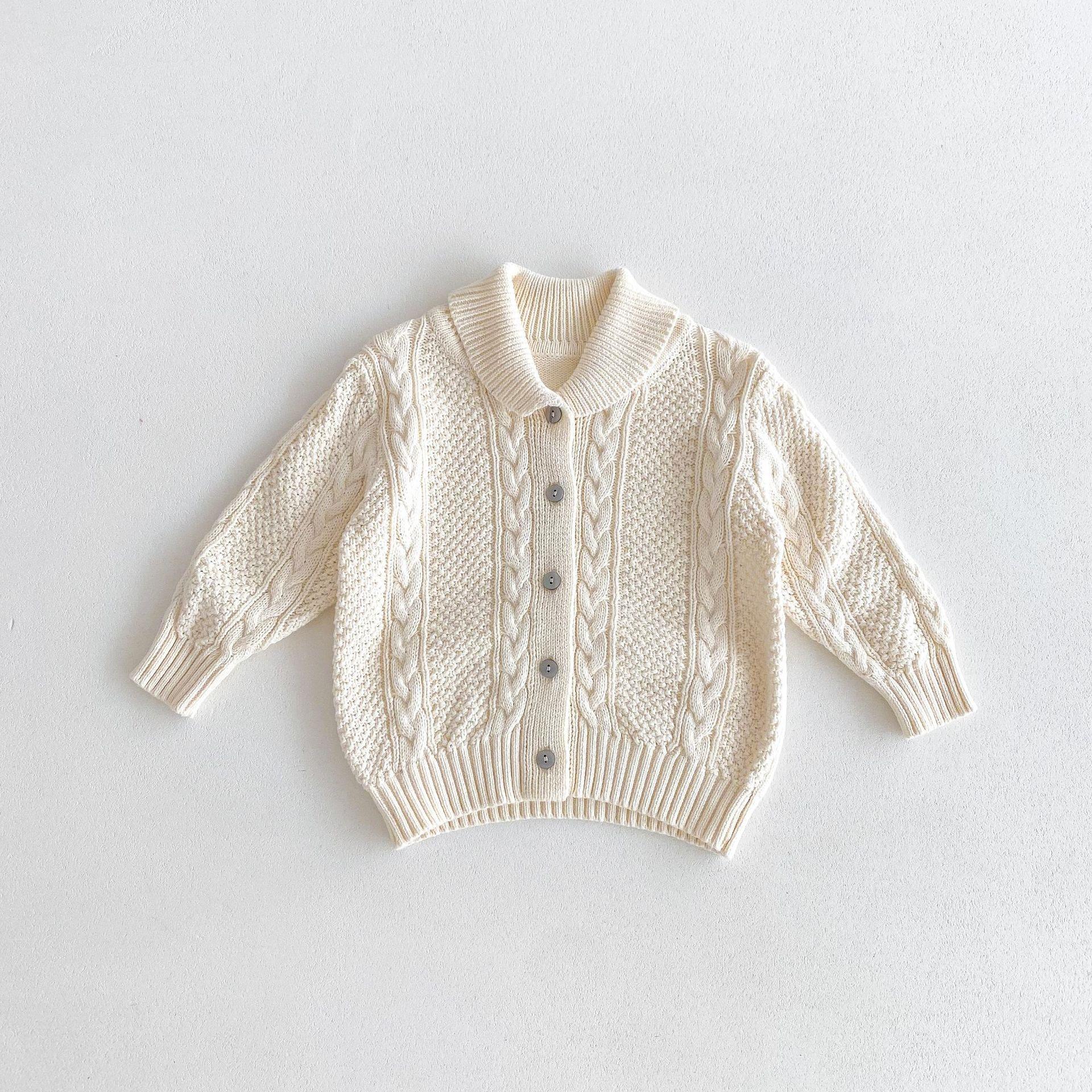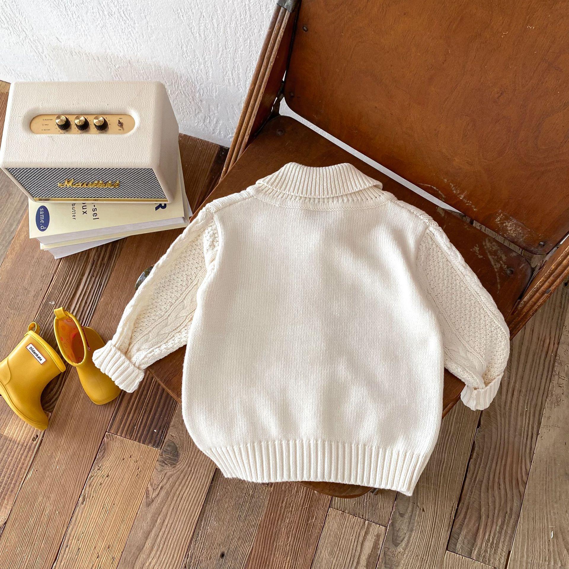 Otoño 2024 Nuevo Ropa Infantil Coreana para Niños Patrón de Cáñamo Lar Chaqueta Cárdigan Tejida Suéter para Hombre y Mujer
