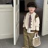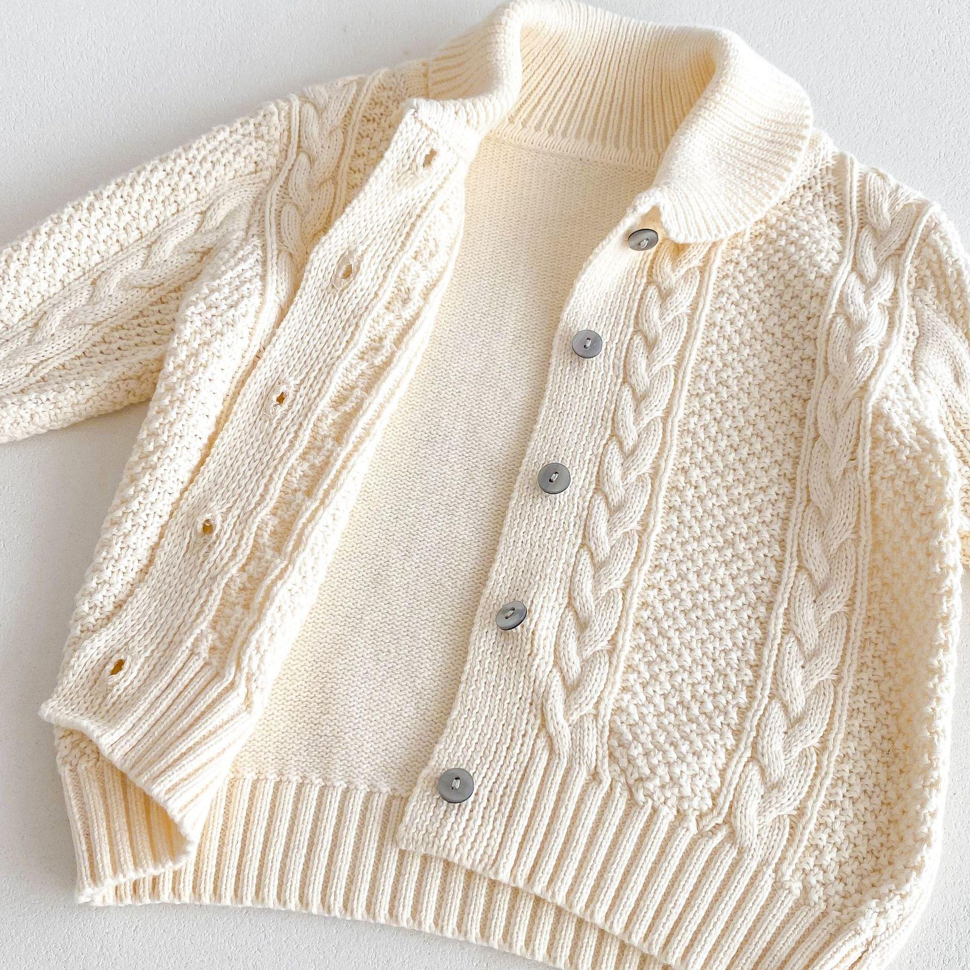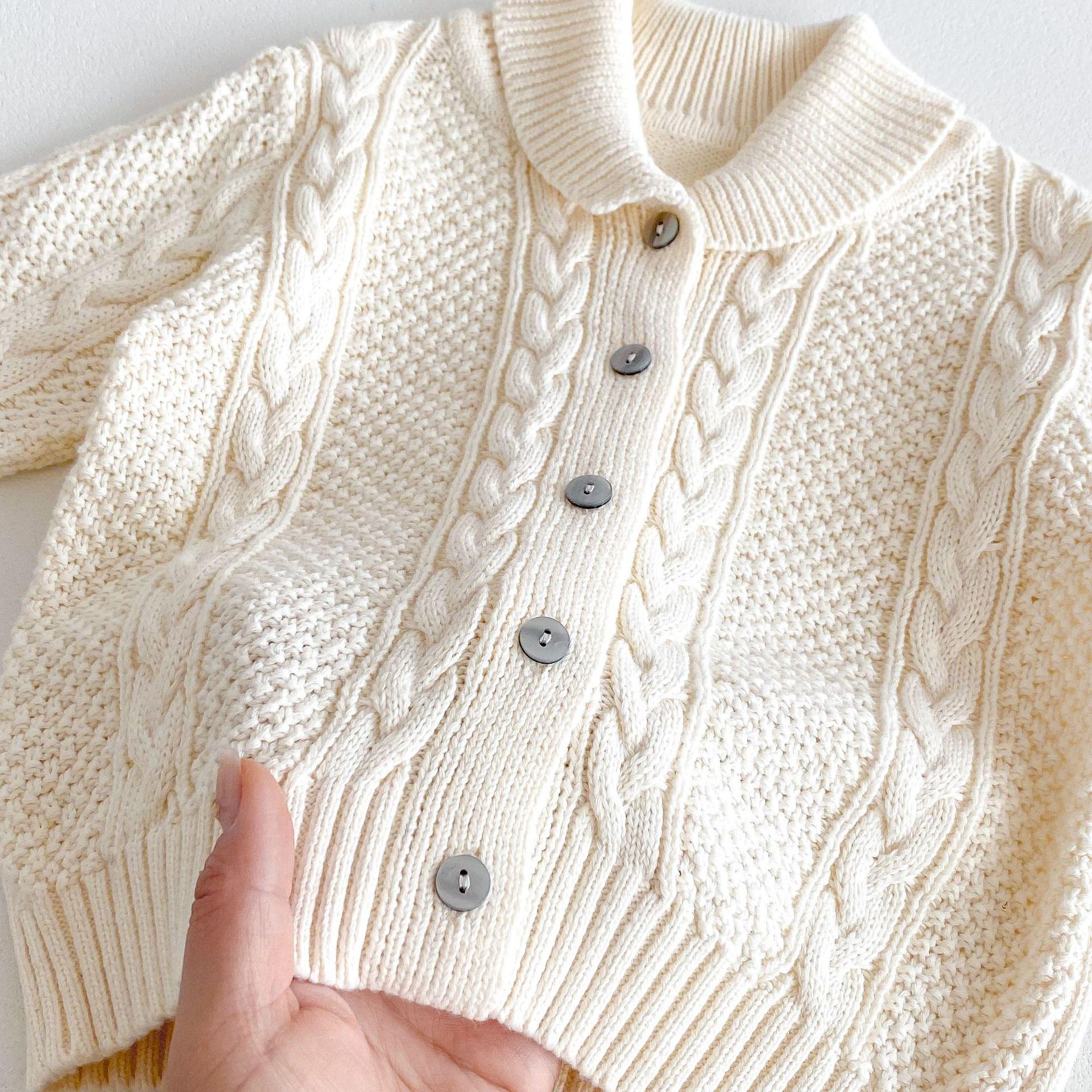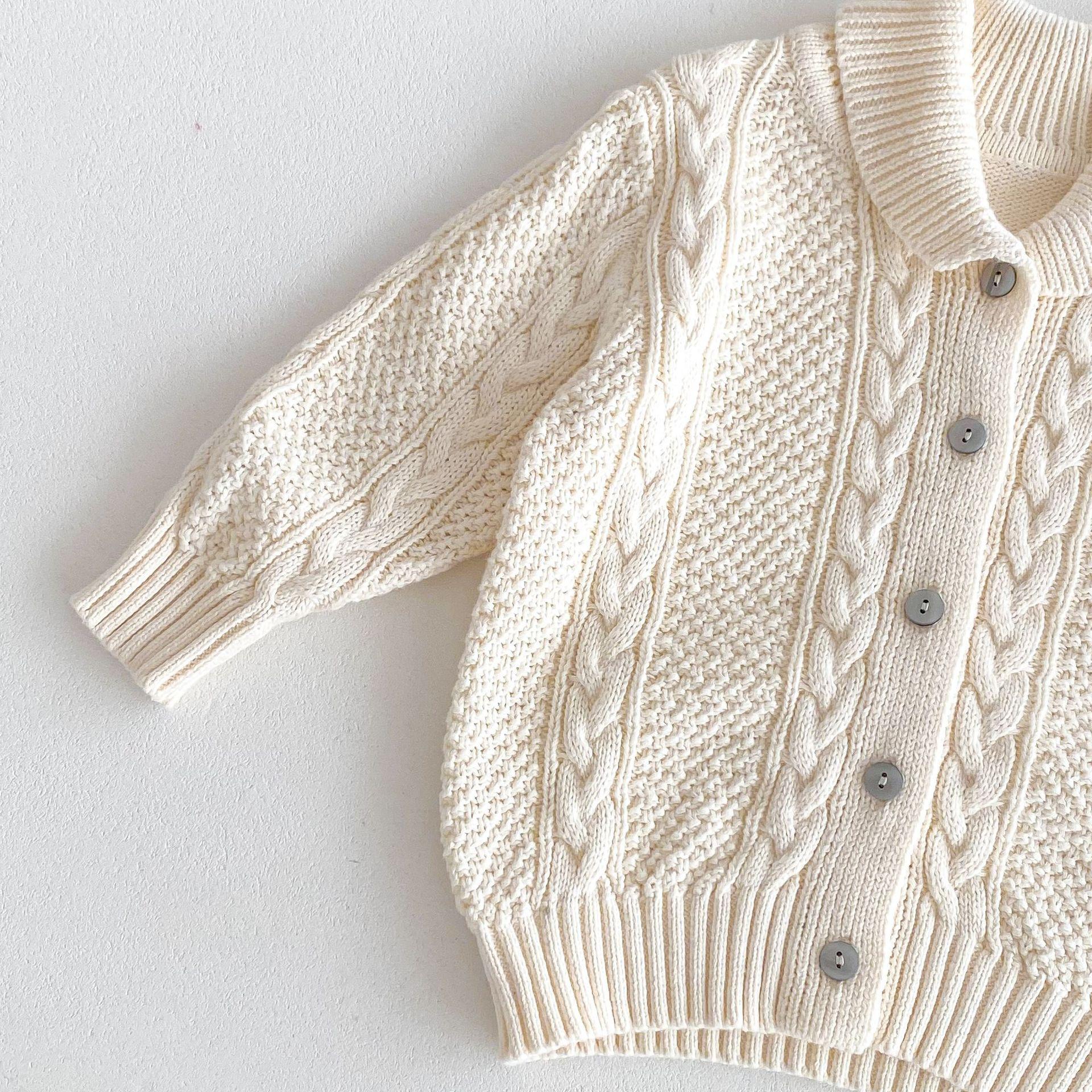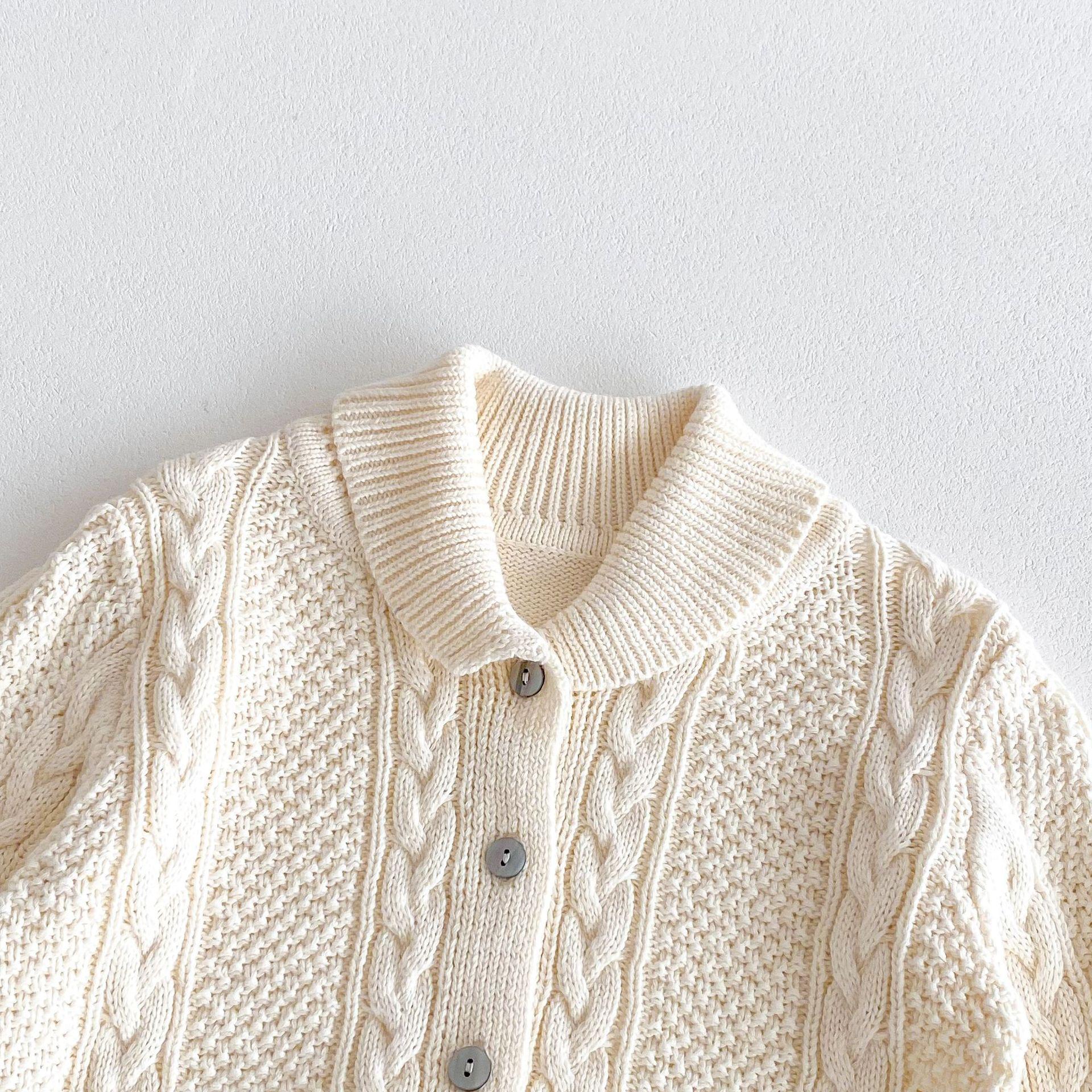 Otoño 2024 Nuevo Ropa Infantil Coreana para Niños Patrón de Cáñamo Lar Chaqueta Cárdigan Tejida Suéter para Hombre y Mujer