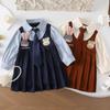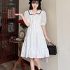 Vestido estilo universitario para niñas, estudiantes femeninas, estilo coreano, con cordones, falda de cintura alta, vestido de princesa de manga corta que combina con todo, nuevo de verano