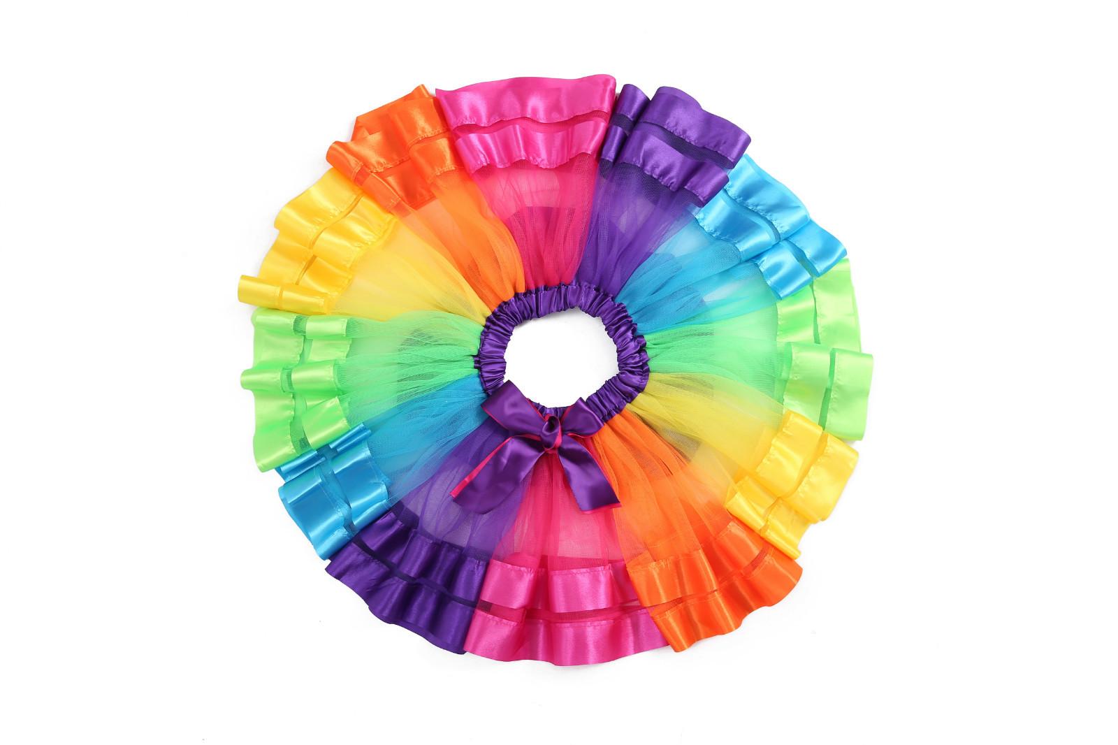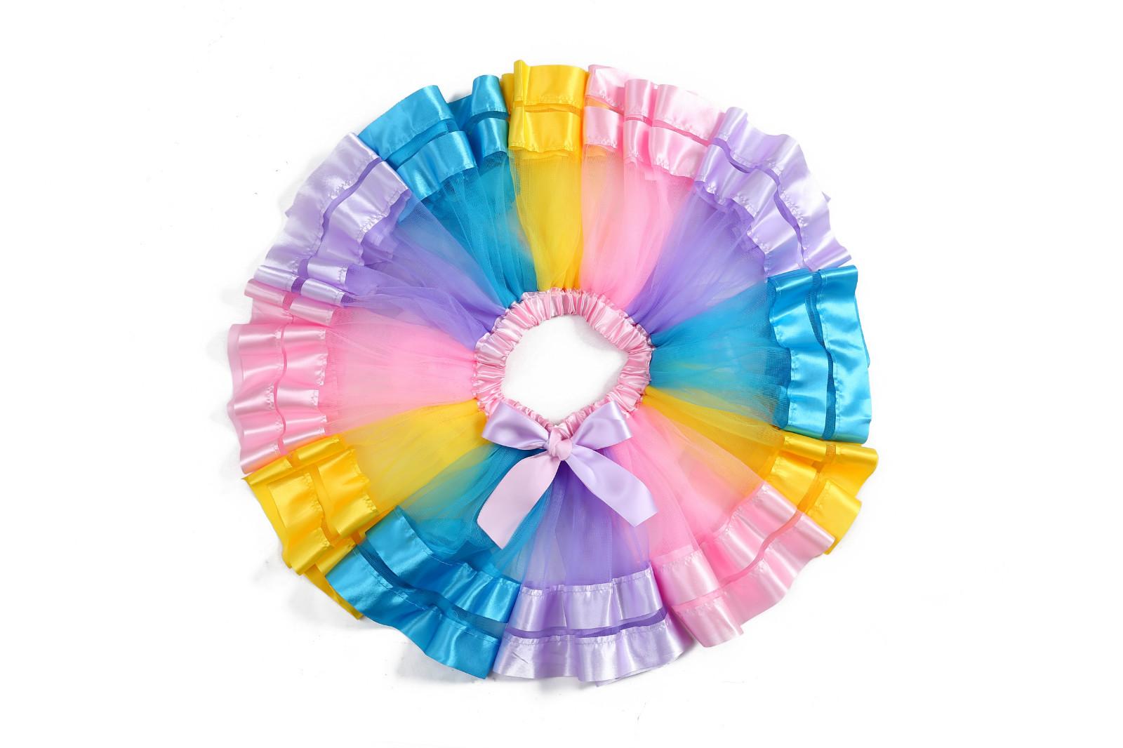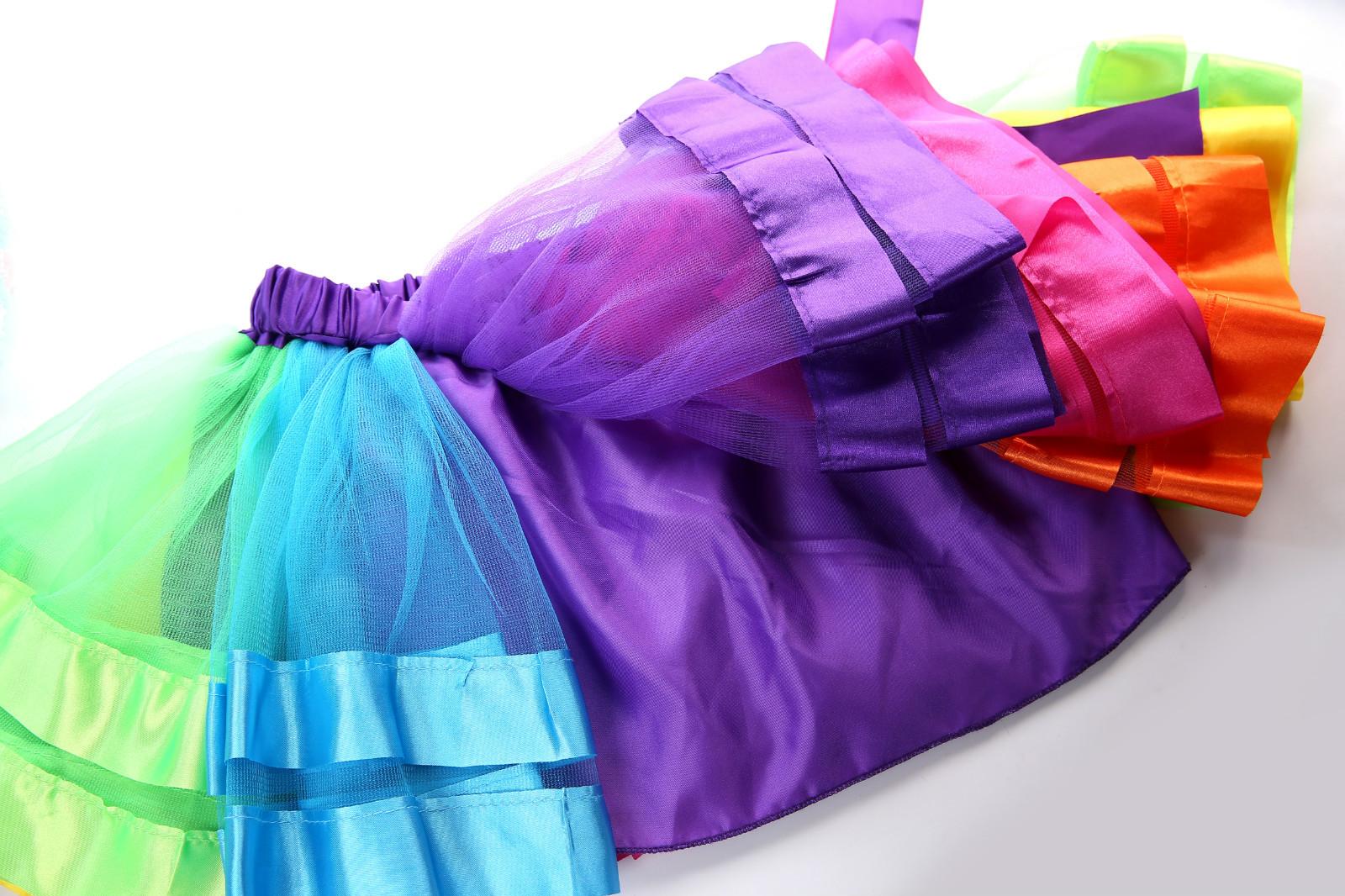 Falda Infantil Colorida de Venta Caliente Transfronteriza Falda de Princesa Forrada Falda de Malla Arcoíris Ins Mujer
