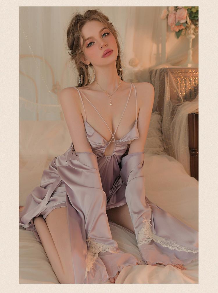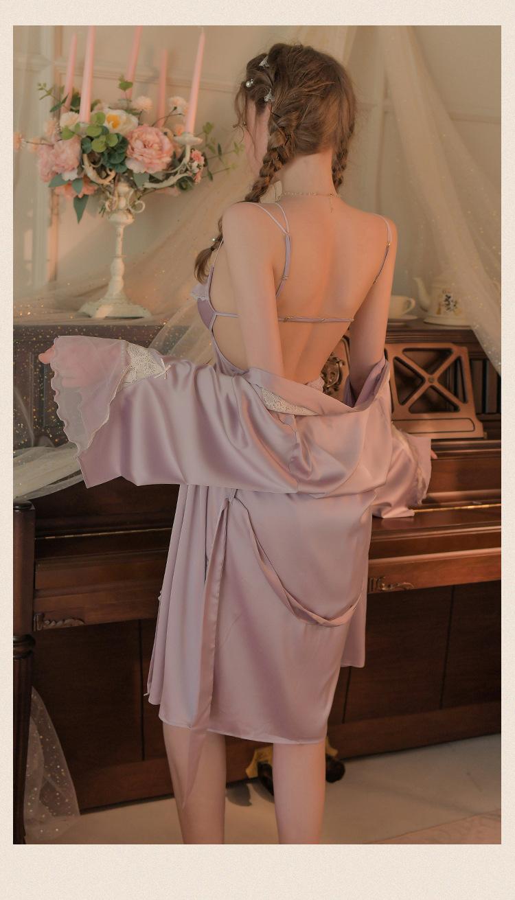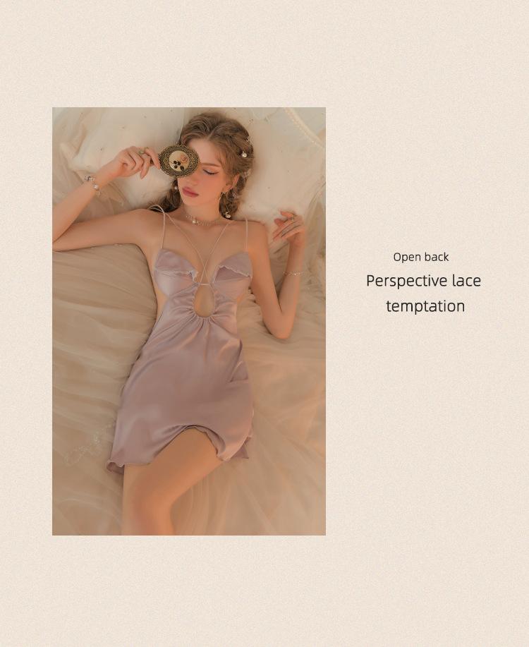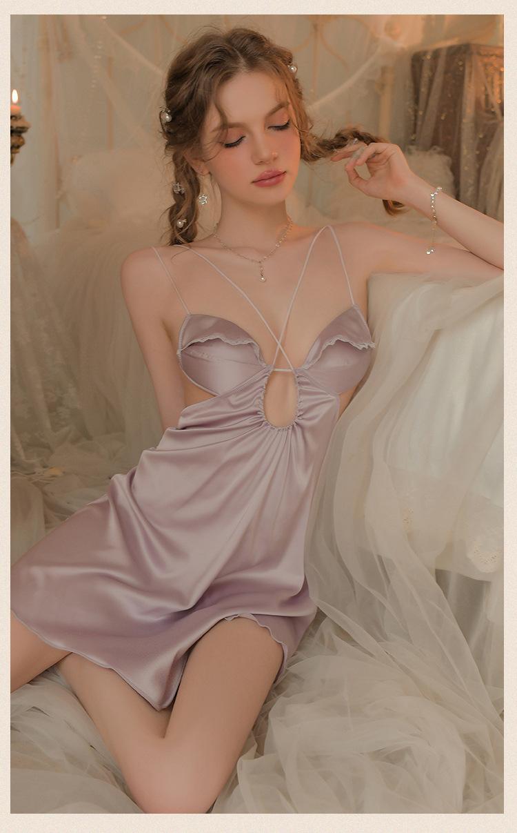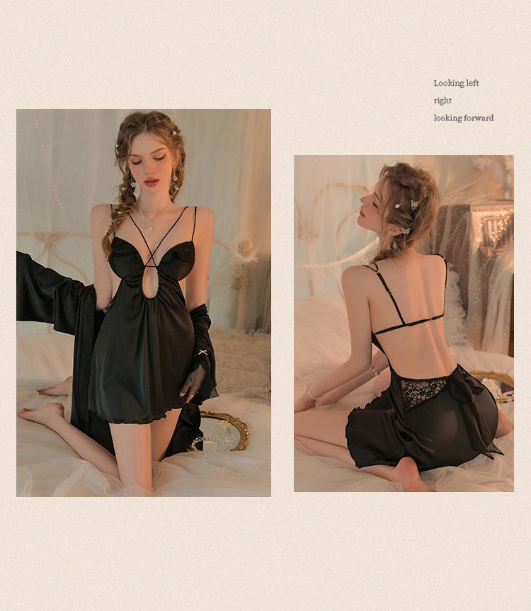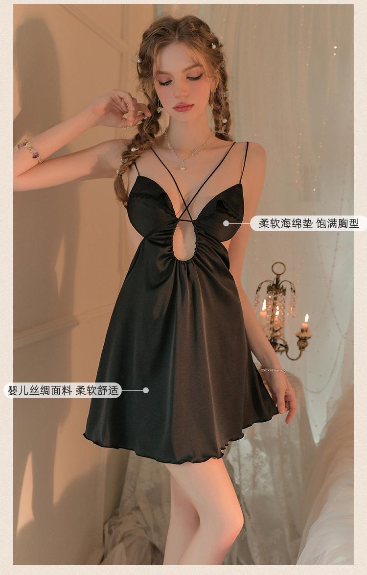 Sexy Black (with chest pad) one-piece nightdress, Hibiscus purple (with chest pad) one-piece nightdress
