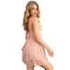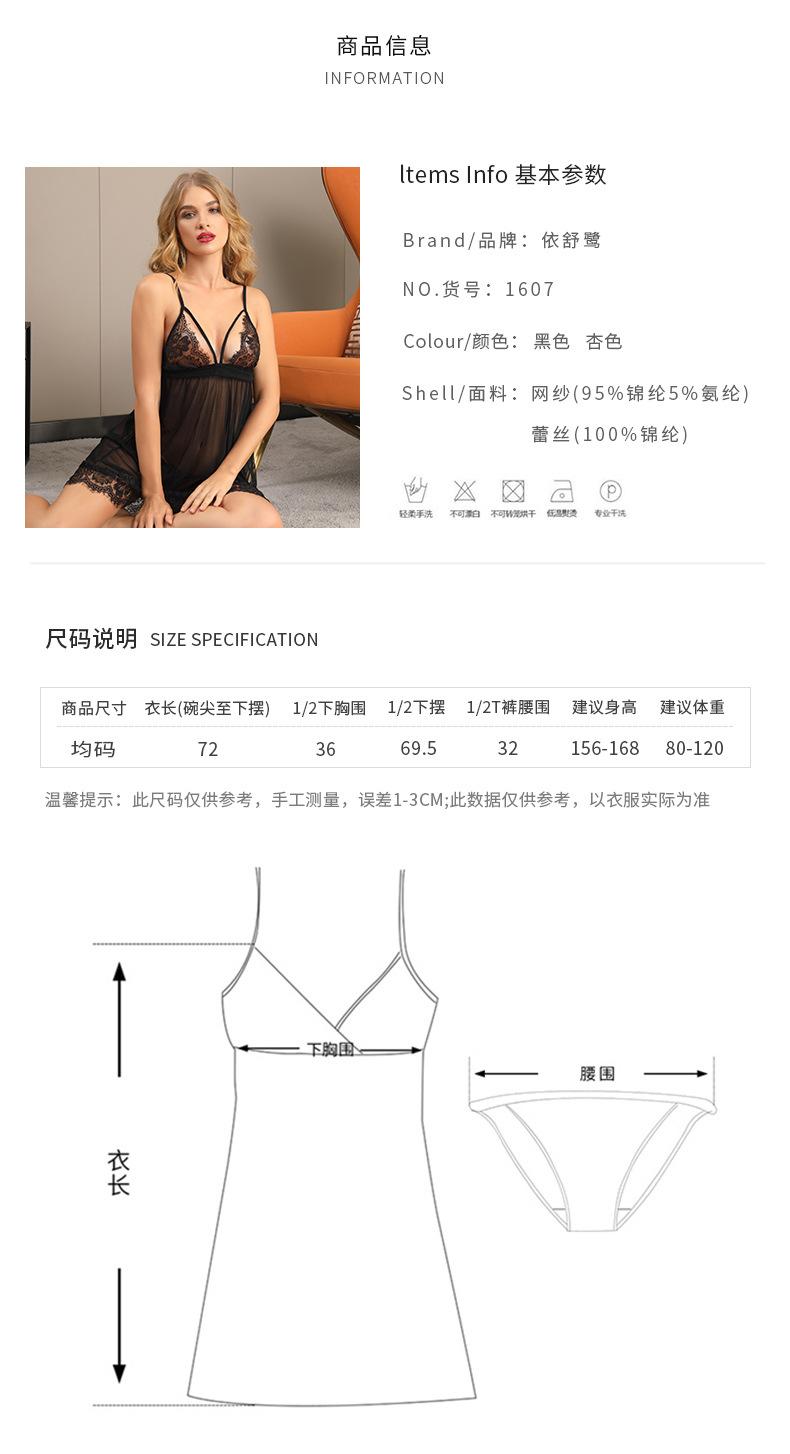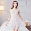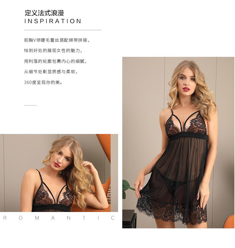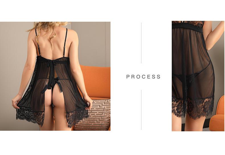 Hermoso Encaje en la Espalda con Cordones Malla de Perspectiva Dividida Sexy Pijama Camisón de Encaje con Tirantes Espagueti Tentación de Escote en V Profundo Ropa Interior Sexy para Mujer