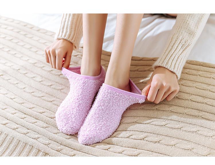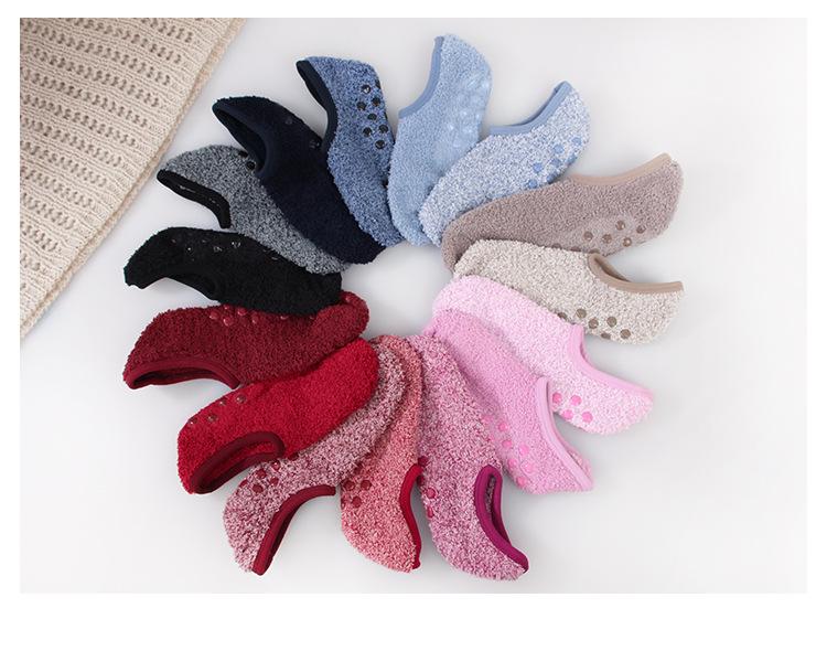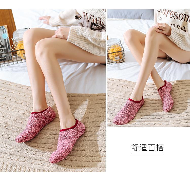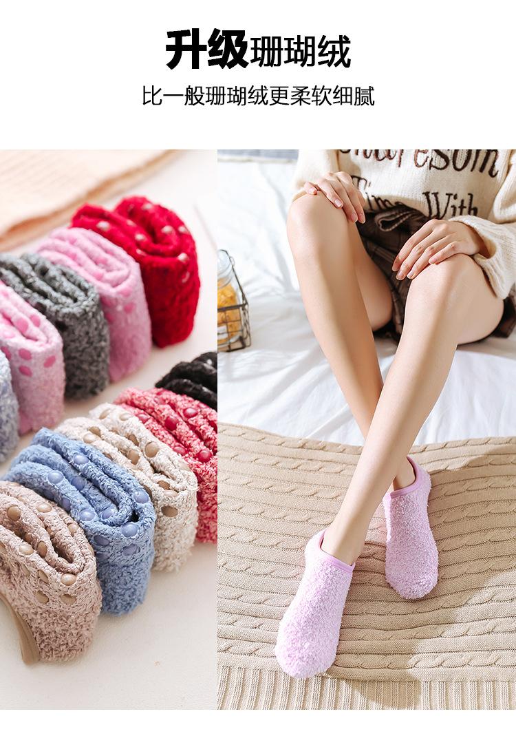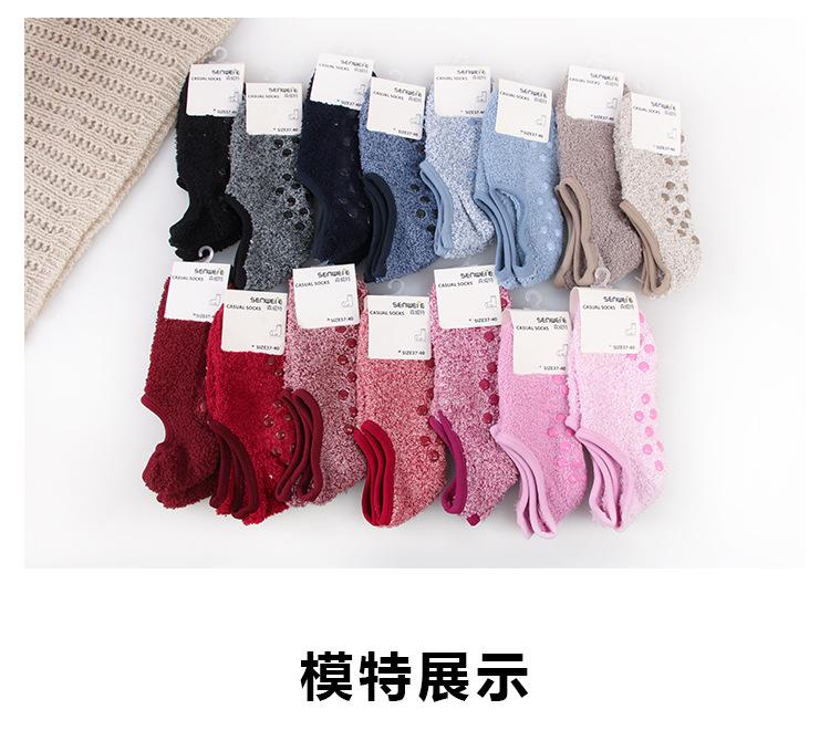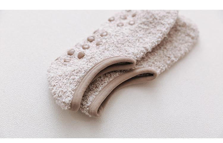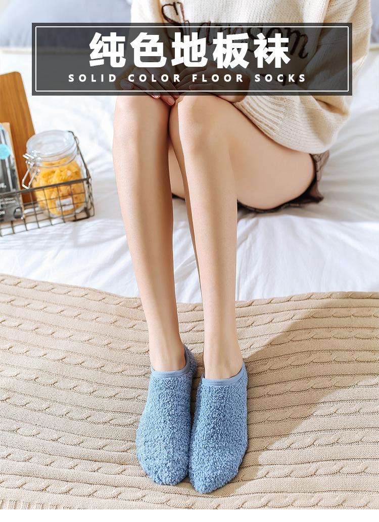 Calcetines de otoño e invierno de color liso con dispensador de suelo, estilo japonés, cálidos calcetines de forro polar coral para dormir, calcetines de toalla gruesa para adultos.