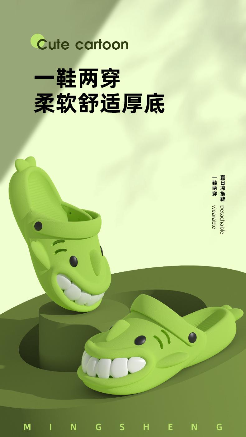 Feo Lindo Tiburón 2024 Nuevo Verano Sandalias y Pantuflas Divertidas para Mujer Sentido Dung Fondo Grueso Hogar Personalidad Dibujos Animados Ropa de Calle