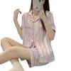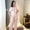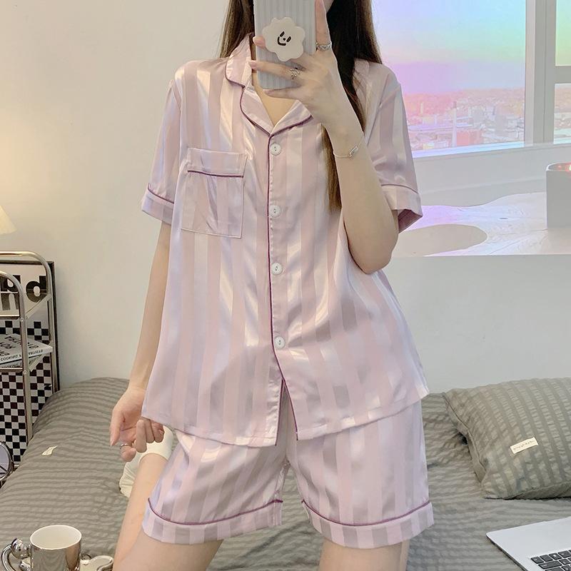 Pijamas de seda helada para mujer, ropa de dormir de dos piezas, de verano, de manga corta, fina, de imitación de seda, para el hogar, venta al por mayor, 2023