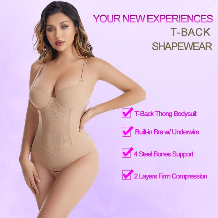 Base de Vestido de Novia Sexy Tirante Espalda en T Sujetador con Cinturón Sin Costuras Ropa Moldeadora para el Cuerpo Mono en Forma de T