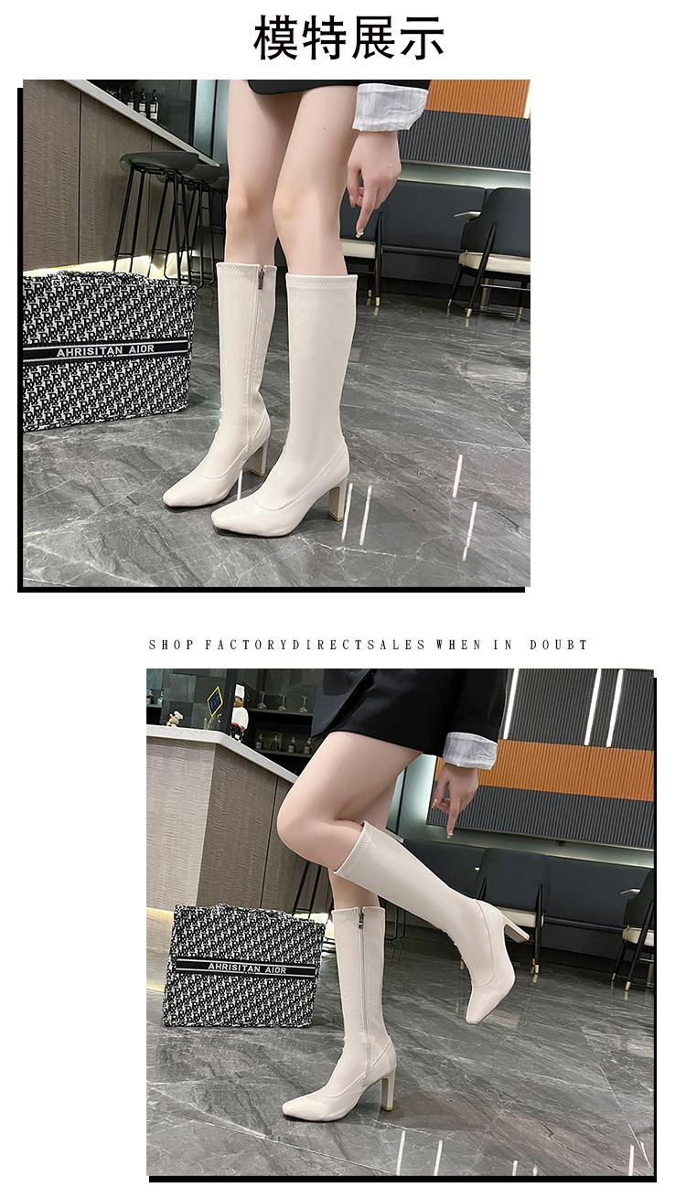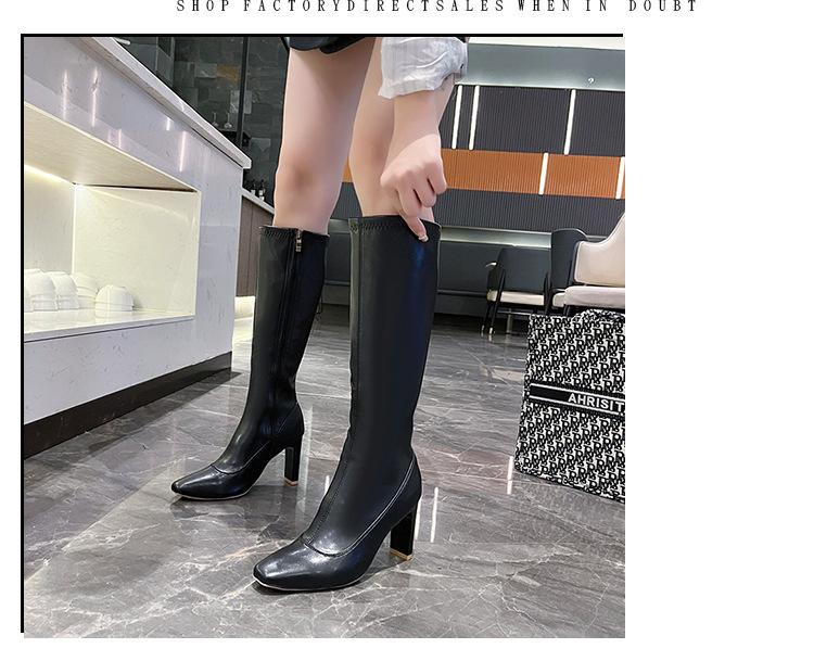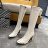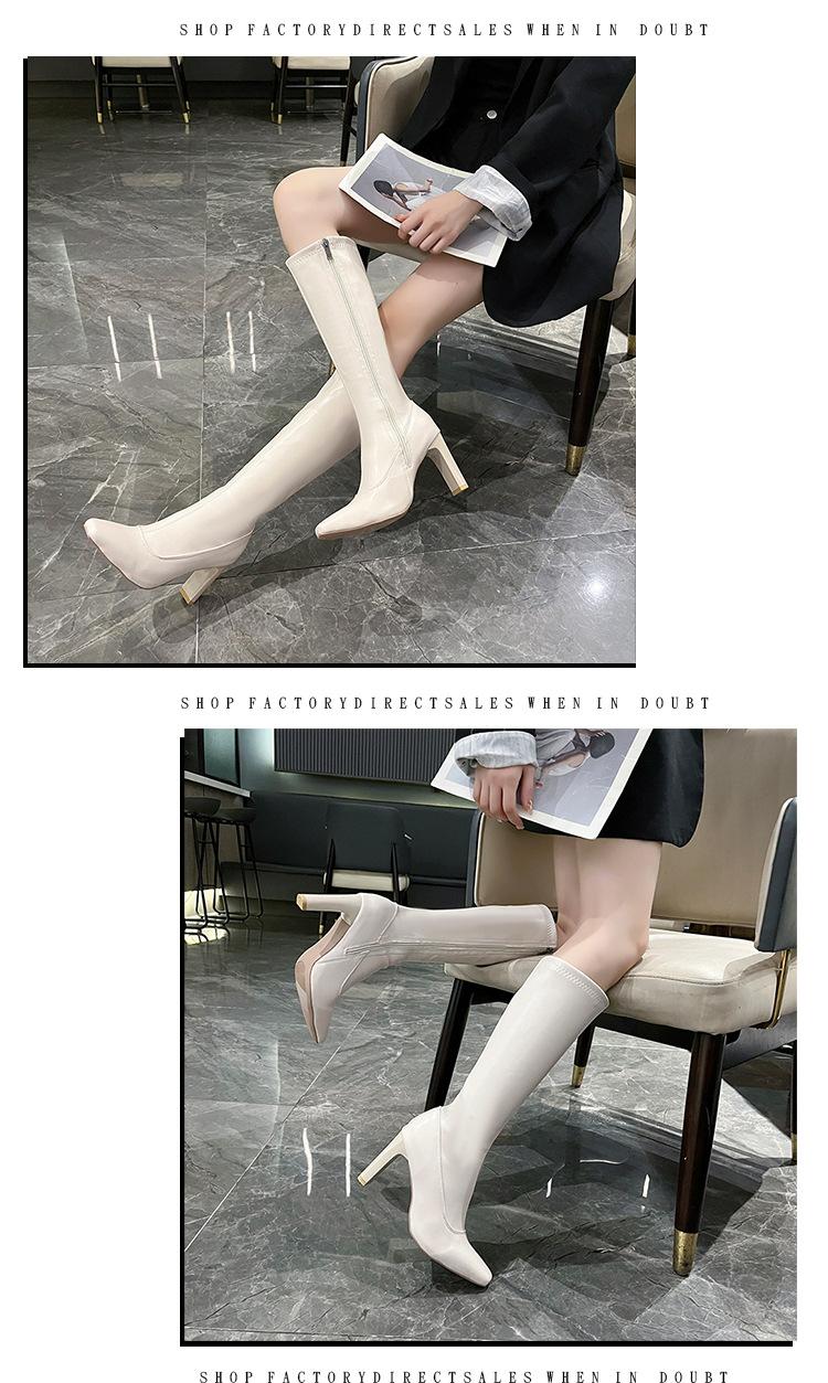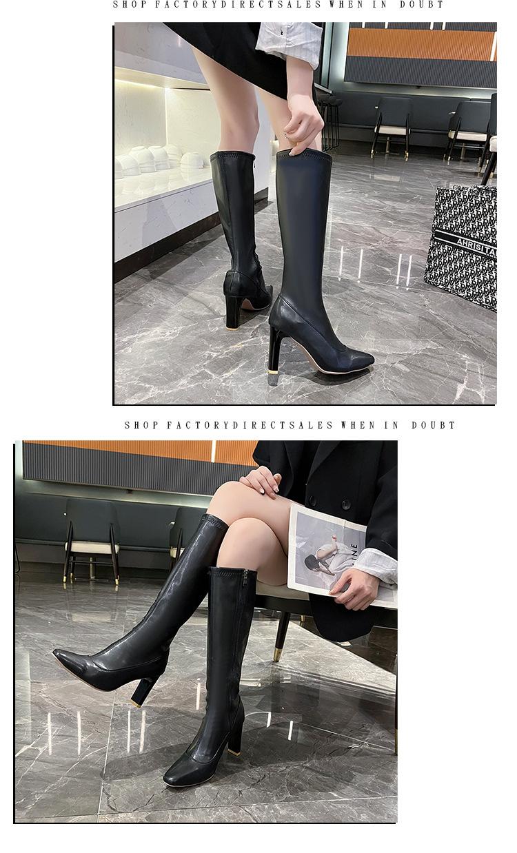 Botas largas hasta la rodilla para mujer 2024 Invierno Nueva Moda Slip-On Tacón Alto Adelgazantes Botas de Tacón Alto