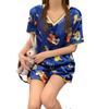 Pijama de verano para mujer, de manga corta, de seda helada, fino, sexy, con cuello en V, ropa de casa de seda para verano