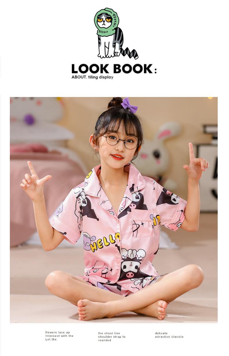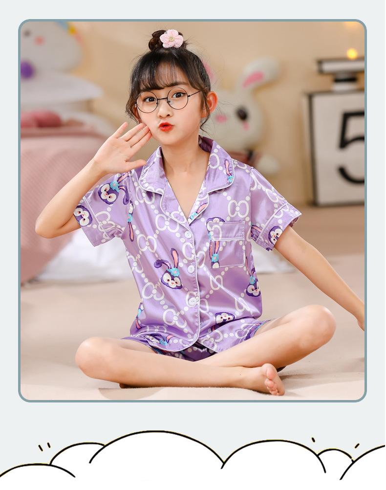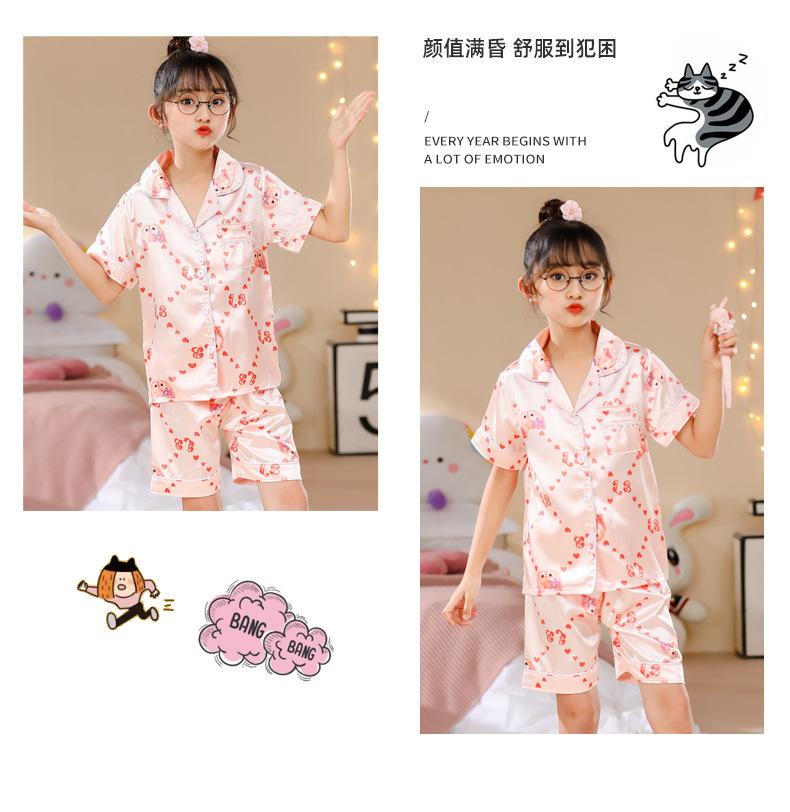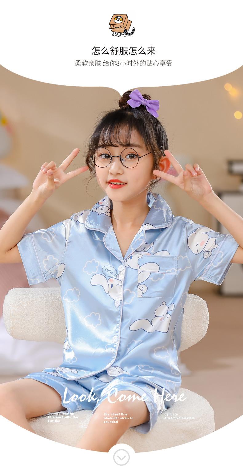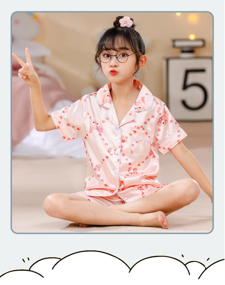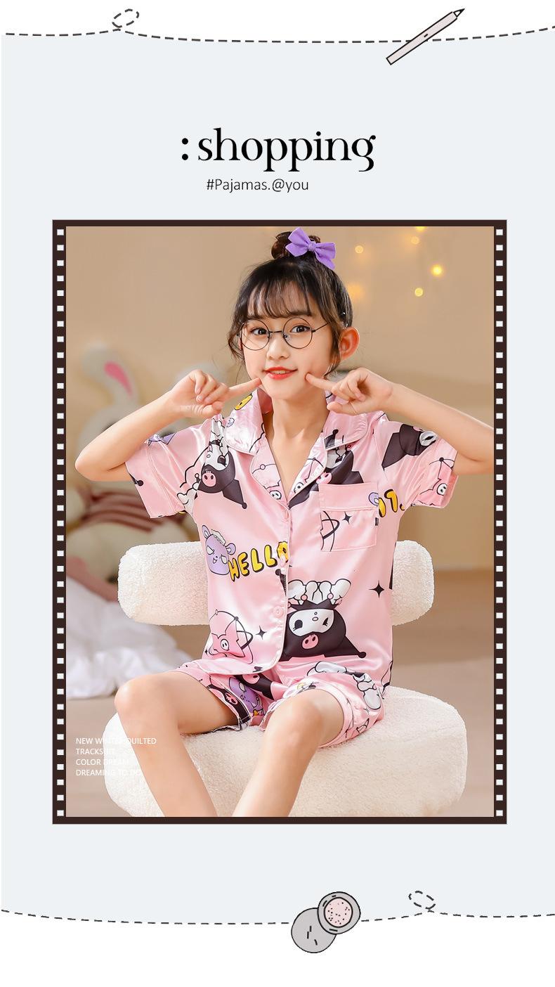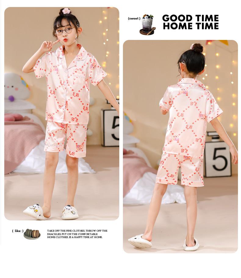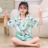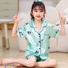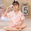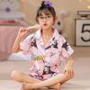 Pijamas para niños Cárdigan de seda de hielo para mujer Solapa Cárdigan de manga corta Dulce Lindo Dibujos animados Ropa para el hogar para niños y niñas pequeños y medianos