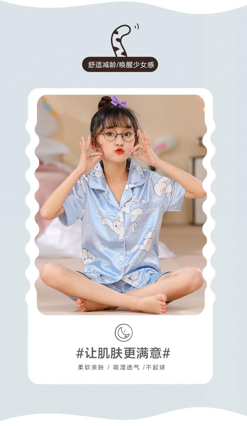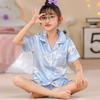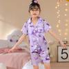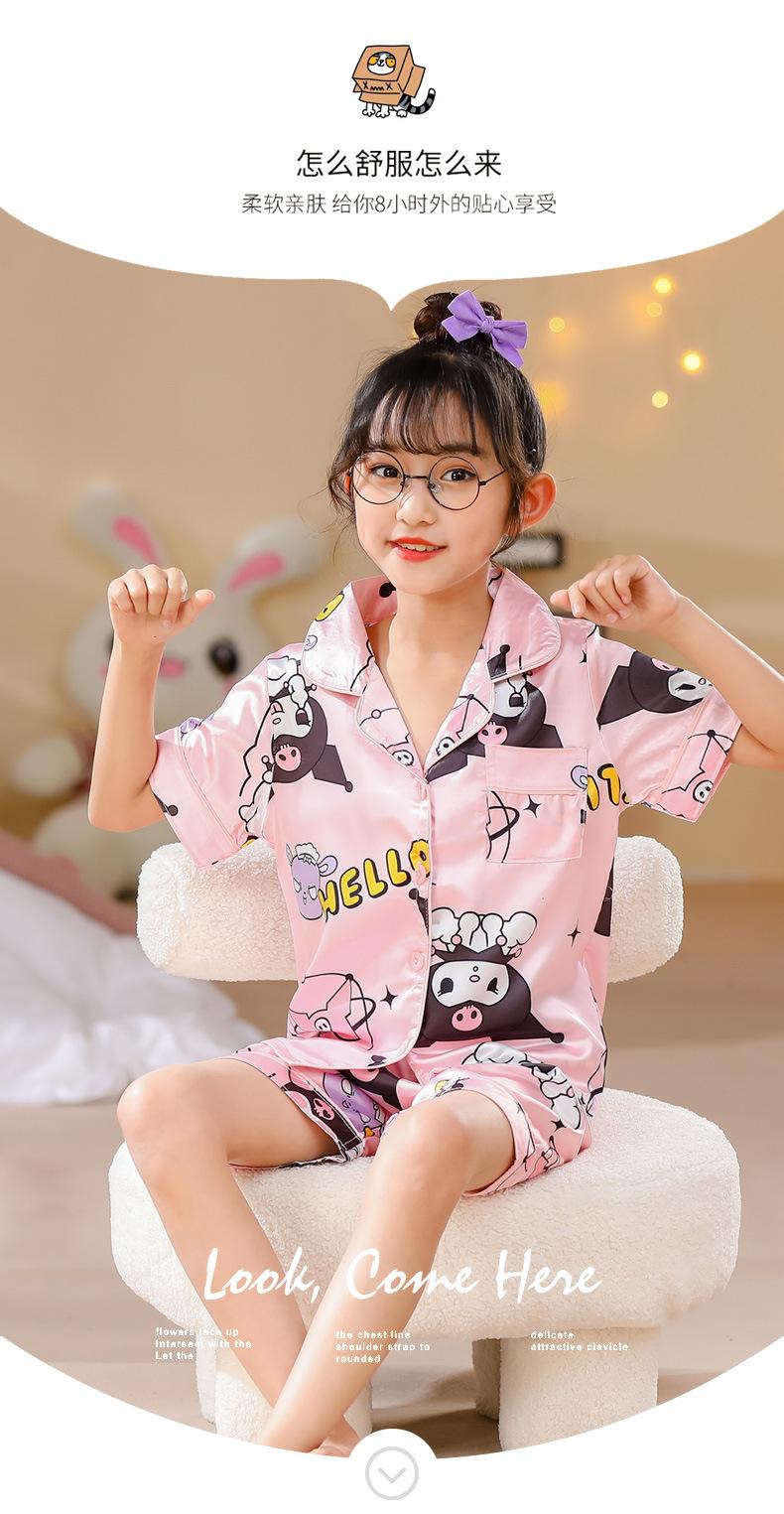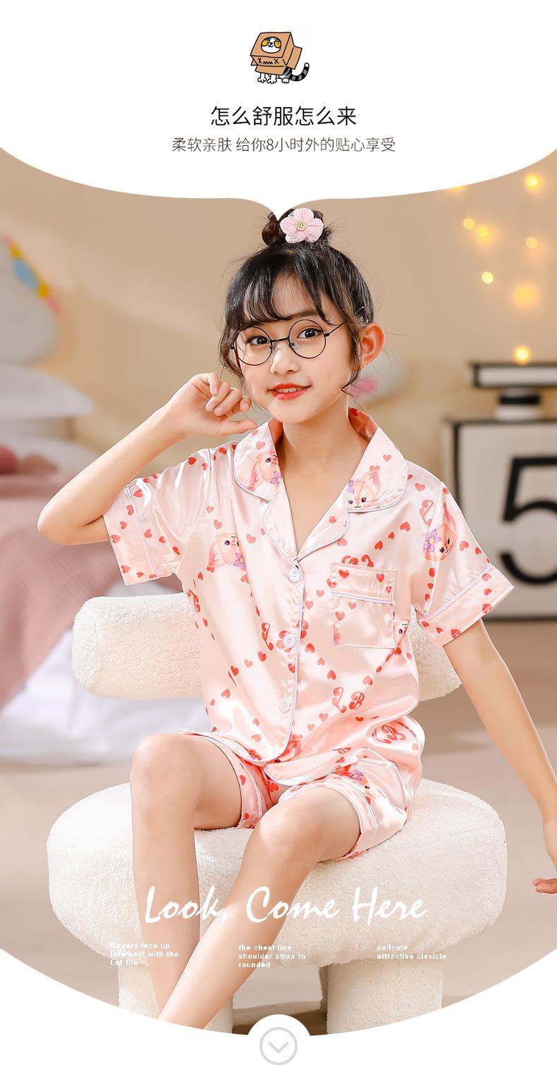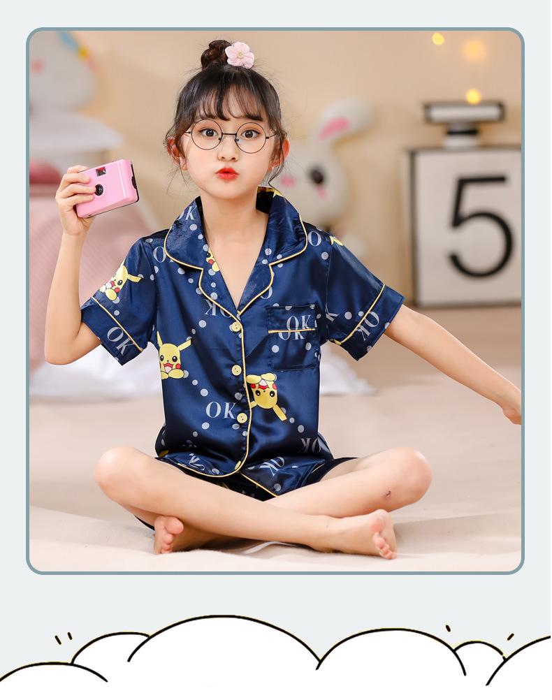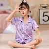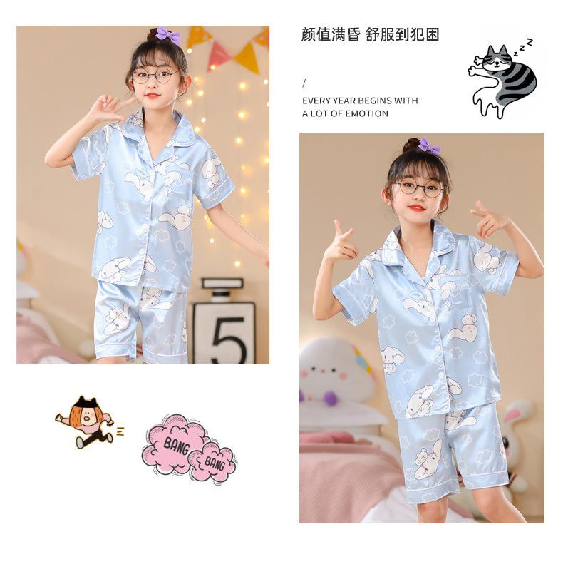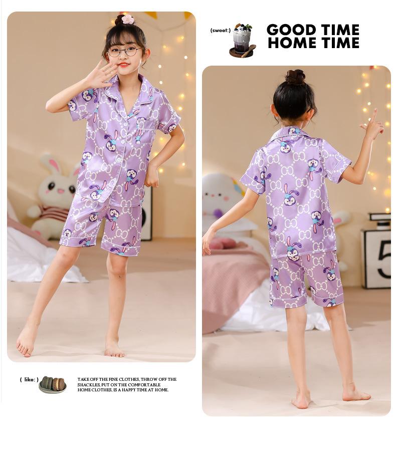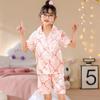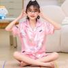 Pijamas para niños Cárdigan de seda de hielo para mujer Solapa Cárdigan de manga corta Dulce Lindo Dibujos animados Ropa para el hogar para niños y niñas pequeños y medianos