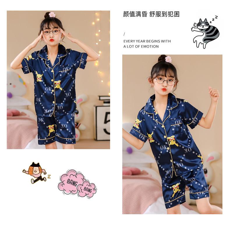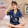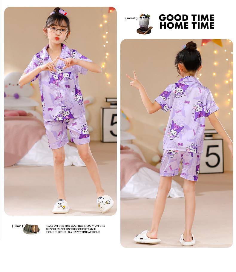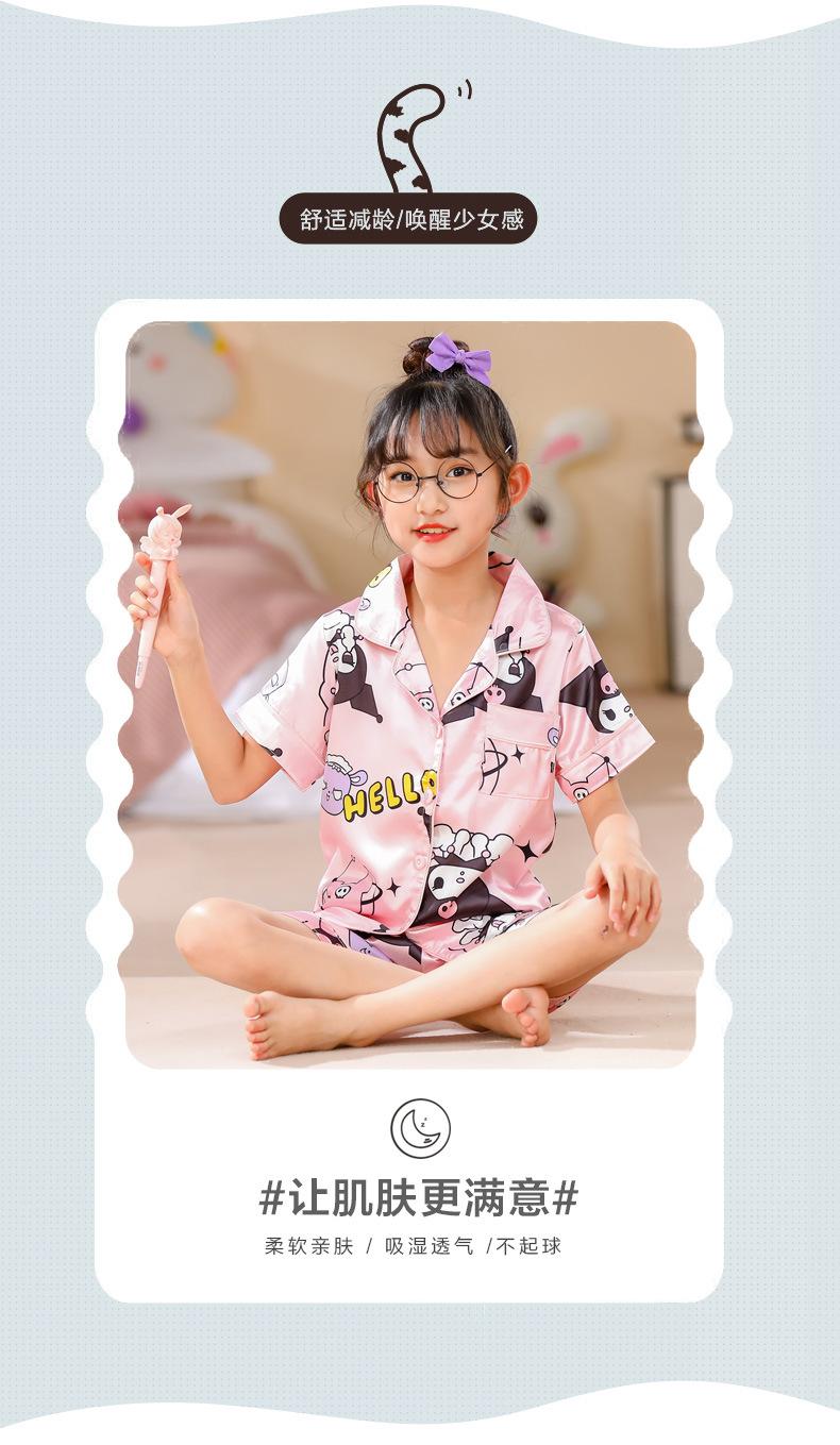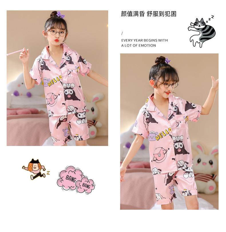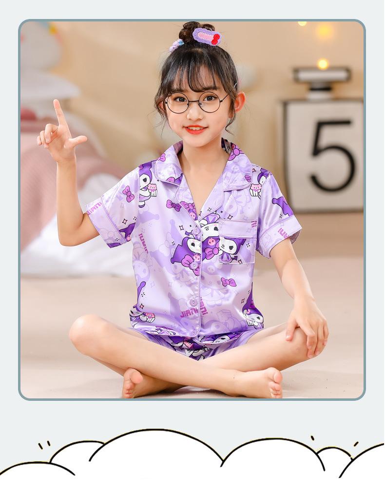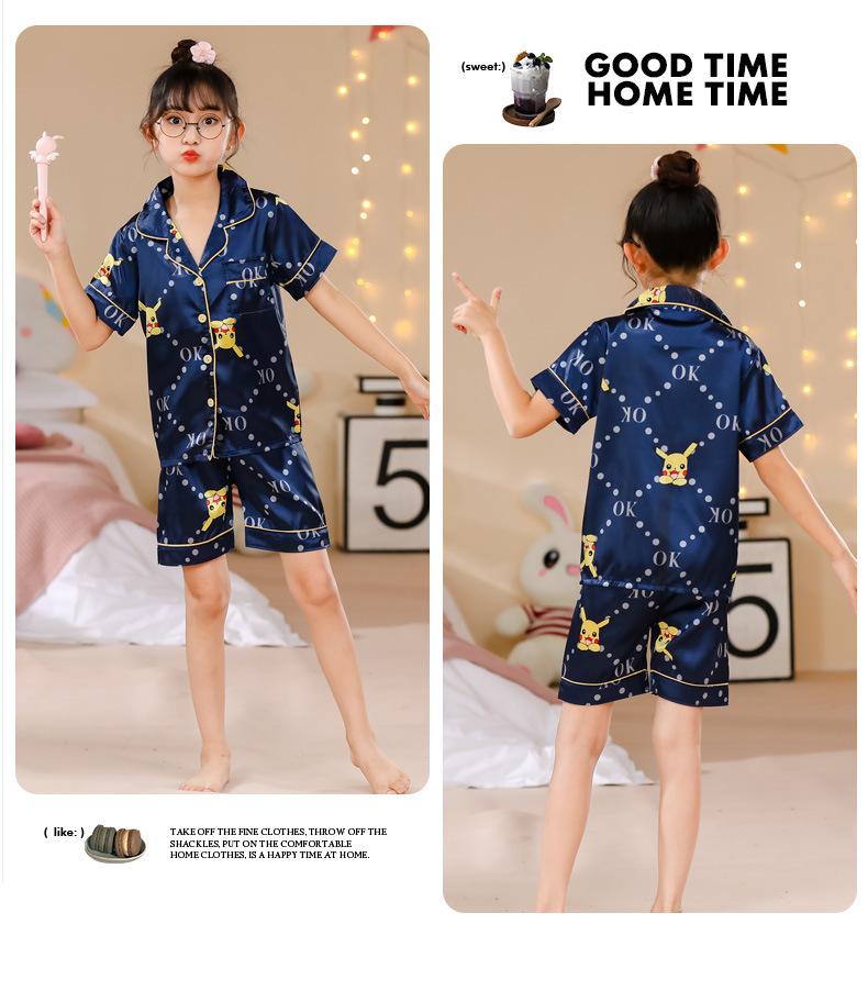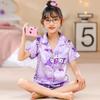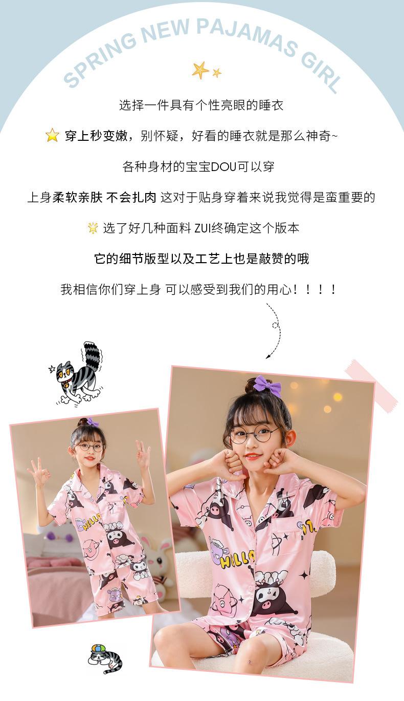 Pijamas para niños Cárdigan de seda de hielo para mujer Solapa Cárdigan de manga corta Dulce Lindo Dibujos animados Ropa para el hogar para niños y niñas pequeños y medianos