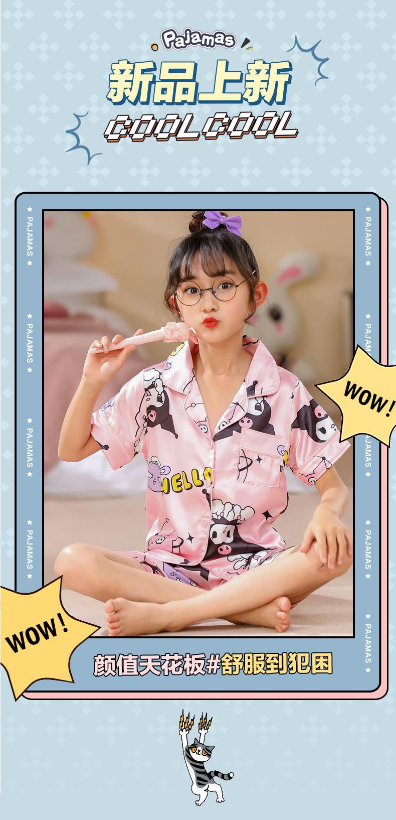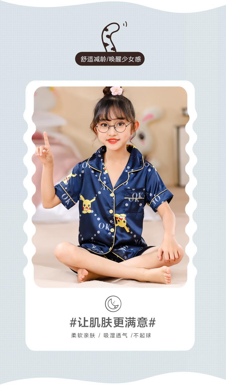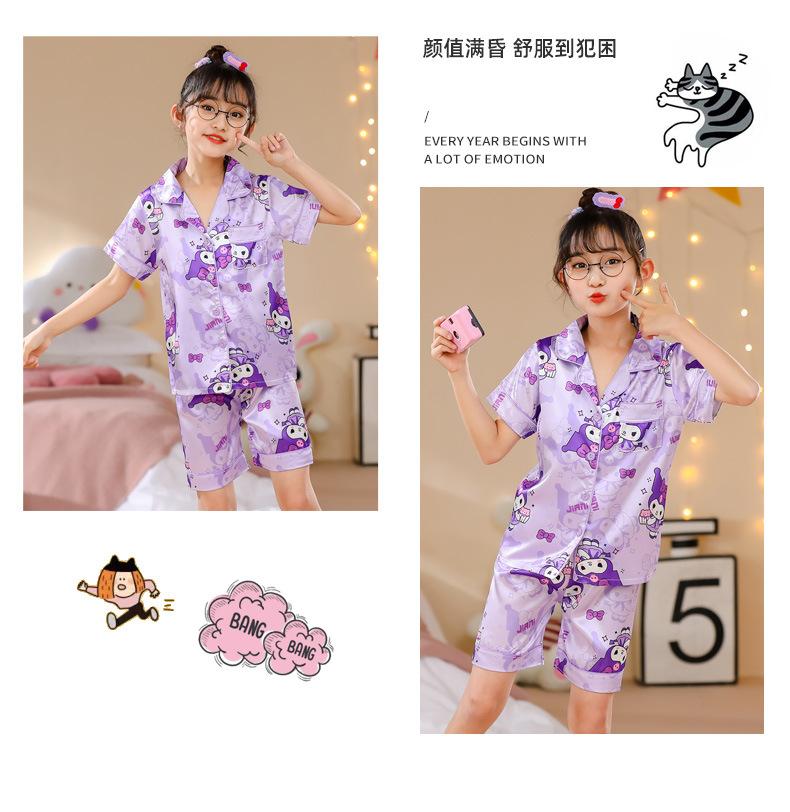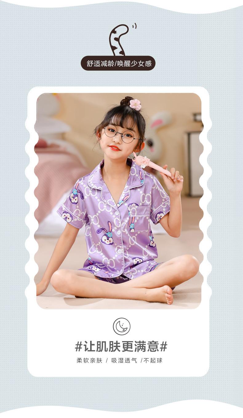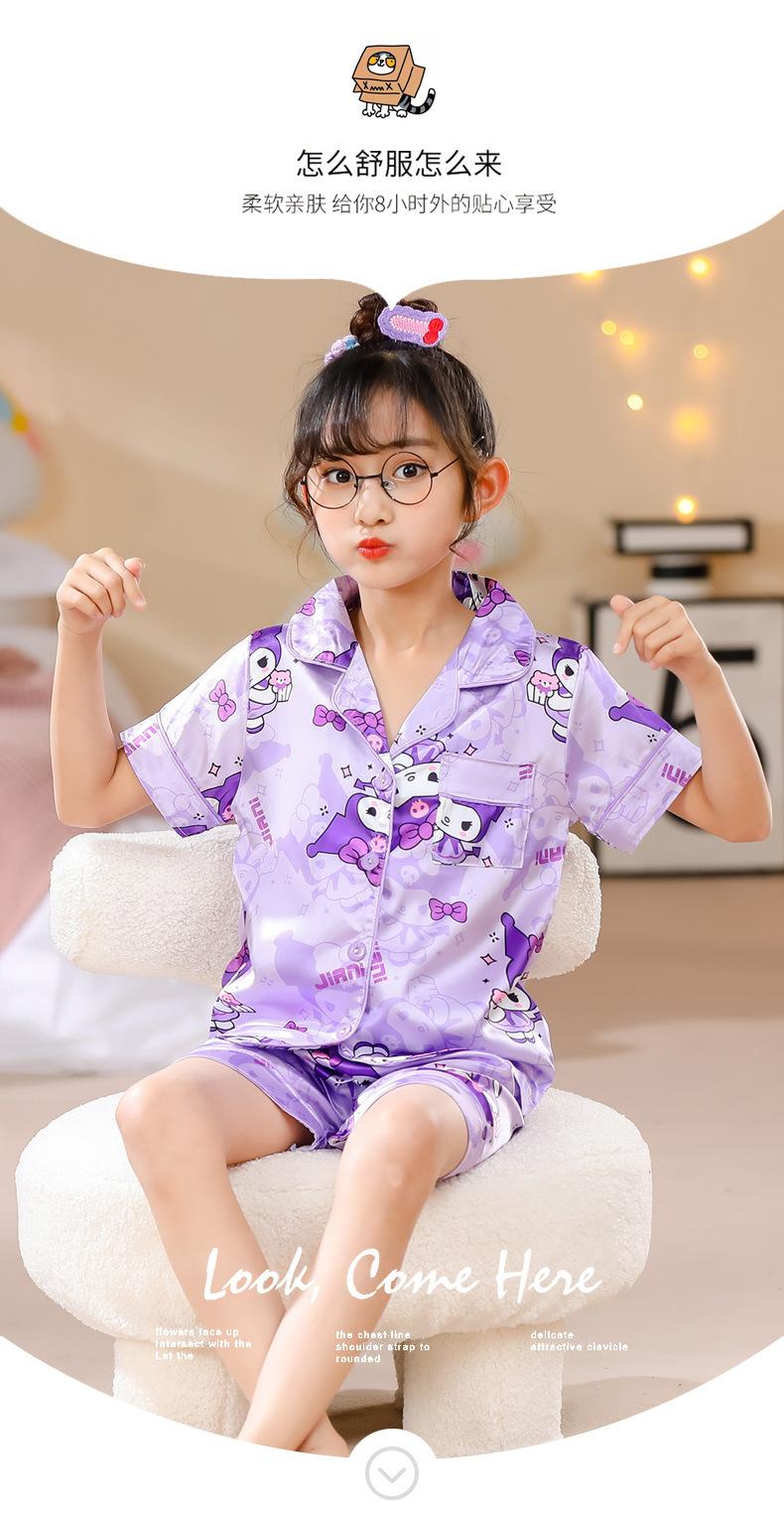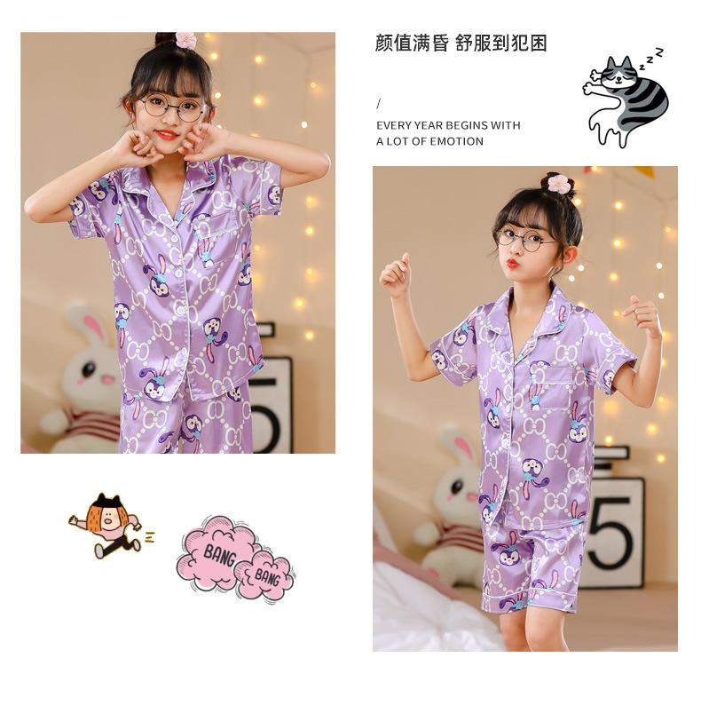Pijamas para niños Cárdigan de seda de hielo para mujer Solapa Cárdigan de manga corta Dulce Lindo Dibujos animados Ropa para el hogar para niños y niñas pequeños y medianos