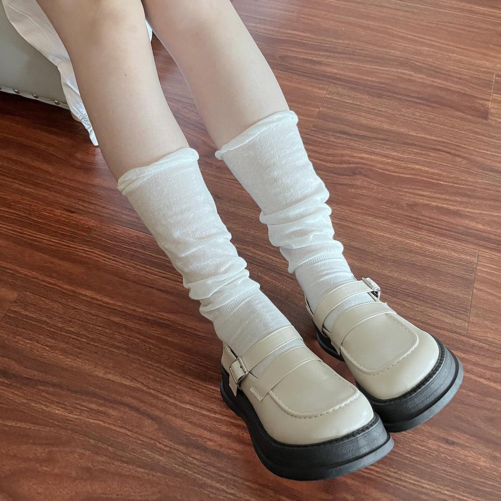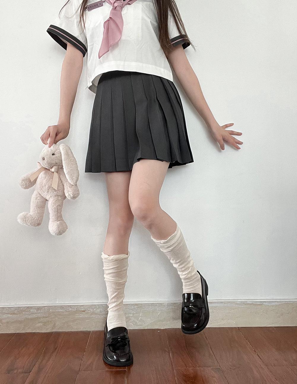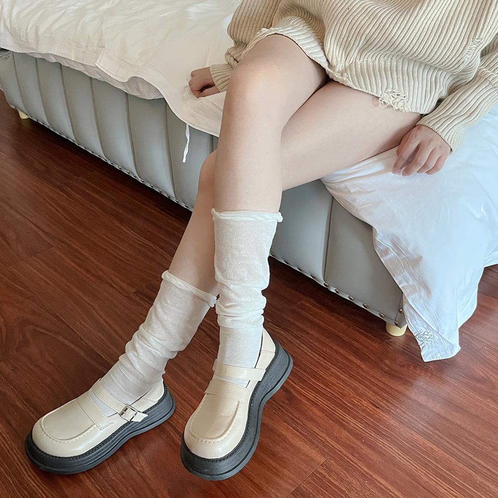 Calcetines de media pantorrilla de felpa con costuras de color sólido estilo japonés boca de burbuja Calcetines de felpa blancos calcetines de algodón blanco lechoso hasta la pantorrilla calcetines JK grises