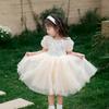 Vestido Nuevo para Niñas 2025 Vestido de Princesa con Flores para Niñas Verano Ropa Infantil de Moda Falda de Malla para Niña Pequeña