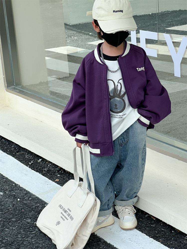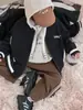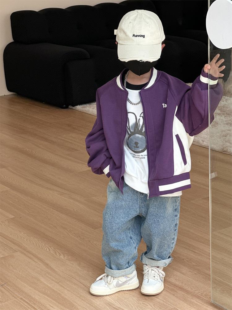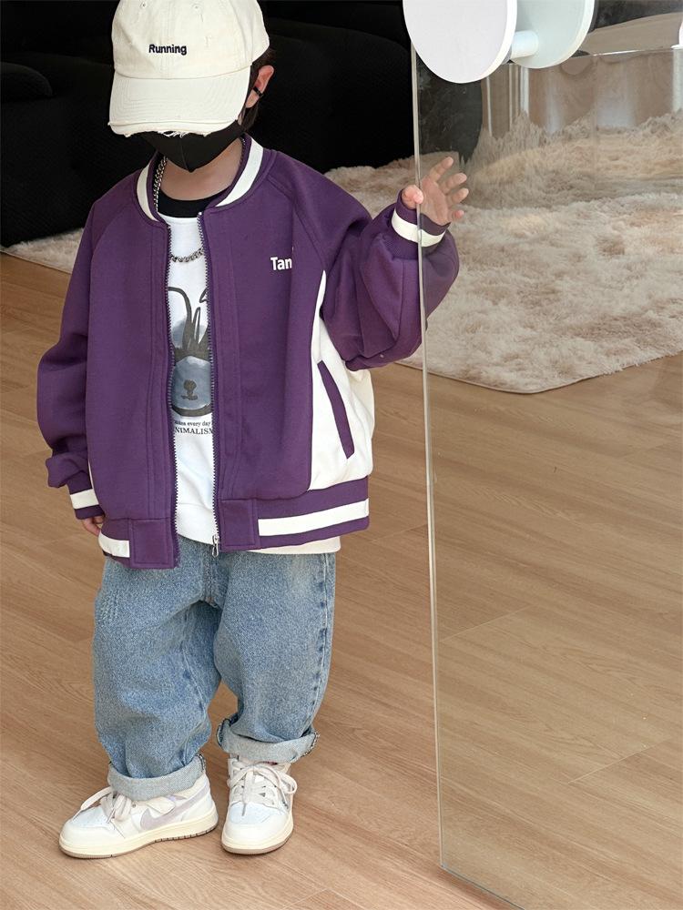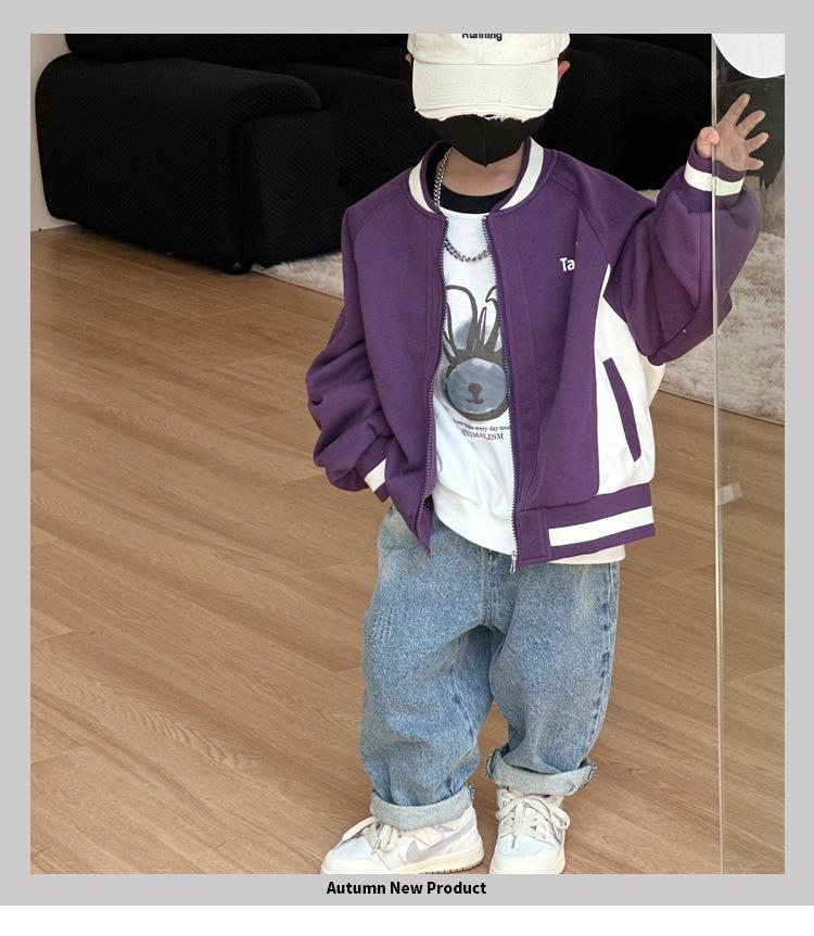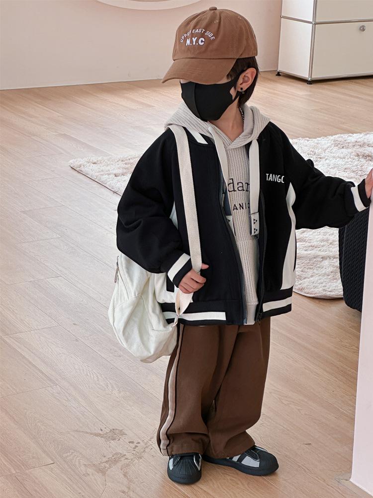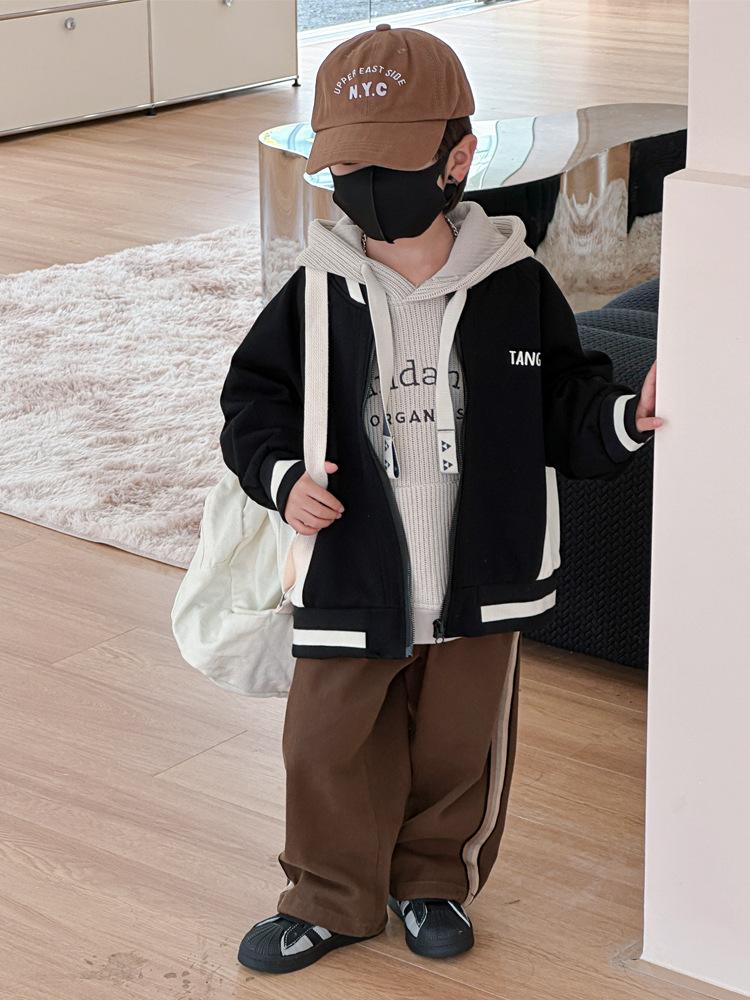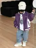Chaqueta de Béisbol para Niño Otoño Estilo Coreano Ropa para Niños 2025 Nuevo Otoño Abrigo para Niños Bebé Color Block Estampado Estilo Corto