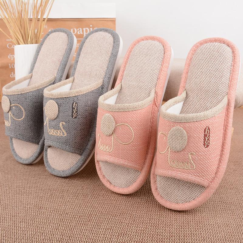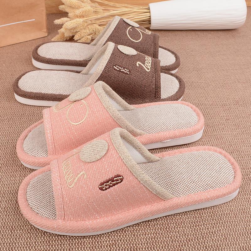 Pantuflas de lino para mujer para casa, interior, antideslizantes, para pareja, de tela de algodón y lino, para suelo de madera, para casa, de suela blanda, absorbentes del sudor, para hombre
