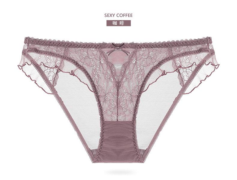 Encaje sexy francés transparente seductor malla ropa interior de mujer transpirable cómoda calzoncillos de cintura baja talla grande calzones