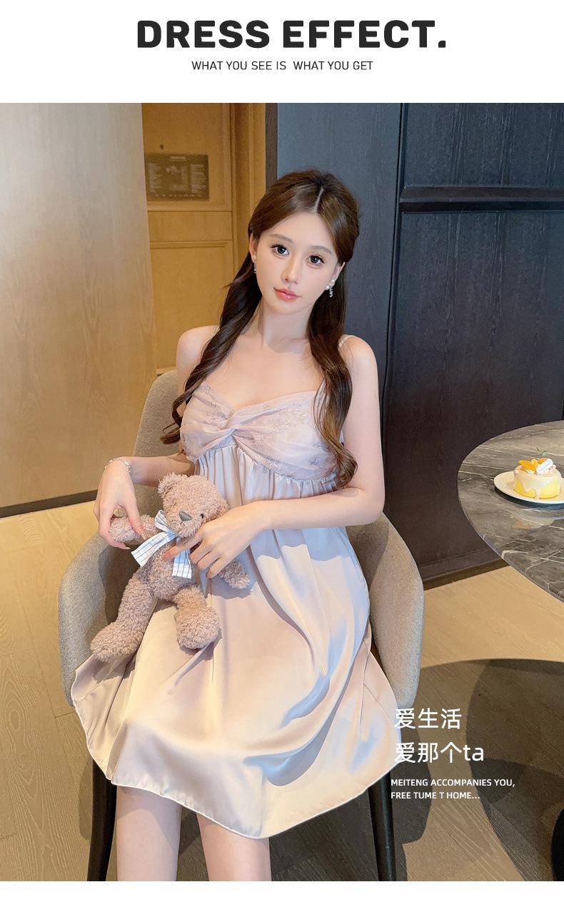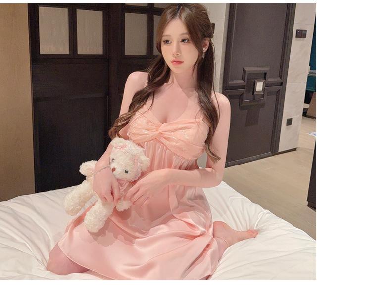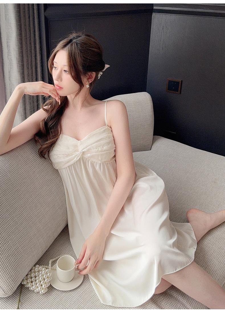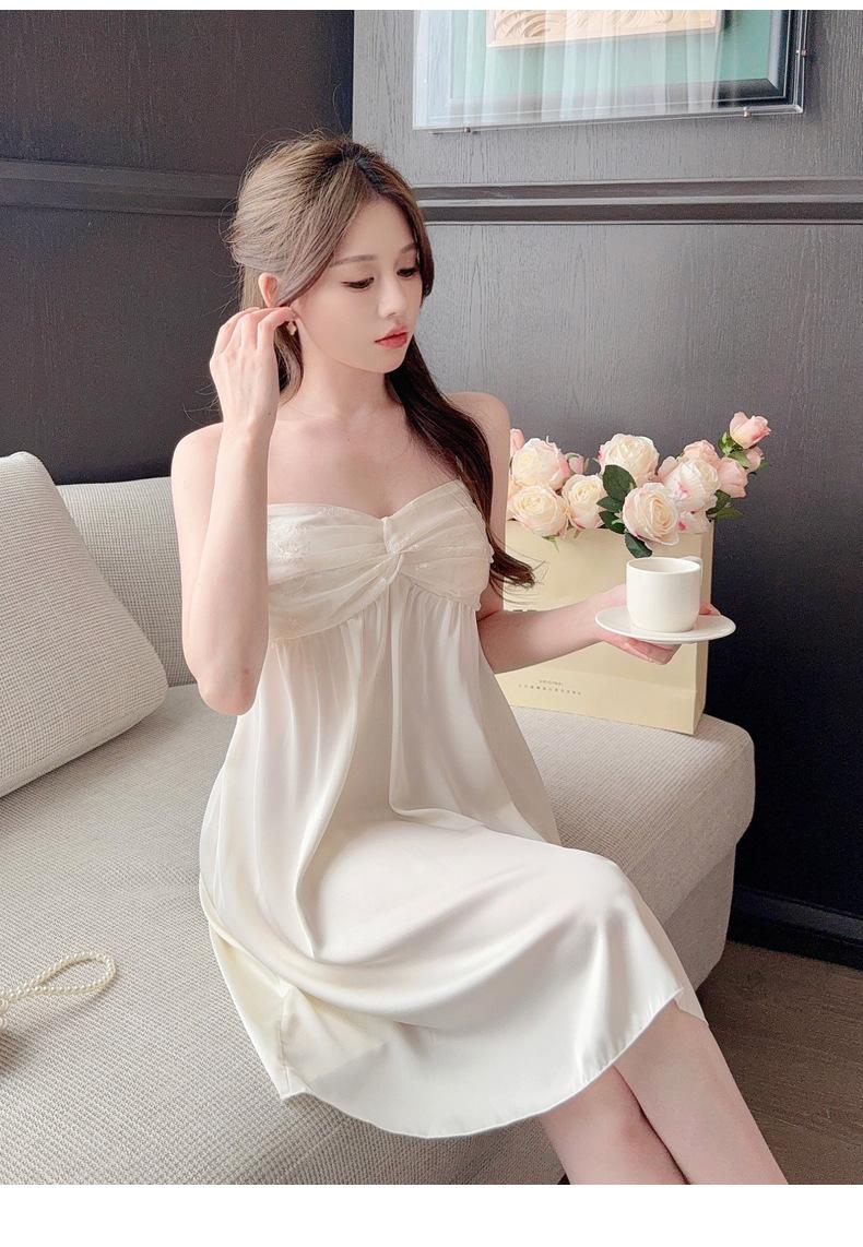 Camisón de seda de hielo para mujer, falda de verano con almohadilla para el pecho, de malla, sexy, estilo puro, pijama fino para mujer, ropa para el hogar