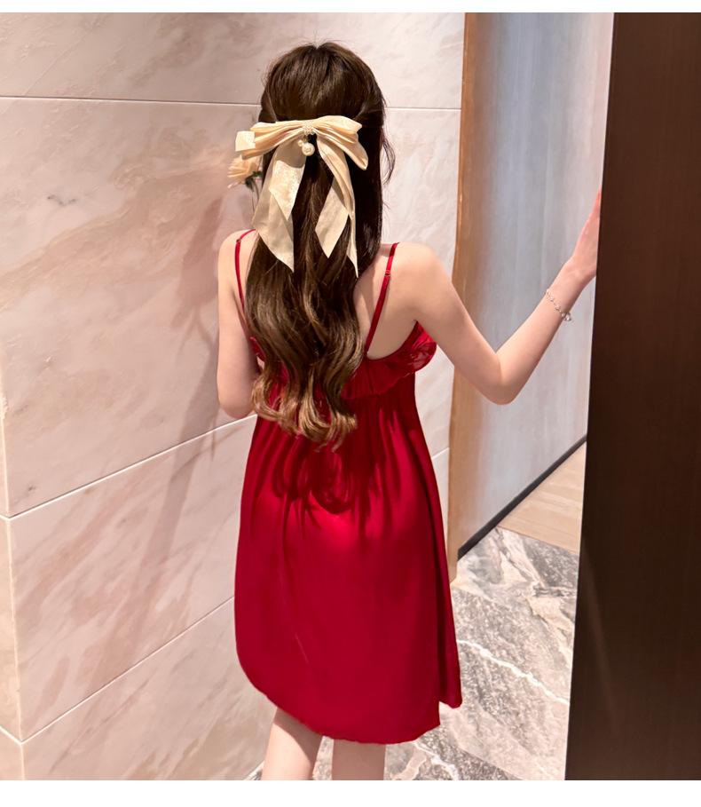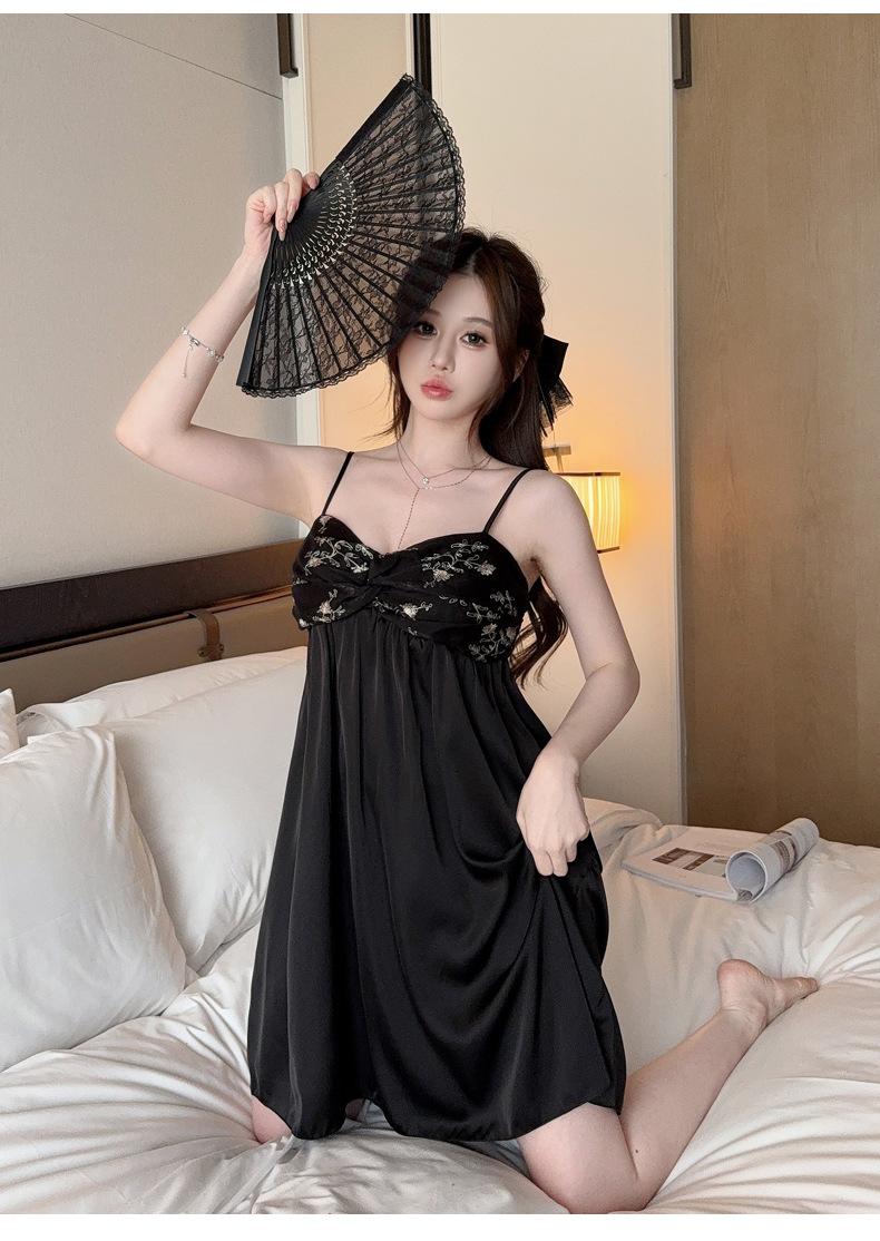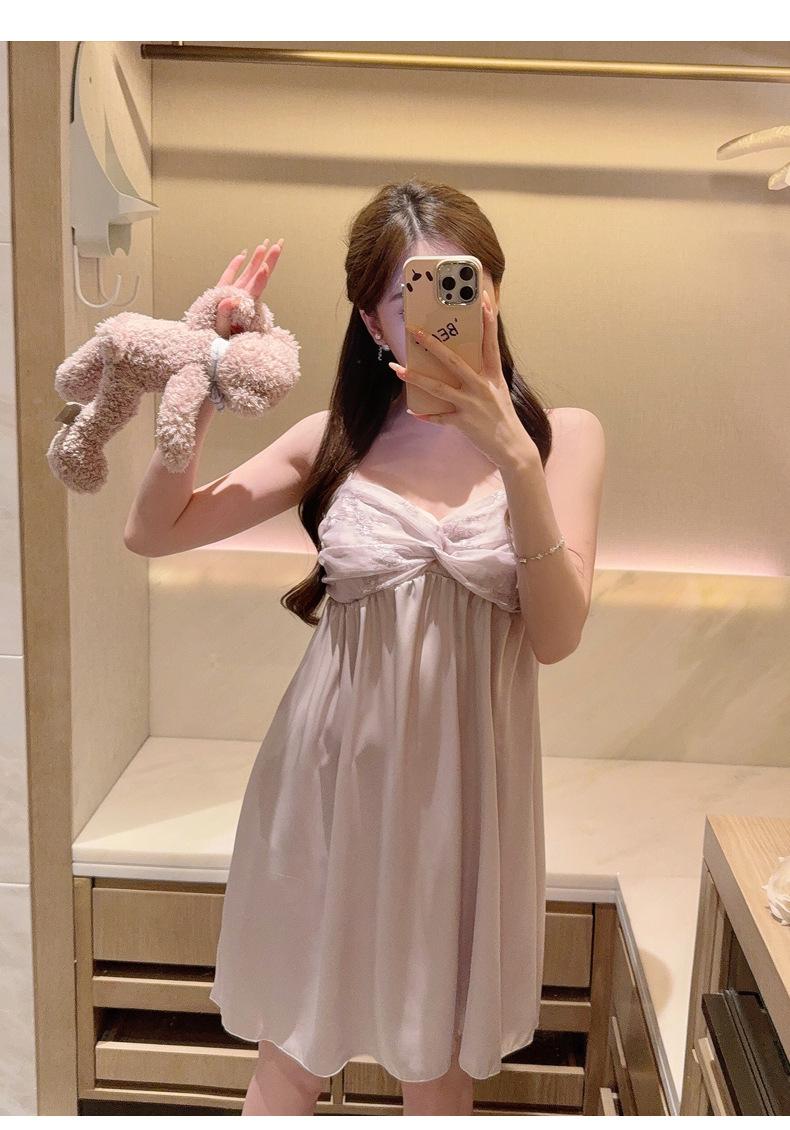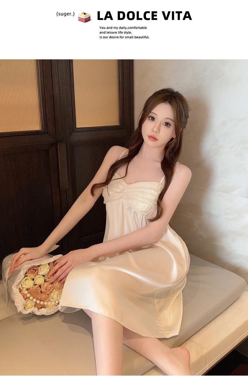 Camisón de seda de hielo para mujer, falda de verano con almohadilla para el pecho, de malla, sexy, estilo puro, pijama fino para mujer, ropa para el hogar