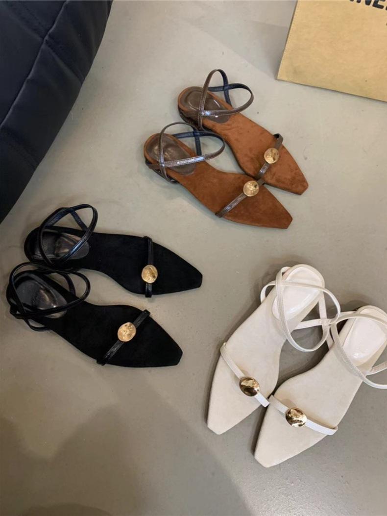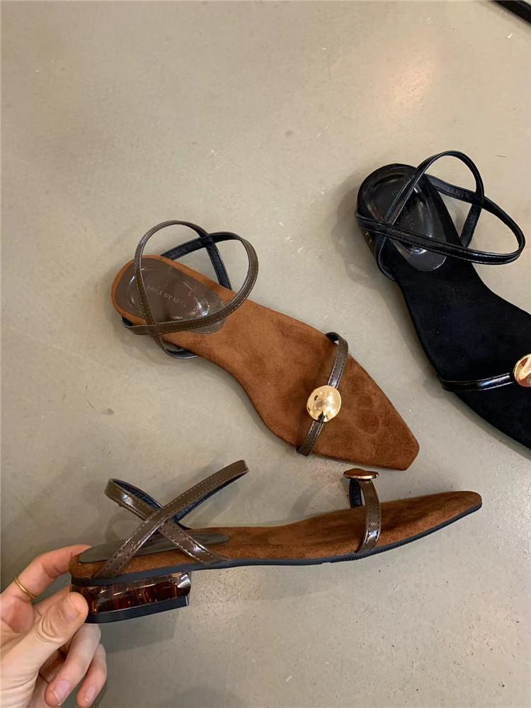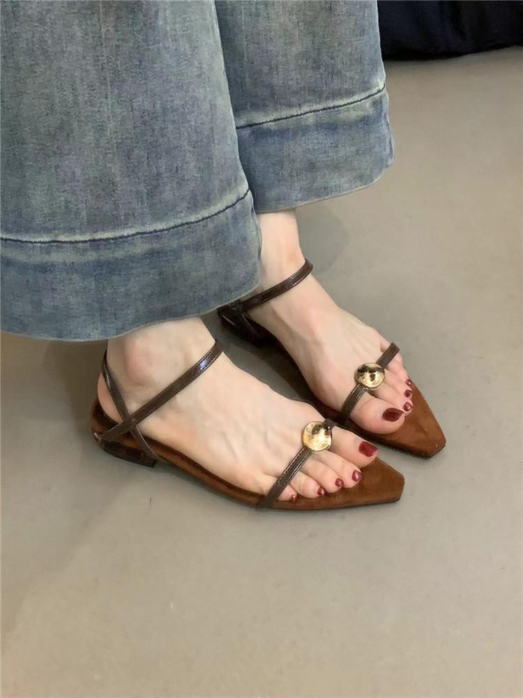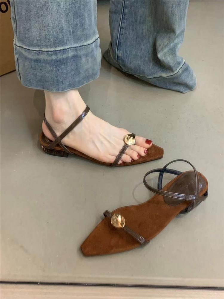 Compra Sandalias de Diseño Nicho de Punta para Mujer Verano 2024 Elegantes Francesas Retro Marrón Zapatos de Punta Abierta al por mayor en Joom.pro