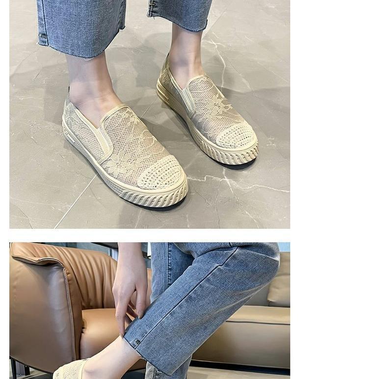 Zapatos de Pescador Zapatos de Malla Transpirable de Verano para Mujer 2025 Nuevos Zapatos de Tela Casual Versátiles Mocasines de Una Pieza Zapatos Planos