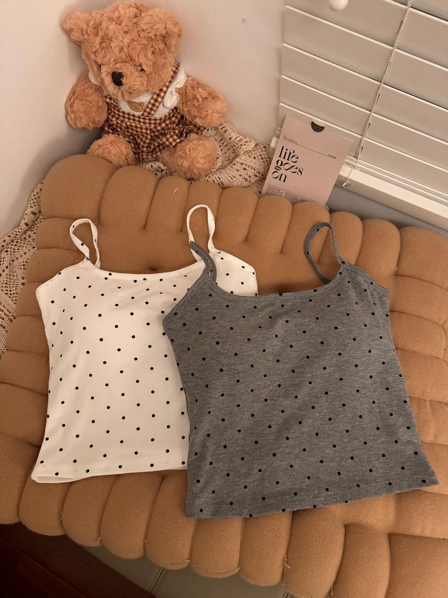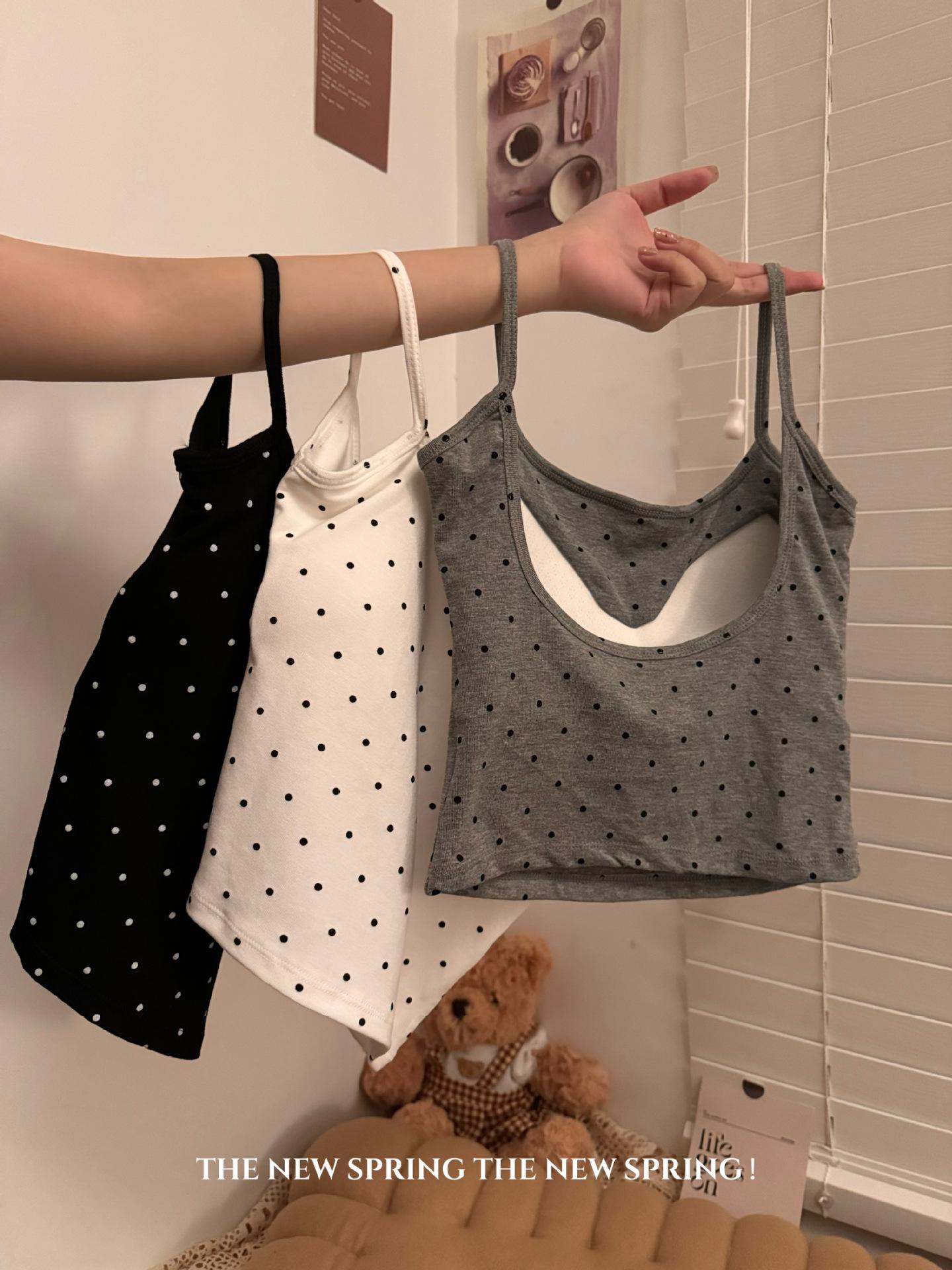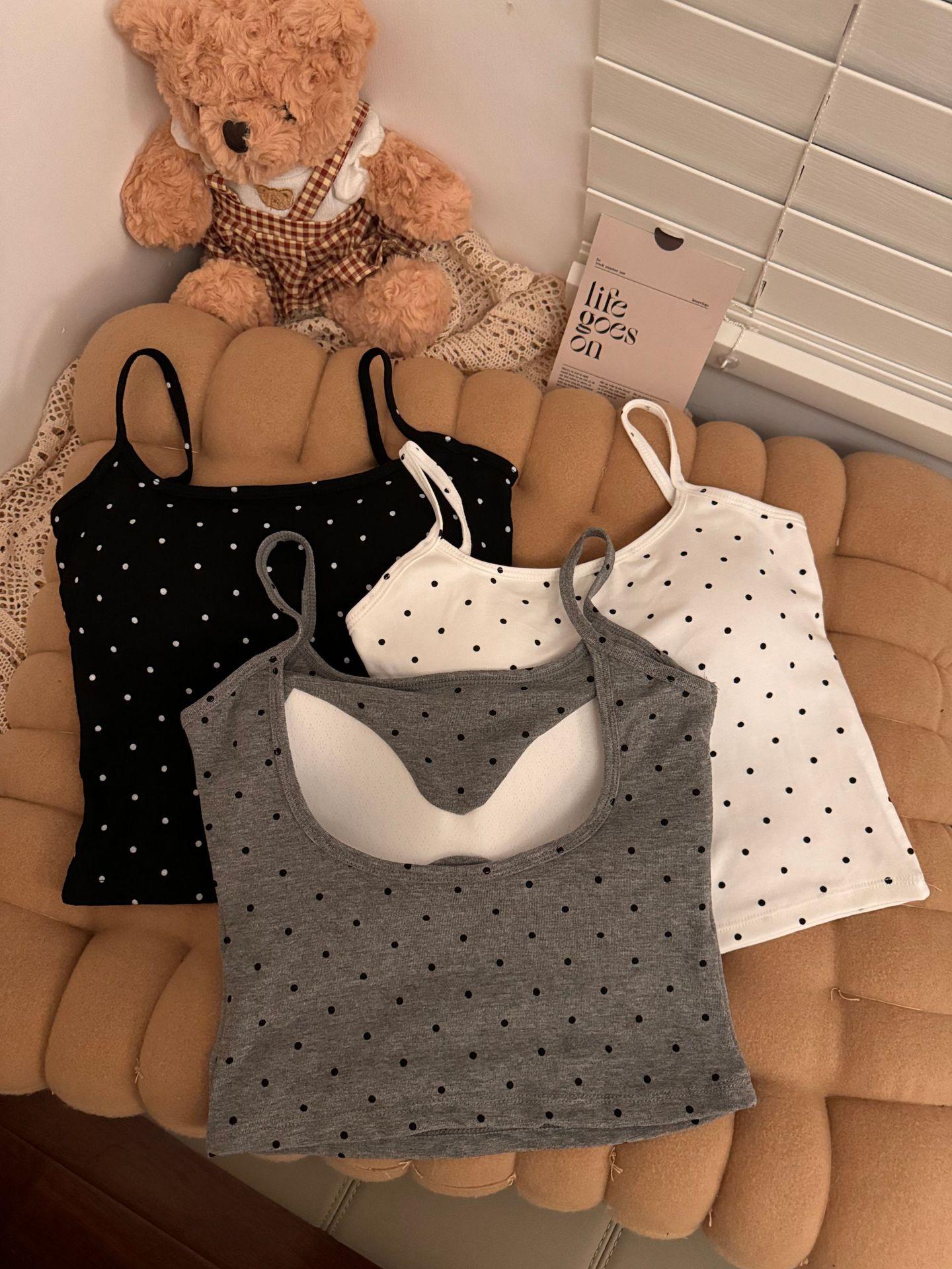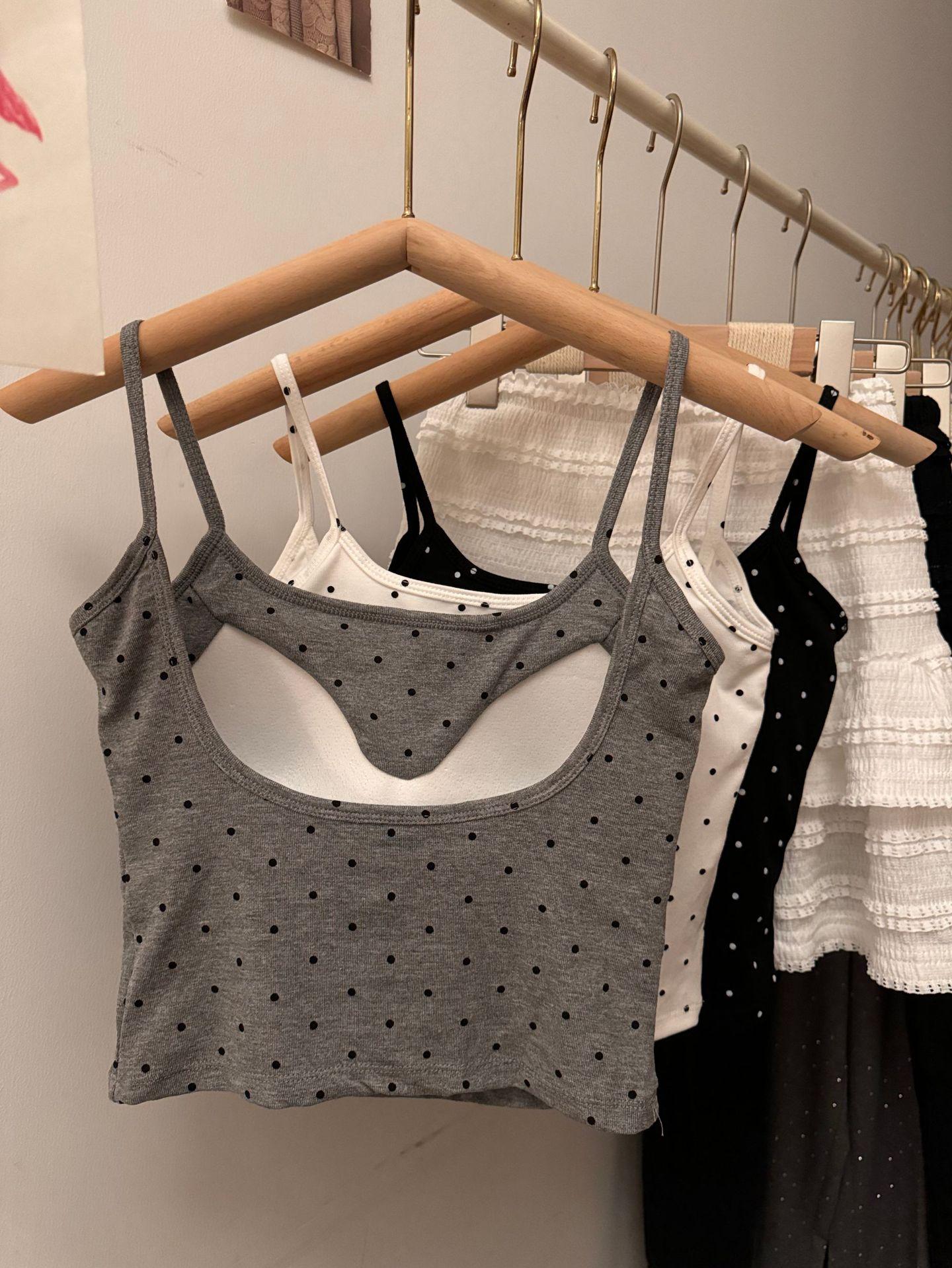 Camisola Deportiva Interior de Lunares Ondulados Estilo Francés para Mujer con Tirantes Descubiertos, Almohadilla en el Pecho, Corte Slim, Corta, sin Tirantes para Usar como Exterior, Cómoda, Envoltura en el Pecho